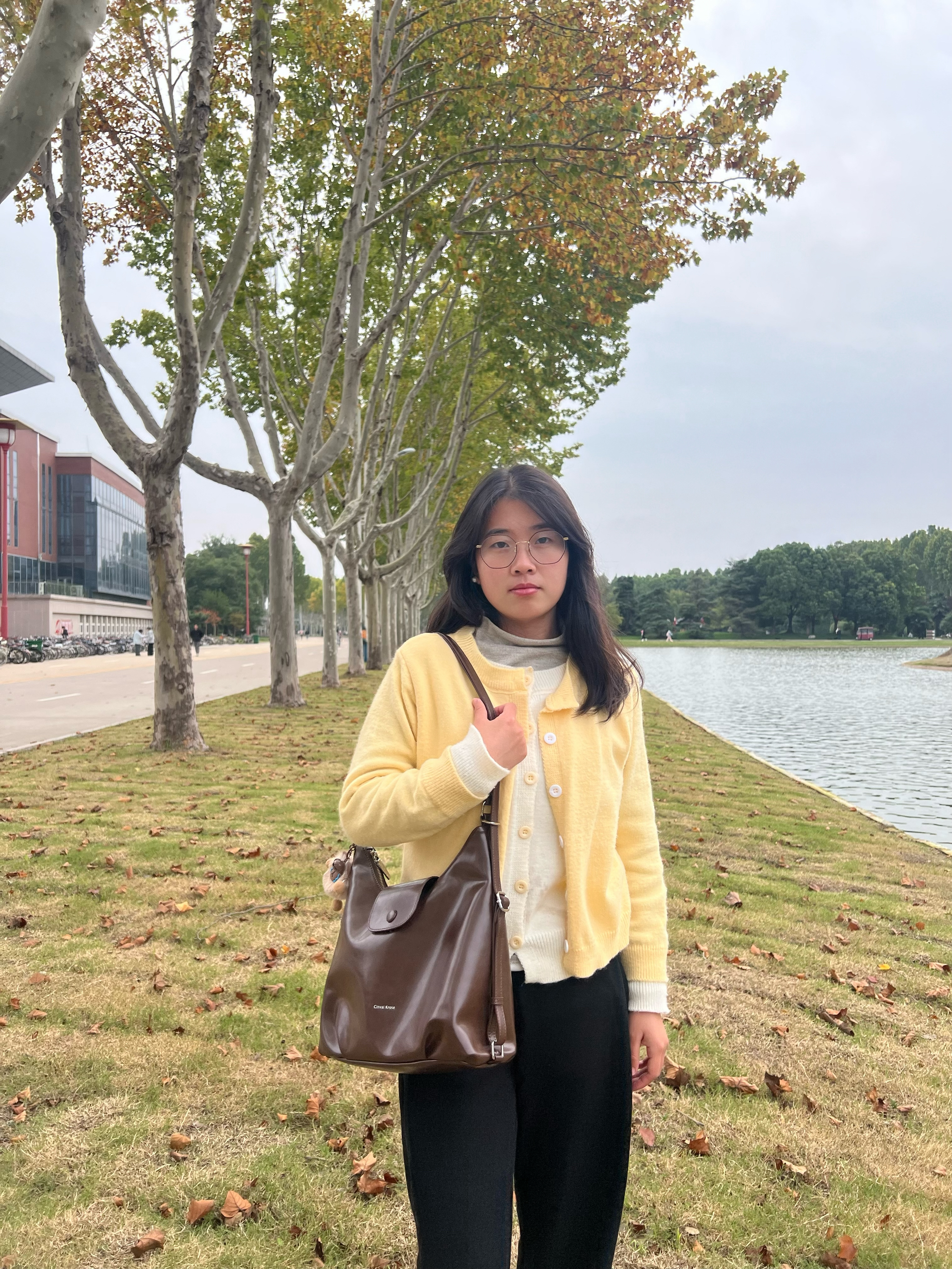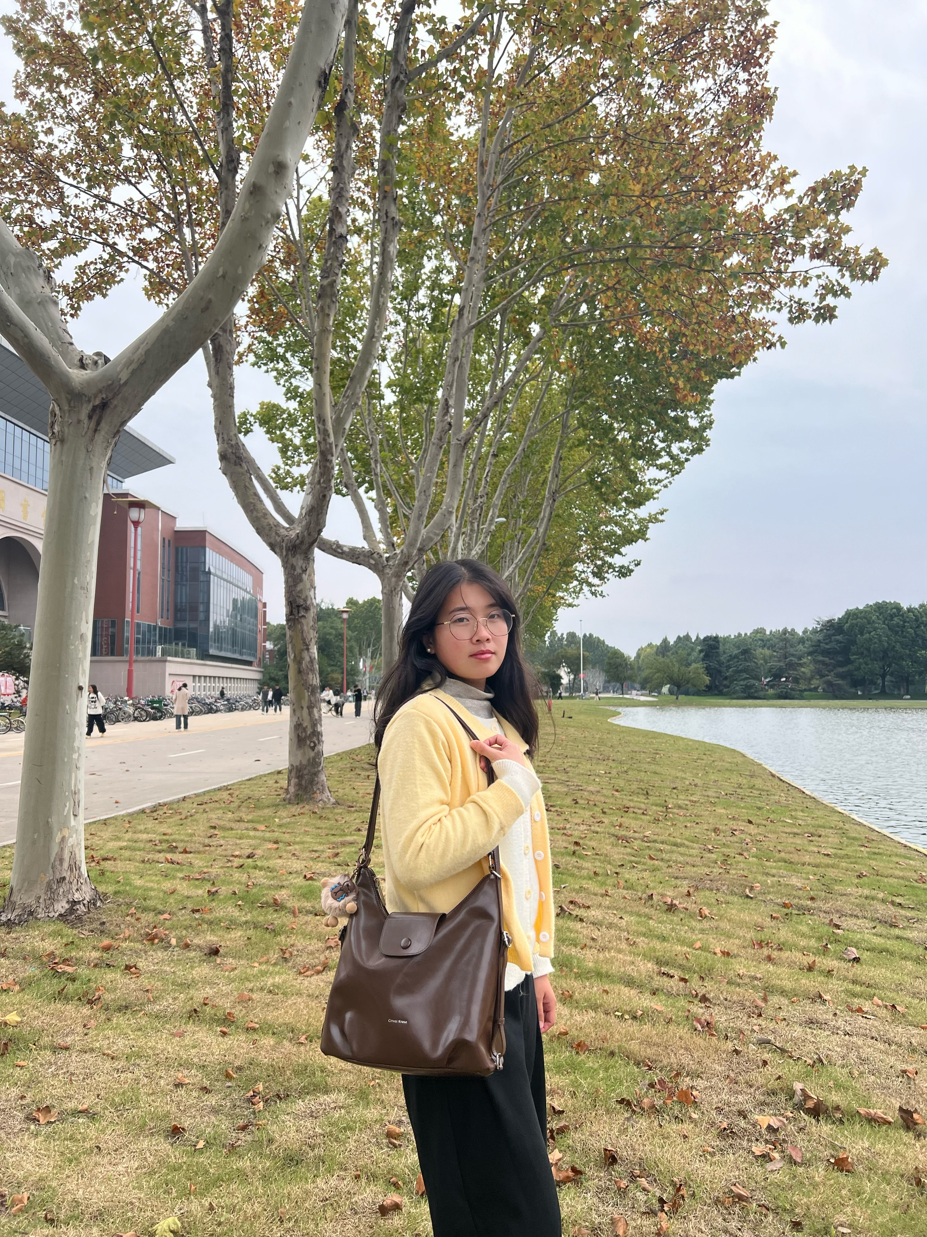 当梧桐叶开始染上浅棕,校园的秋就有了专属氛围感。 一件奶黄色针织开衫,软糯的质感像把秋日暖阳穿在身上,内搭米白高领针织,层次感瞬间拉满;搭配黑色阔腿裤,慵懒又随性。 棕色托特包是点睛之笔,皮质的细腻纹理透着质感,挂上可爱挂饰又多了几分俏皮,装下书本、耳机,陪你穿梭于课堂与林荫道之间。 在湖边,在树下,这样的穿搭适配每一处校园风景,把秋的温柔与青春的活力,都藏进这一身搭配里~