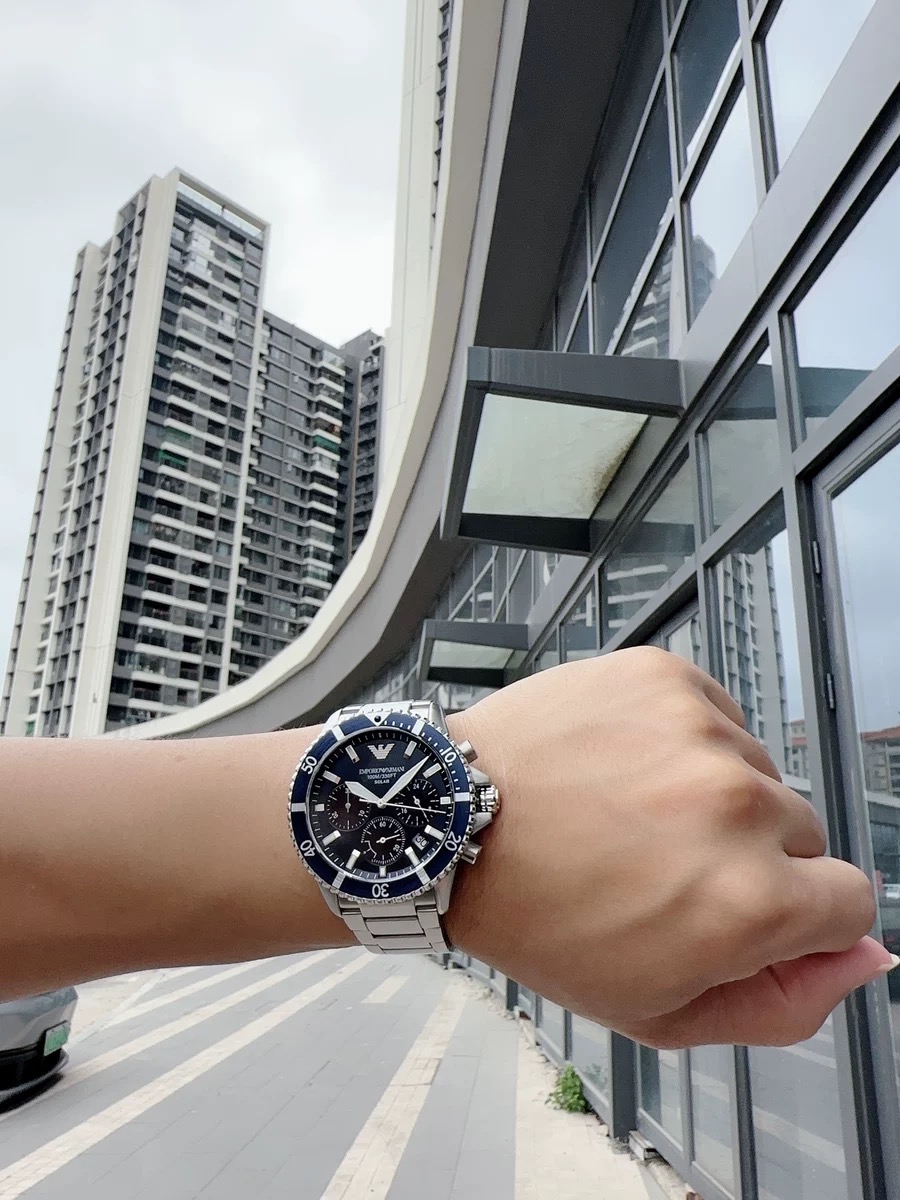 戴这块表有段时间啦~银表带很有质感,戴着手腕稳稳的,也不会刮手👍 深蓝色表盘特显高级,刻度指针清晰,光线不好时看时间也清楚。 上班搭衬衫西装干练,周末休闲风也不违和,还挺好搭~ 走时误差小,防水也ok,洗手溅水擦完没影响,日常戴颜值和实用性都戳我~就是表径对细手腕男生可能大了点🤔