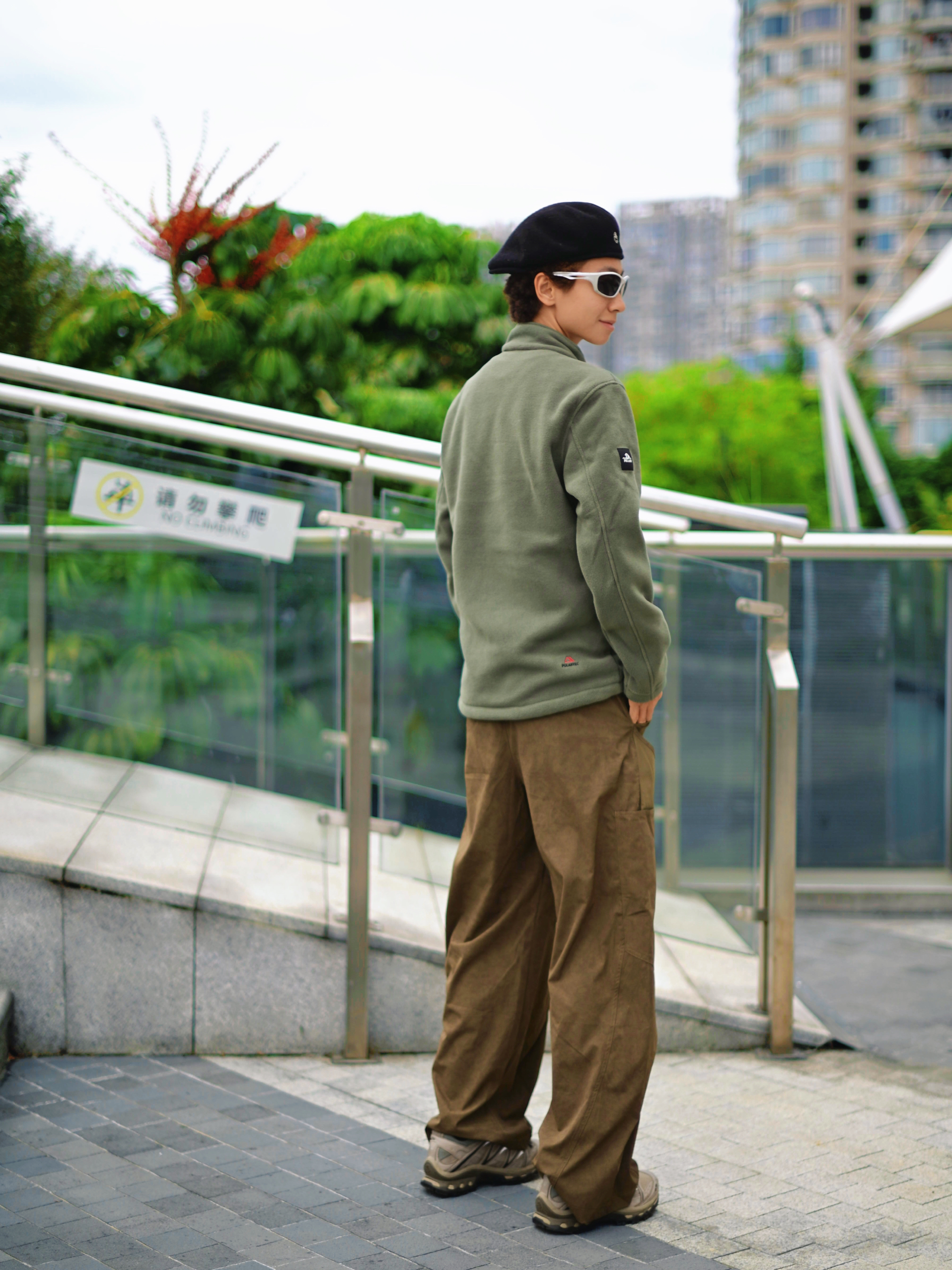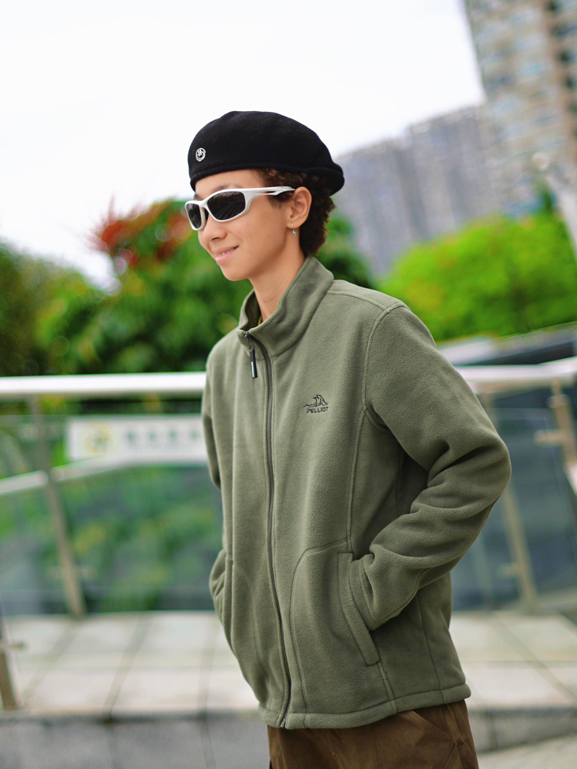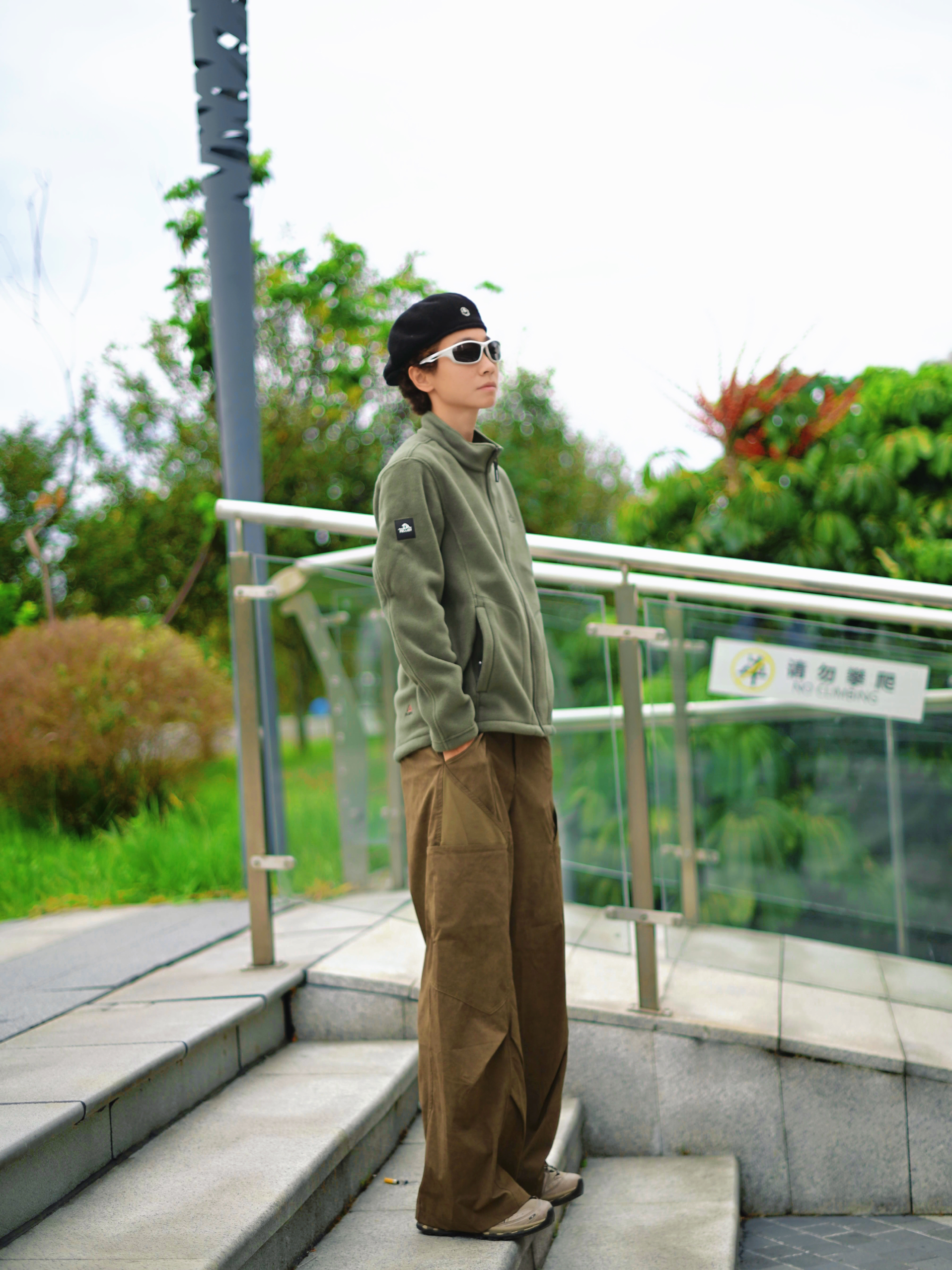 72CM|55KG 👔:m👖:m|👟:39 降温啦 别慌! 上身伯希和Polartec300摇粒绒开衫 军绿色在落叶场景里意外好拍~ 立领设计防风又利落 单穿不扎皮肤,下半身搭配咖色系冲锋裤! 贝雷帽和墨镜加持立刻变身街拍焦点🧤出门city walk啦!