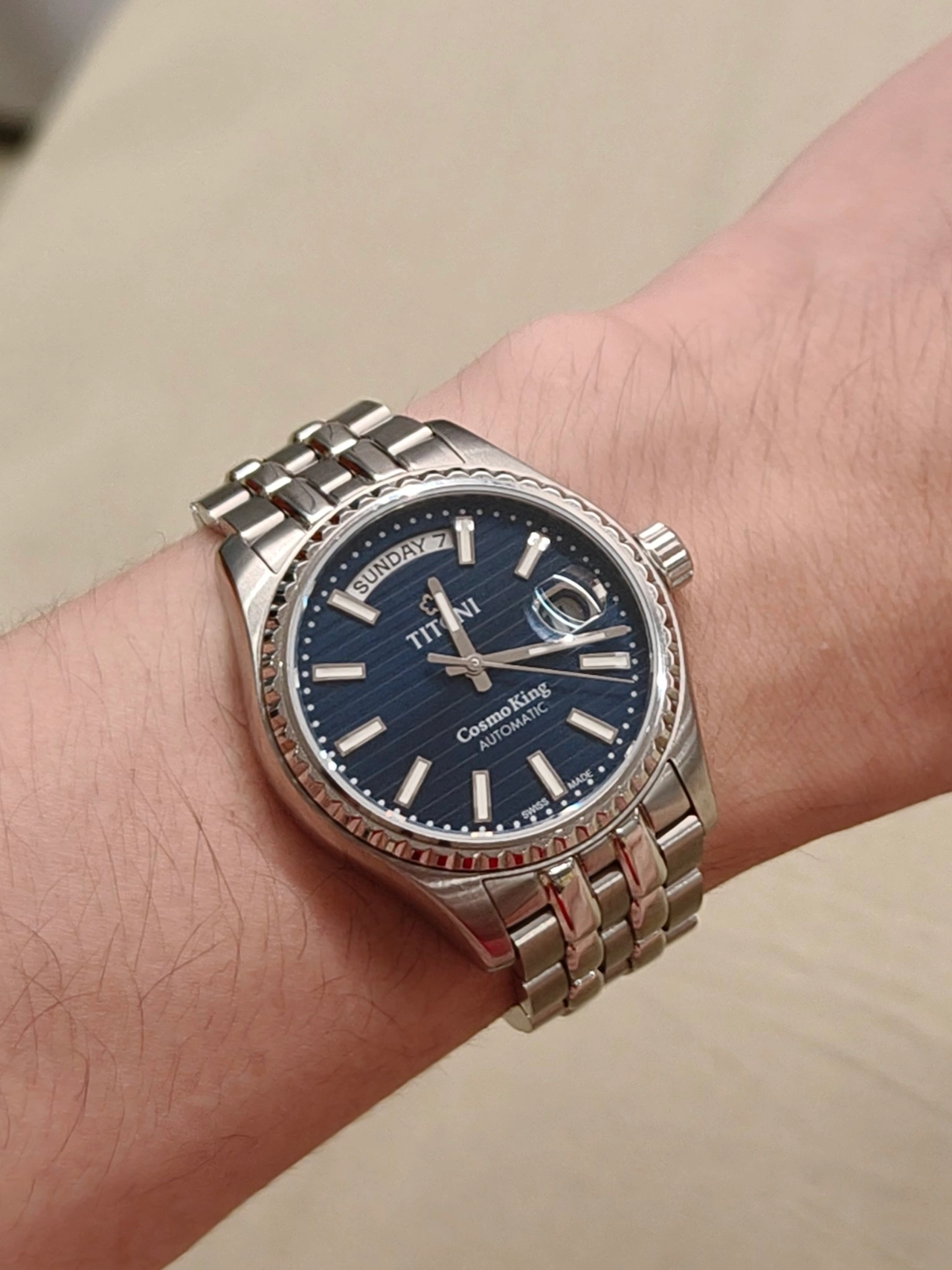 本篇笔记关联了Titoni/梅花 宇宙系列 40mm钢带日历自动机械男士手表 【礼盒装】蓝色 797-S-696等商品,为用户提供真实的使用体验和购买参考。