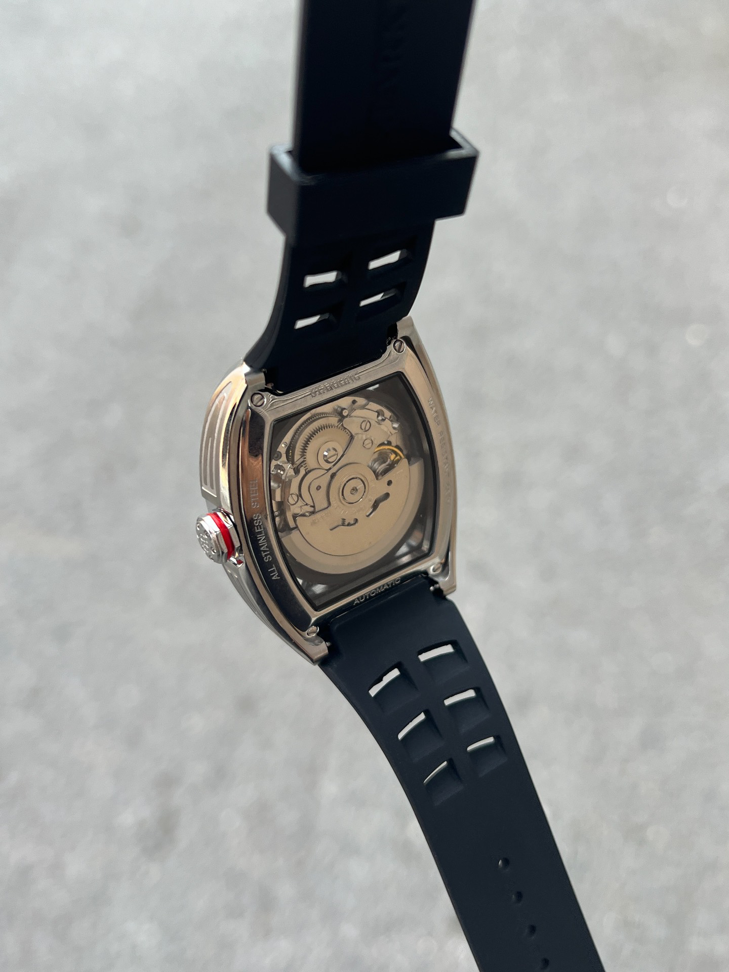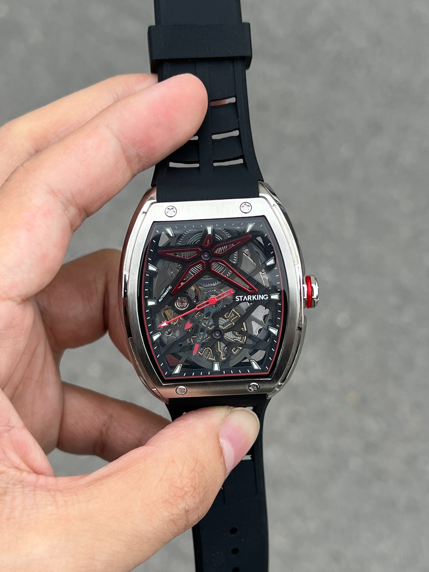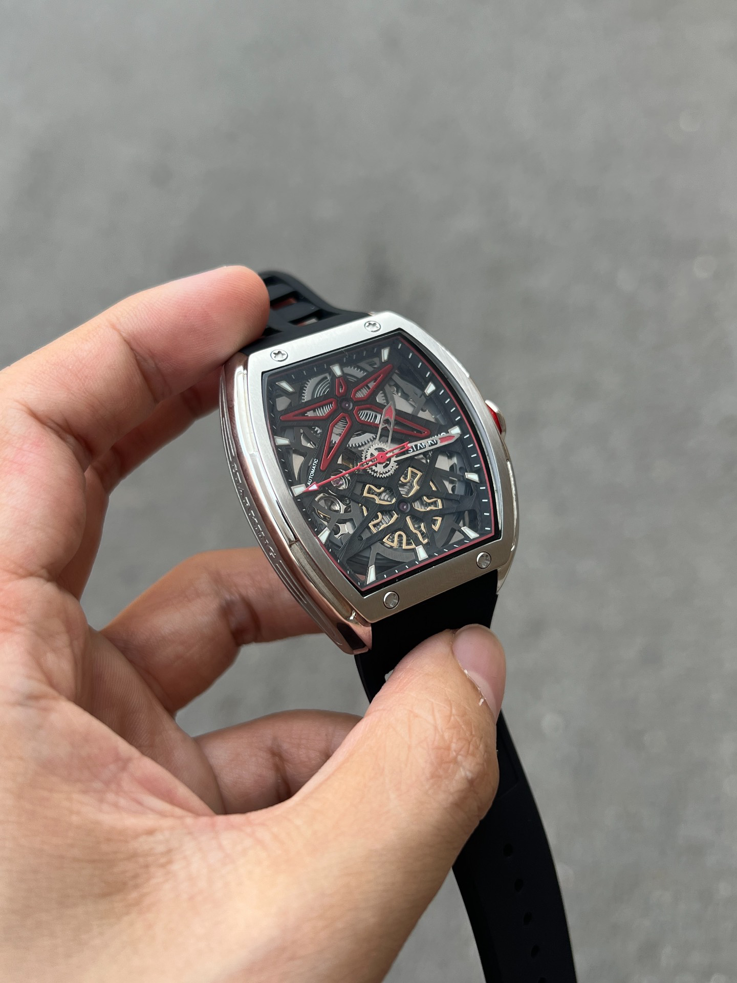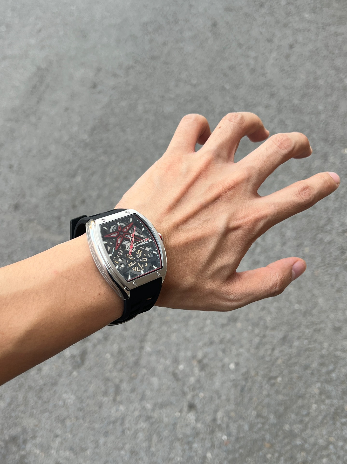 我最近挖到块超有设计感的手表!酒桶型表盘很特别,镂空设计让机械感拉满~硅胶表带戴起来软软乎乎,日常出汗也不闷,还耐磨耐脏,打理超省心👏 不管是休闲风还是商务风穿搭,它都能适配,瞬间给造型加分!不过表径比较大,手腕细的兄弟得考虑下~但我这种一般身材戴,气场直接upup,现在出门都想戴着它显摆显摆😎
