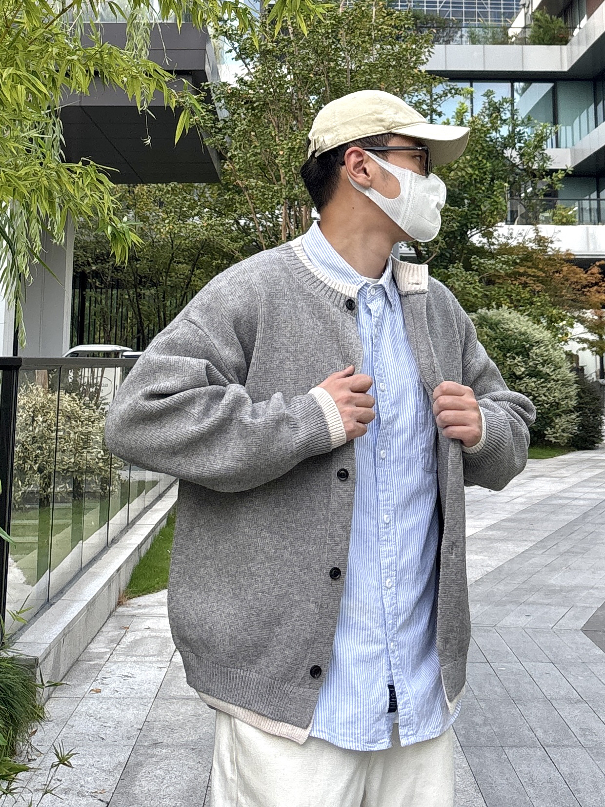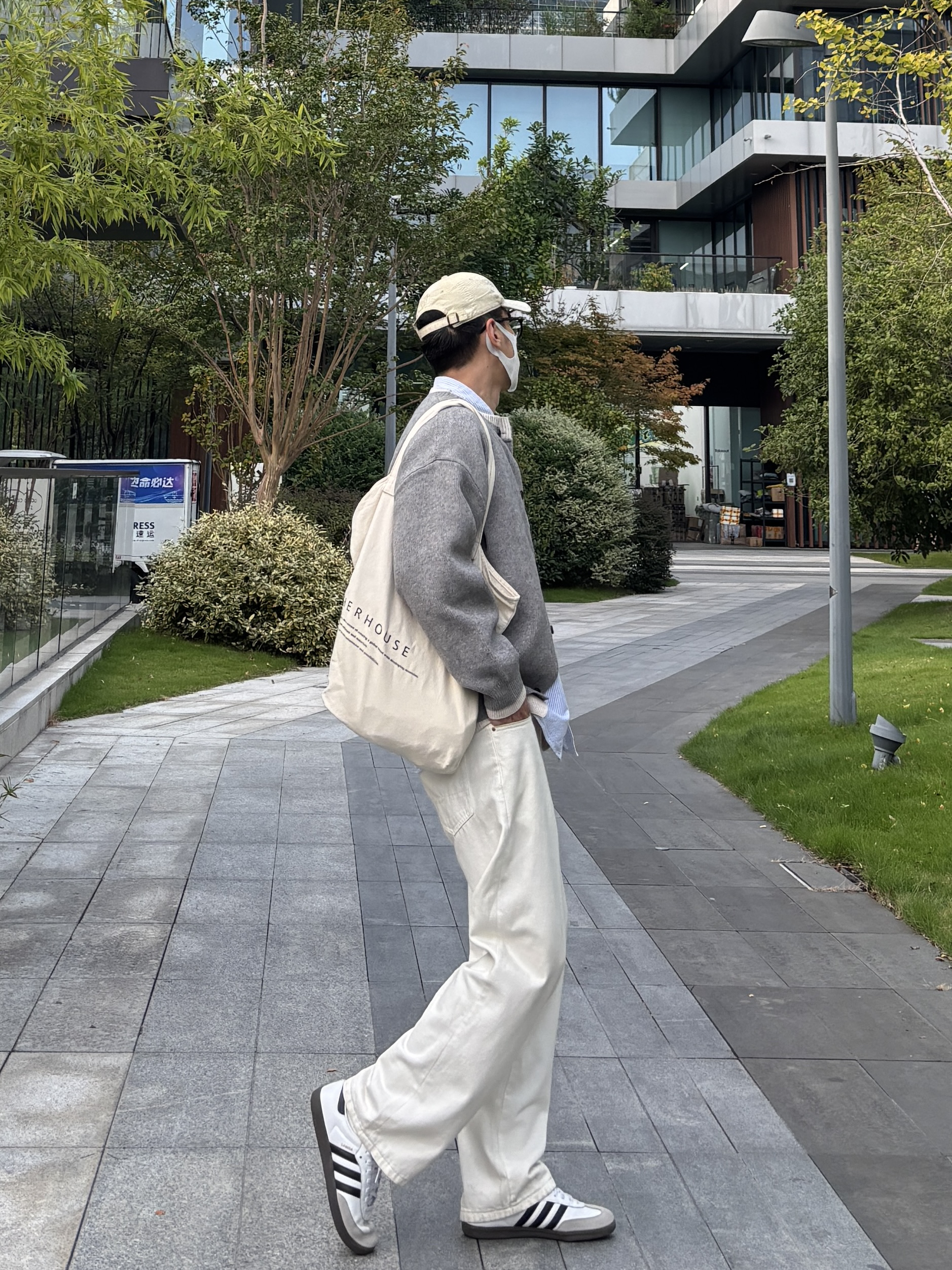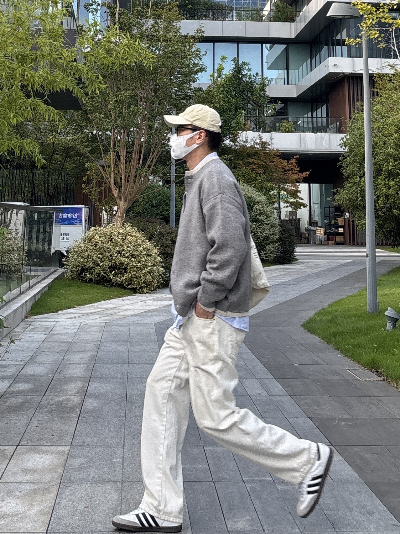 秋季怎么能逃开灰色系淡人穿搭。 上衣选择清爽的蓝色条纹衬衫搭配一件灰色针织开衫,再搭配一条白色直筒牛仔裤。 上身精致下身就松弛 温柔精致又显慵懒随性。 - 衣服裤子:NICE LILI 鞋子:adidas