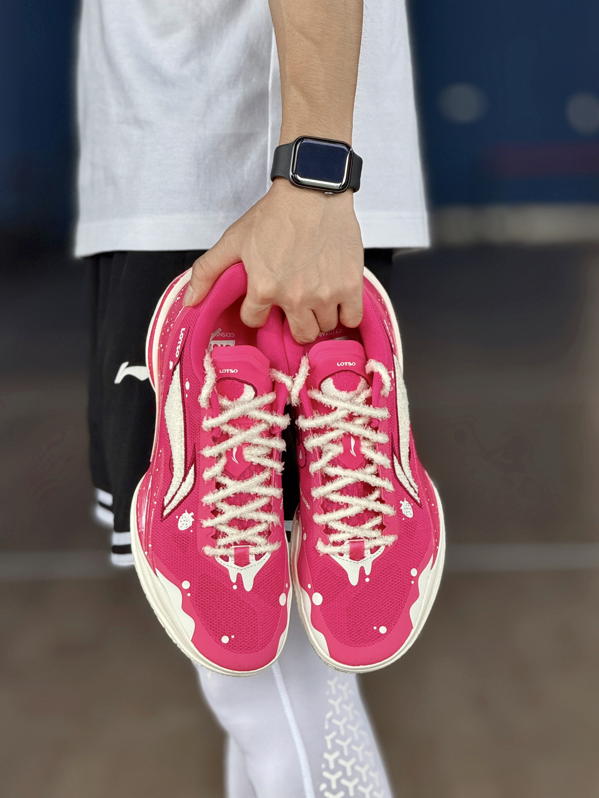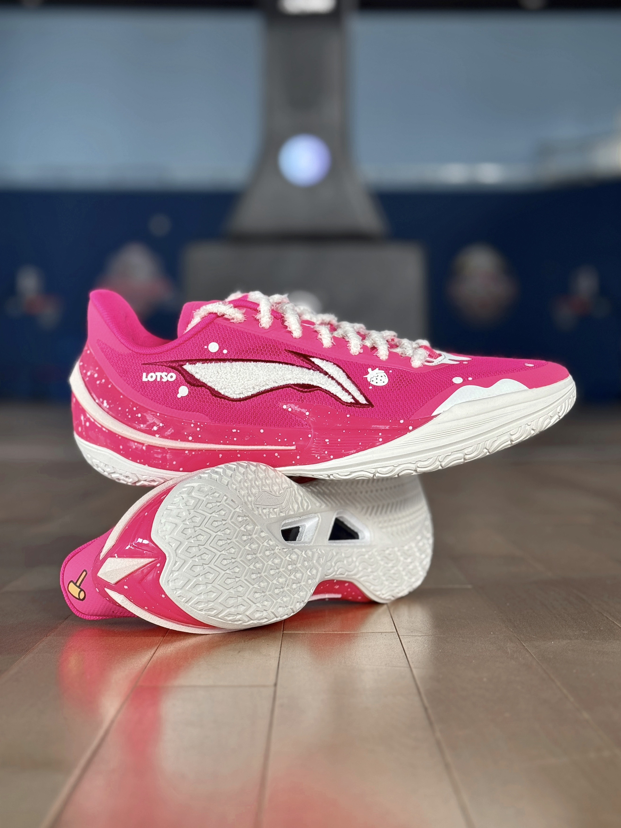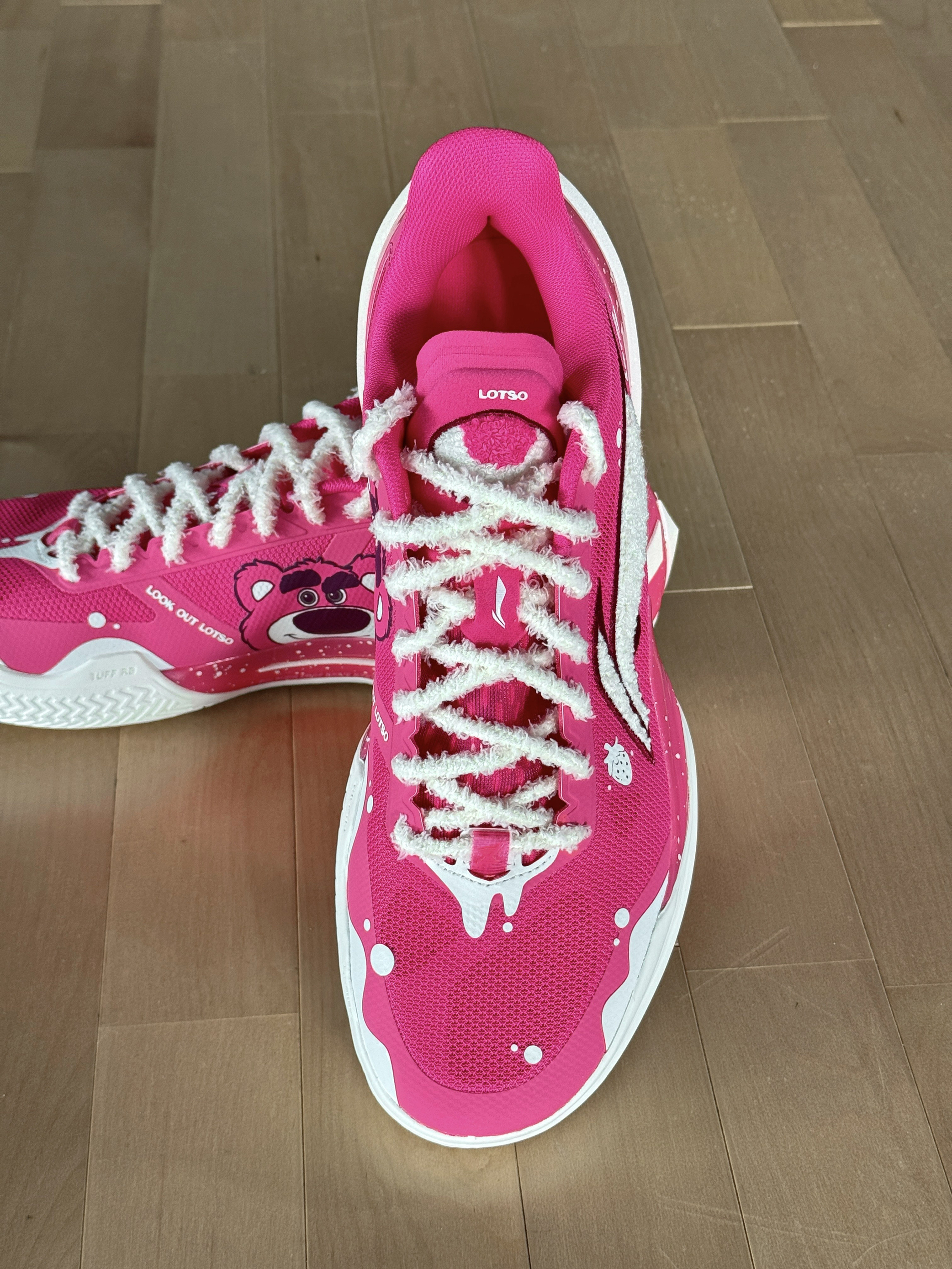 今天穿这双利刃5V2草莓熊篮球鞋,去球场打球! 这个配色颜值确实好看!粉色配色,鞋子上面,全是各种细节,白色毛绒绒的LOGO,旁边还有一个草莓的图案!鞋身内侧还有草莓熊头像点缀!细节满满! 配置上,编织鞋面支撑表现不错!外侧有TPU加固,稳定表现好!TUFF RB外底,抓地力稳,防滑效果不错!缓震方面,上脚反馈,脚感韧弹的! 是一双不错的实战好鞋,喜欢的朋友值得入手