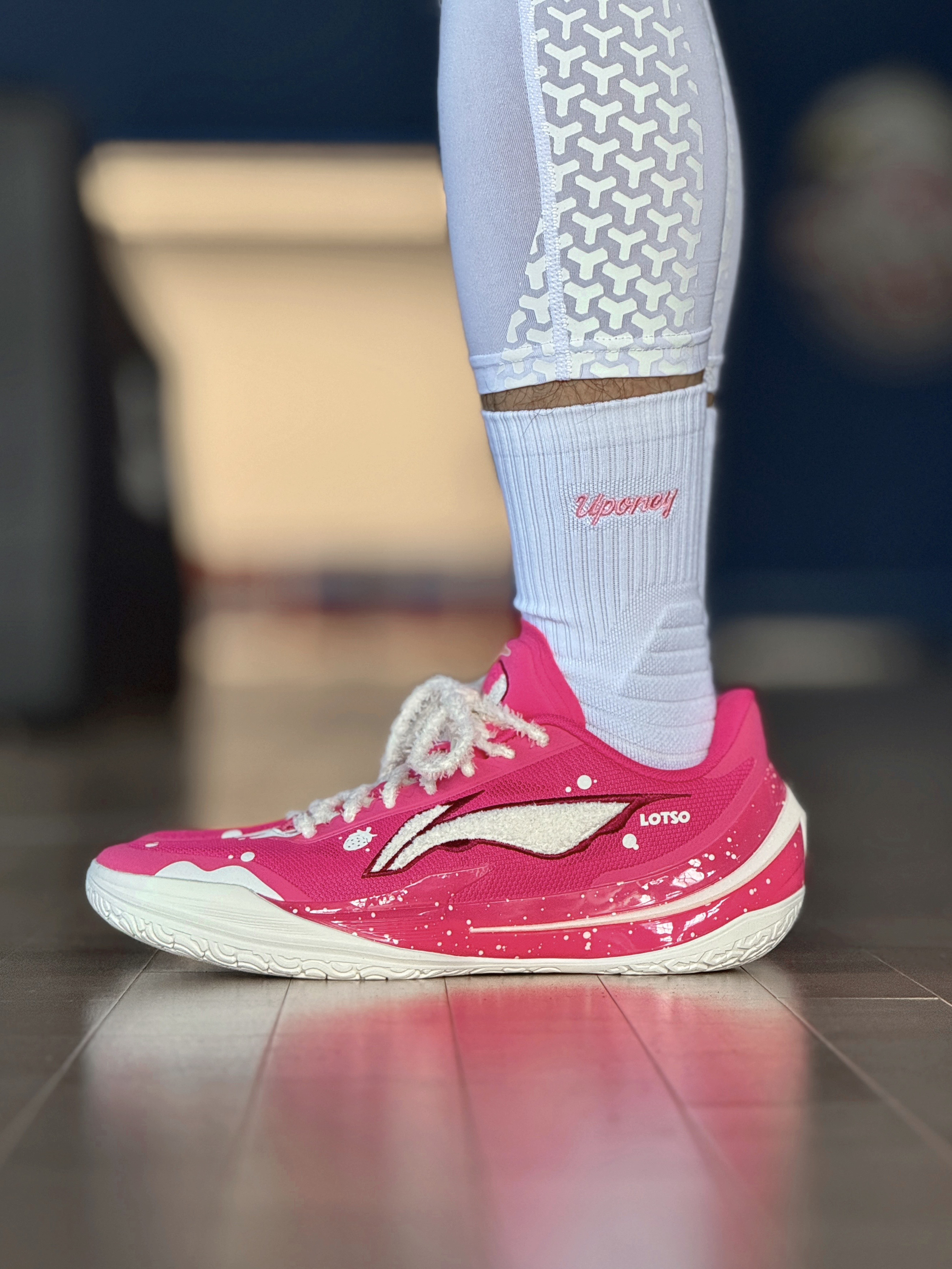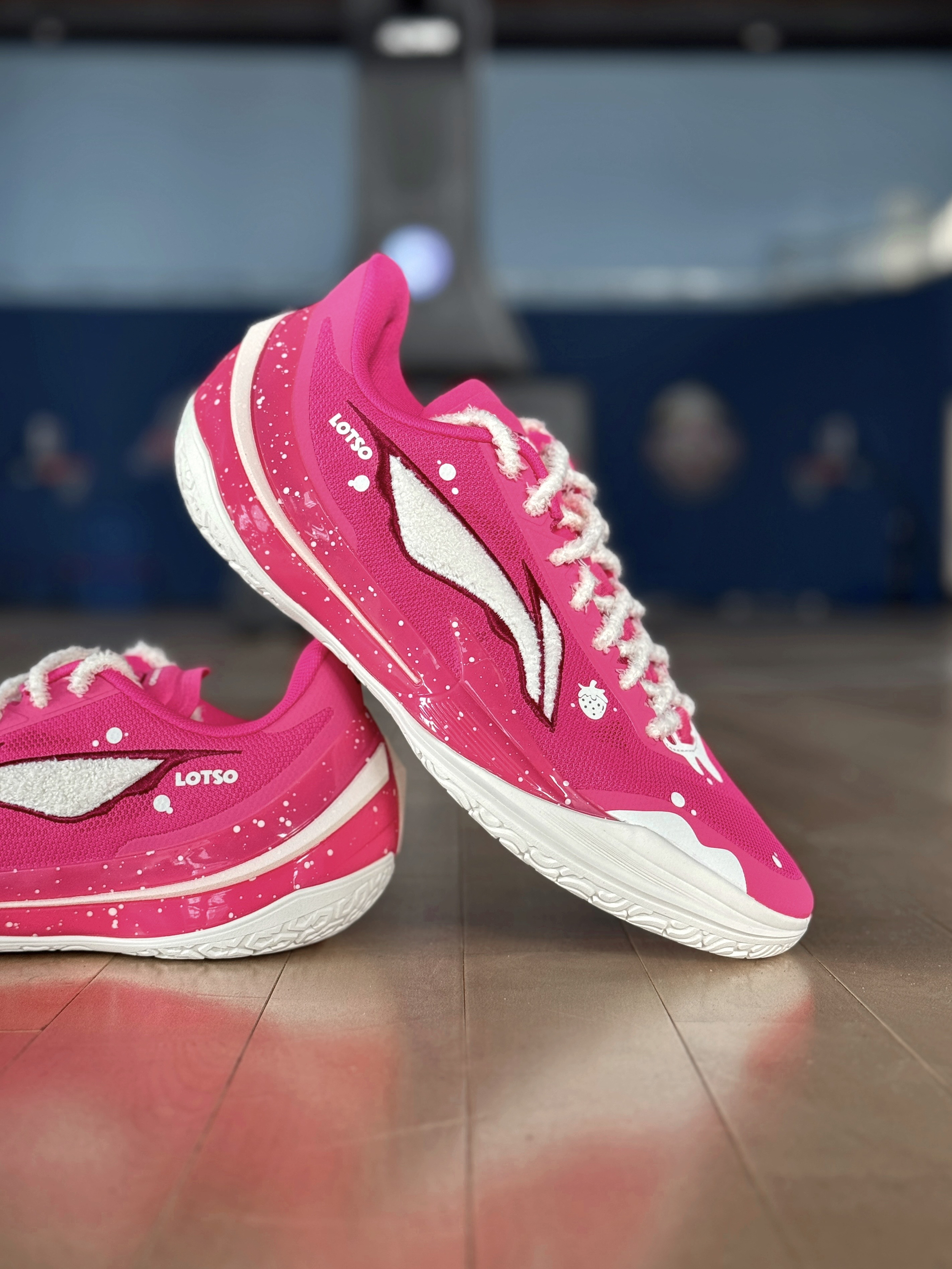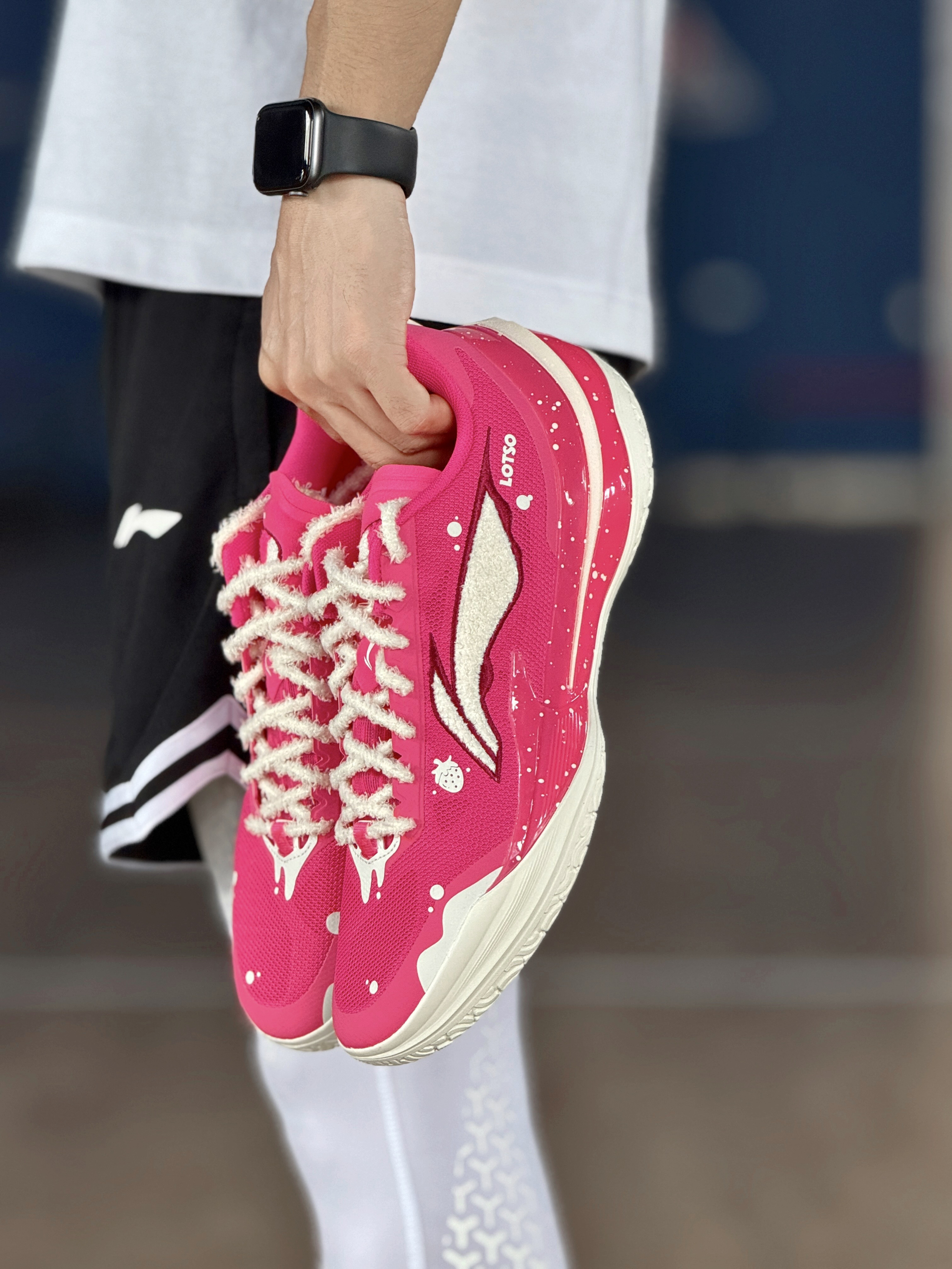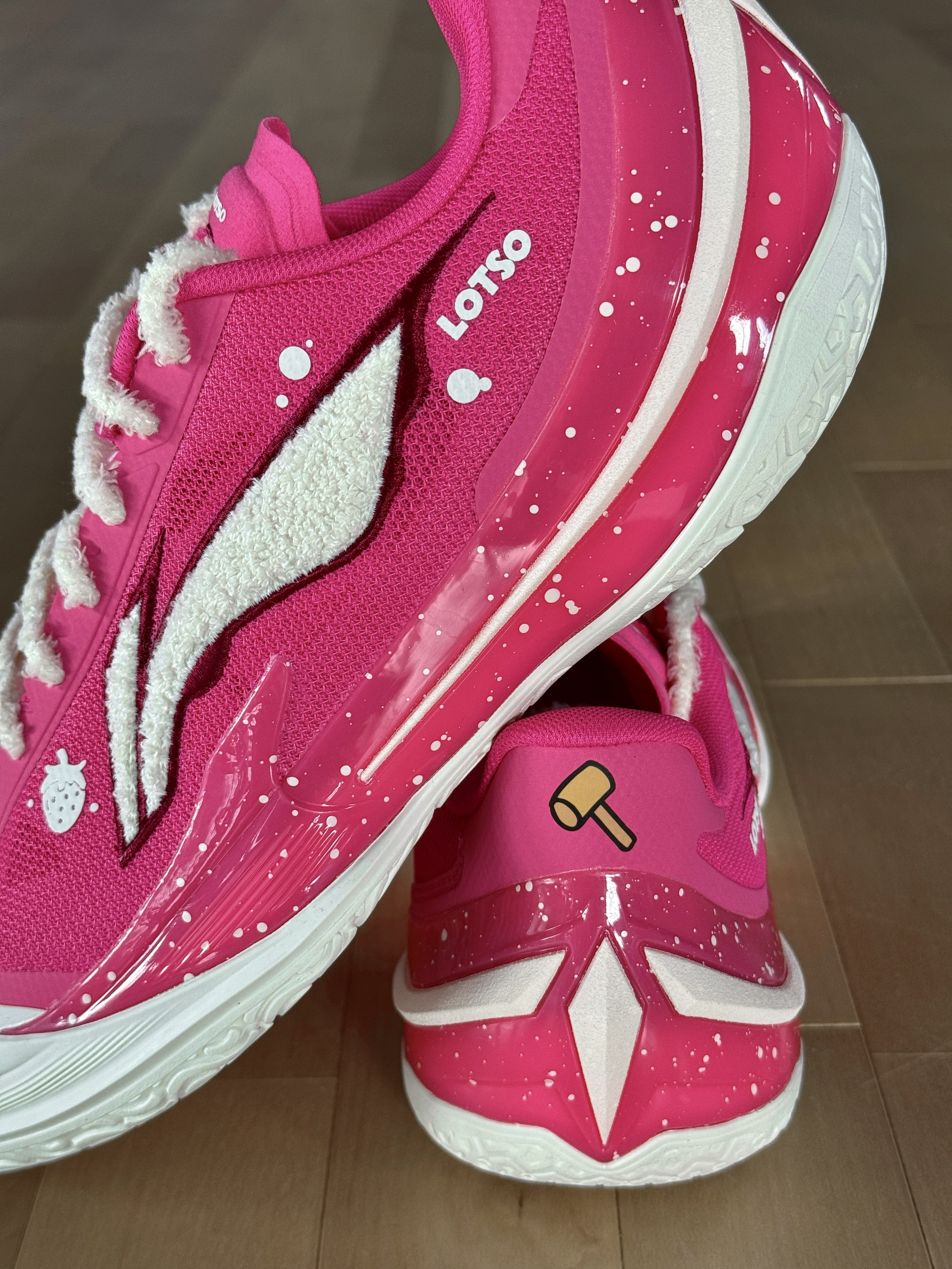 今天穿这双利刃5V2草莓熊篮球鞋,去球场打球! 这个配色颜值确实好看!粉色配色,鞋子上面,全是各种细节,白色毛绒绒的LOGO,旁边还有一个草莓的图案!鞋身内侧还有草莓熊头像点缀!细节满满! 配置上,编织鞋面支撑表现不错!外侧有TPU加固,稳定表现好!TUFF RB外底,抓地力稳,防滑效果不错!缓震方面,上脚反馈,脚感韧弹的! 是一双不错的实战好鞋,喜欢的朋友值得入手