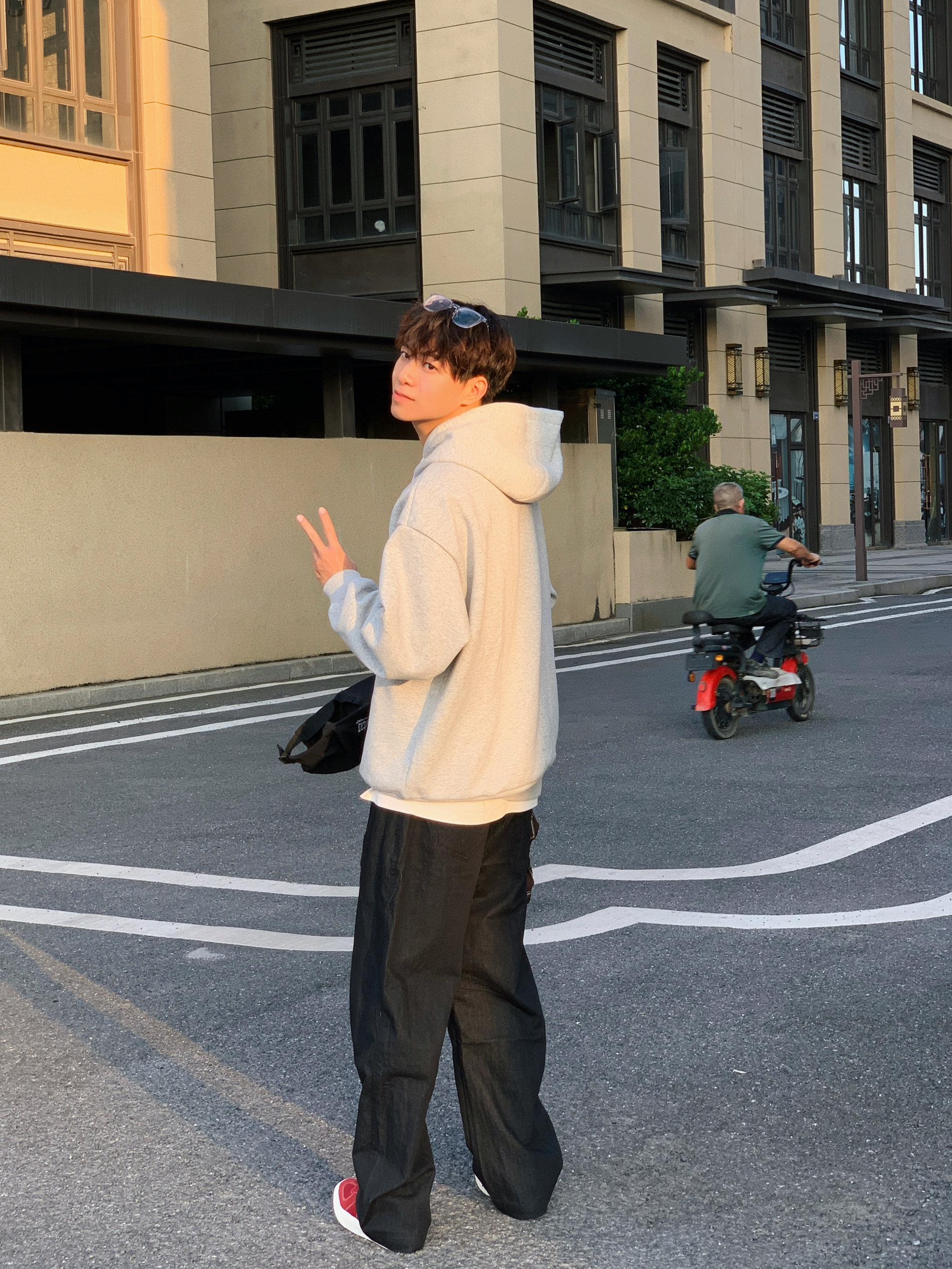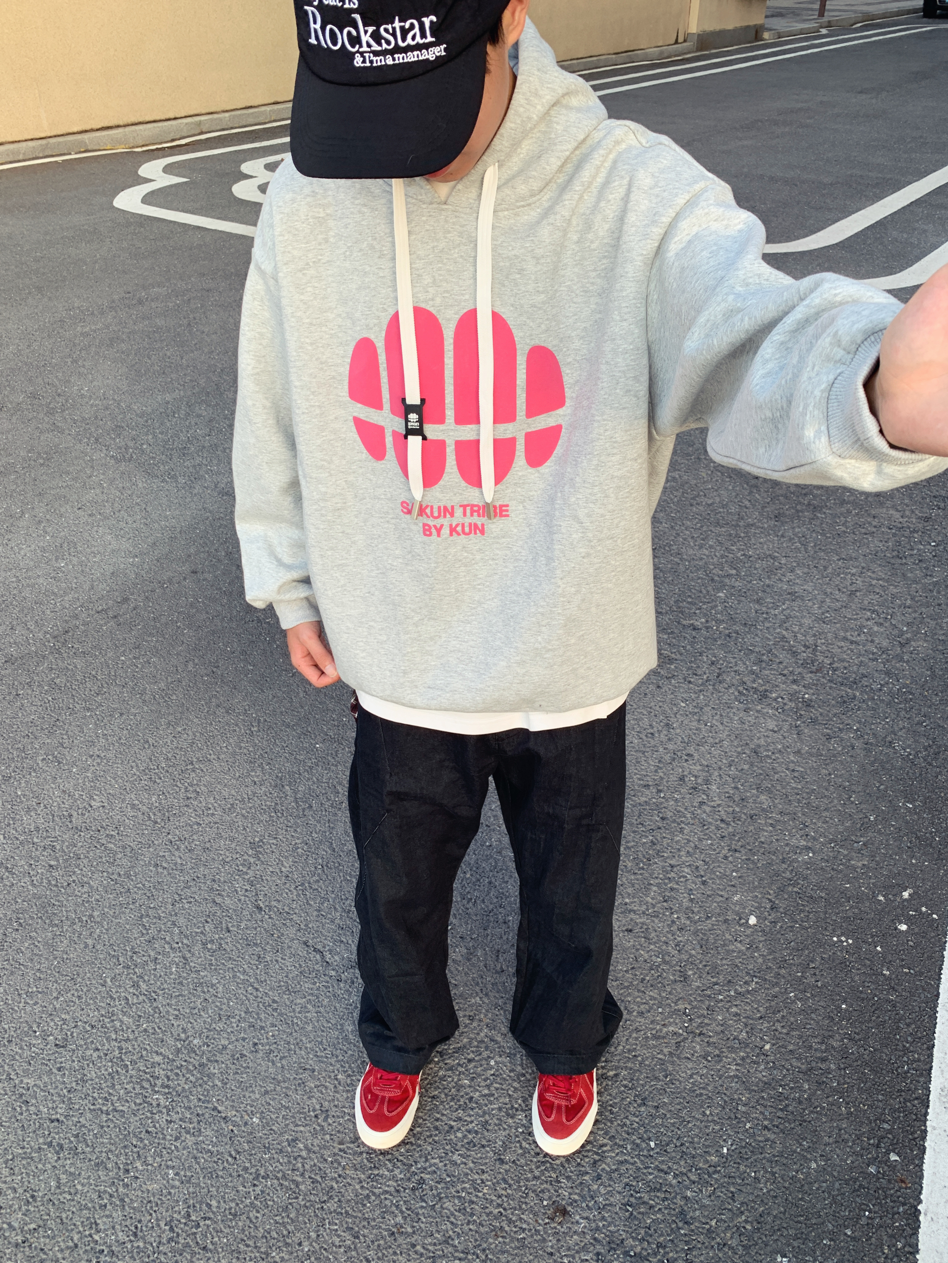 说灰卫衣+黑裤是yyds没人反对吧? Oversize的版型藏肉又显随性🆙 黑色裤加入 瞬间提升层次 ⬆️:skaun ⬇️:uxgr