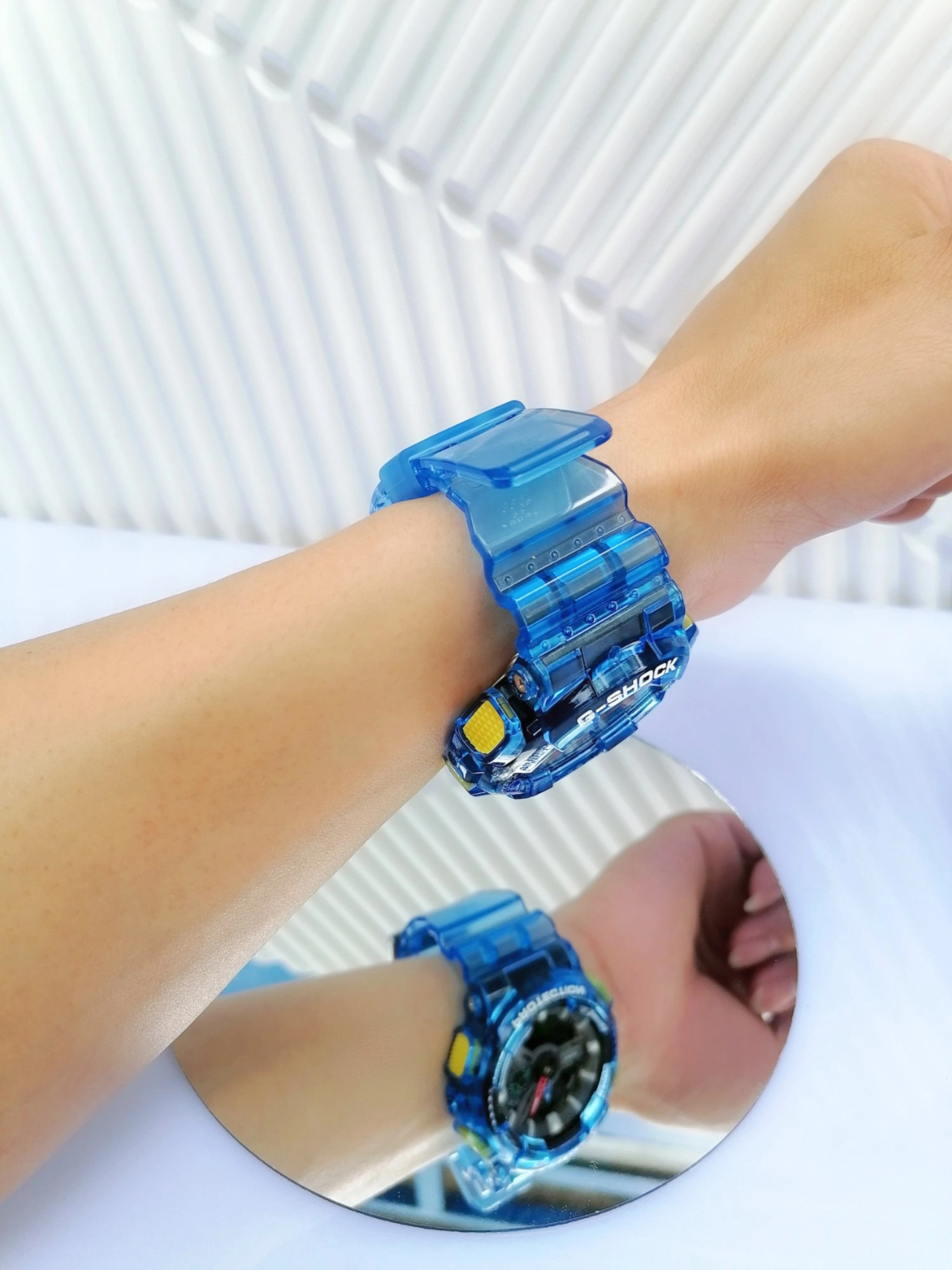 👀我的夏日宝藏腕表⌚️ 这个配色尊嘟泰好看了吧、深得我心呀! 半透明的蓝色表带、戴在手腕上好清爽, 双显的表盘设计看进去科技感十足, 简约大方又很有少年感! 日常穿搭佩戴这块表真的很亮眼👀 还是男女同款、男生女生都可以轻松的驾驭~ #我的宝藏夏日手表 #蓝色系手表 #上得物入手的好手表 #520送礼新灵感 #用520打开夏天 #时计荟带你玩转卡西欧