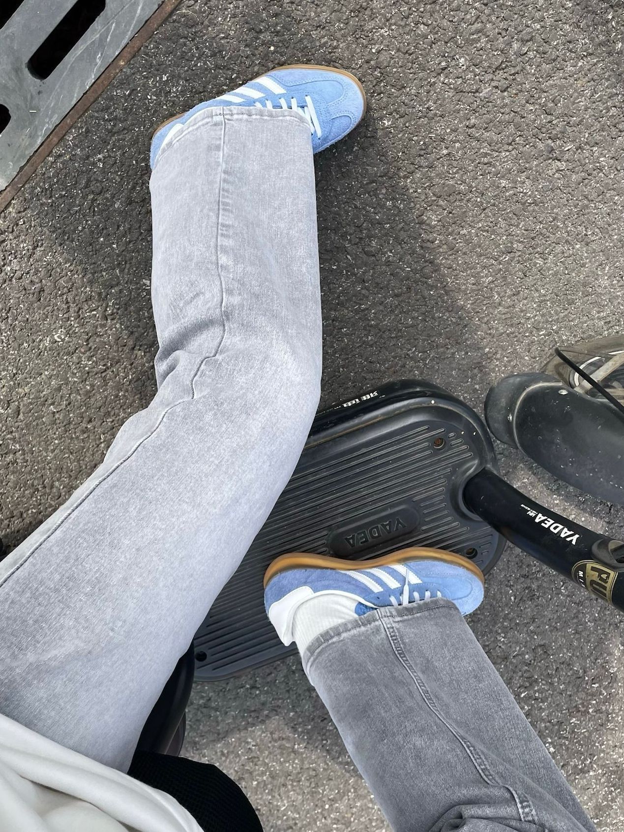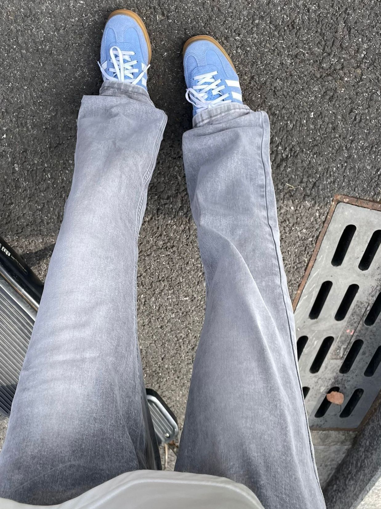 好板正的烟灰色牛仔裤! 窄窄的直筒版型 穿上就是显腿直诶~ 面料也蛮有质感的 利落不显拖沓 搭了双德训鞋穿起来也挺帅 简单不费力✌🏻️ 秋冬出去玩儿这么穿还不错吧