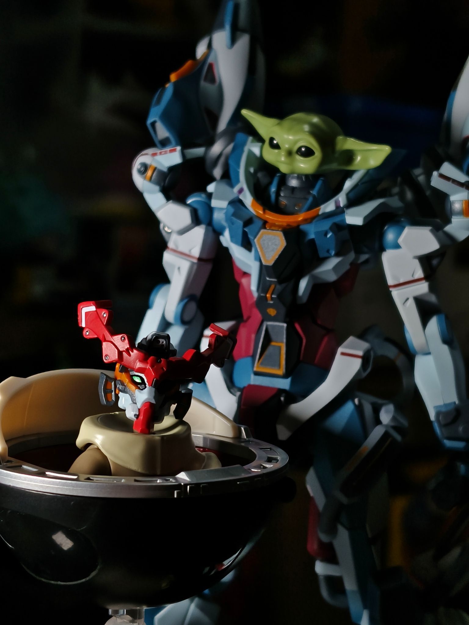 见到我你害怕了吗? 来了一波混搭玩法hh,这个尤达宝宝的头部和高达的头部差不多大小,于是乎突然有了一波小想法 猜猜我的尤达宝宝的头是哪来的