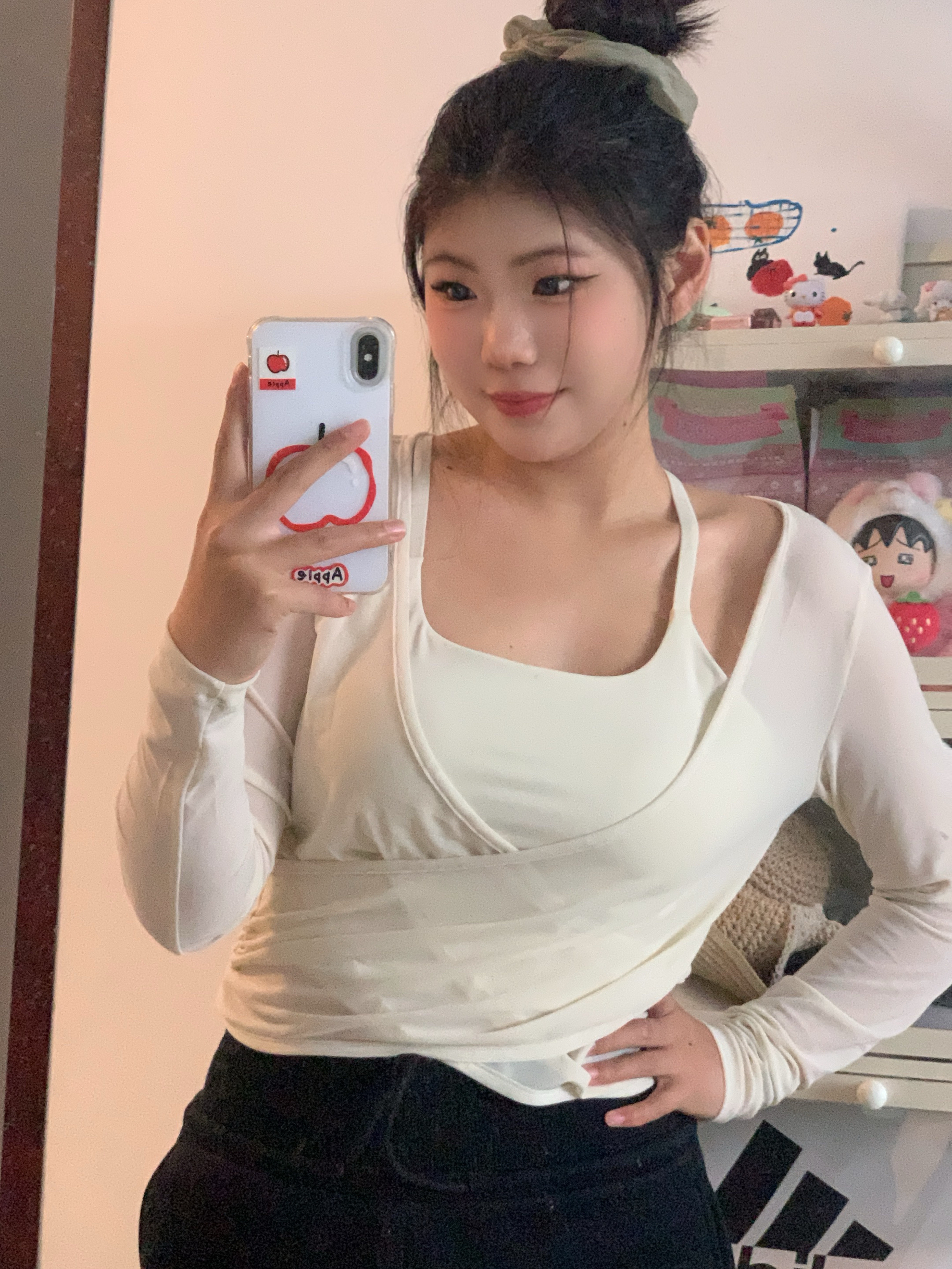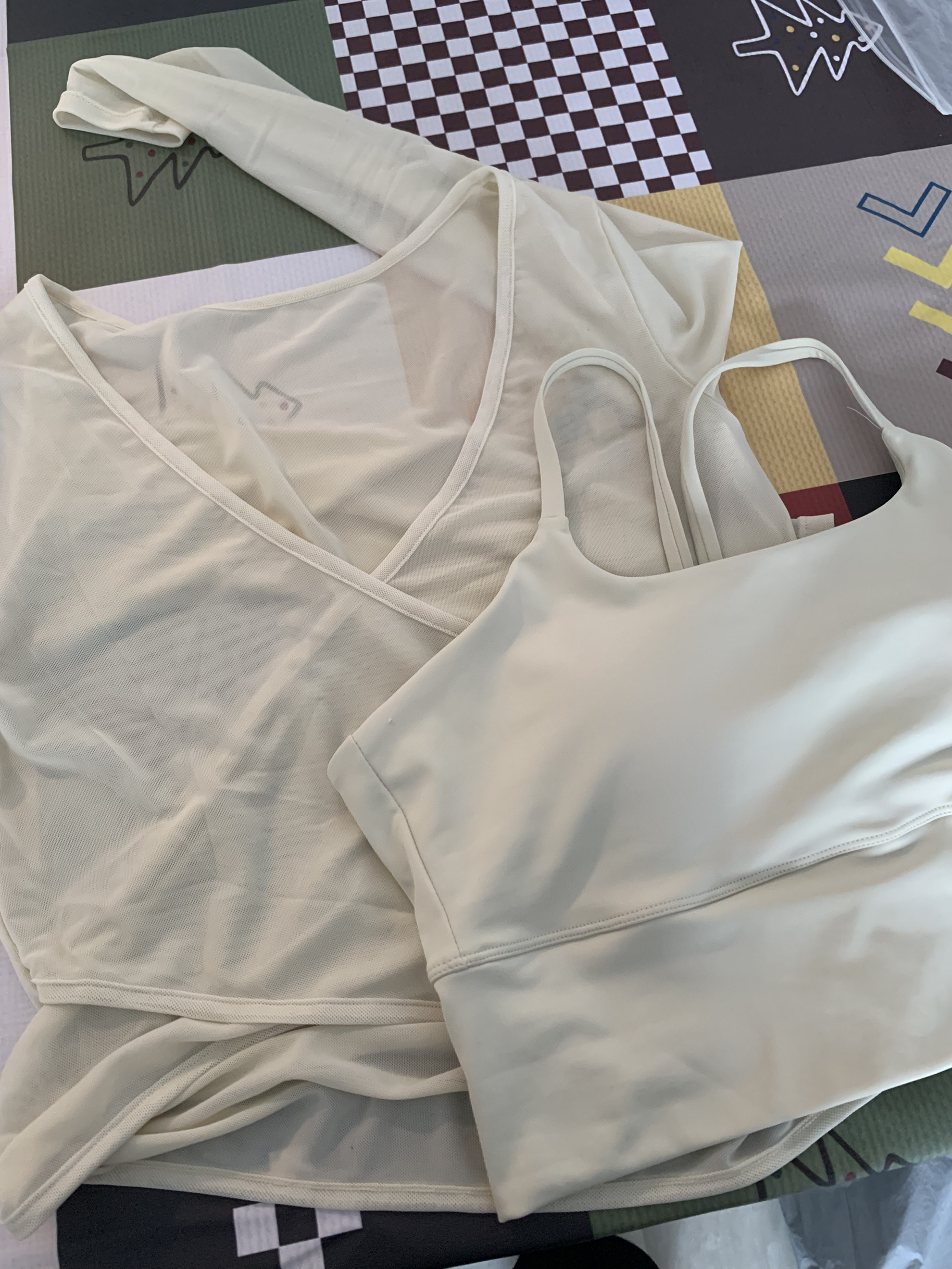 🐟:亲爱嘟大家理性种草哟~ 这是一个两件套的运动上衣里面是一个白色小吊带胸垫嘟~外面是一个白色小罩衫仙气十足~
