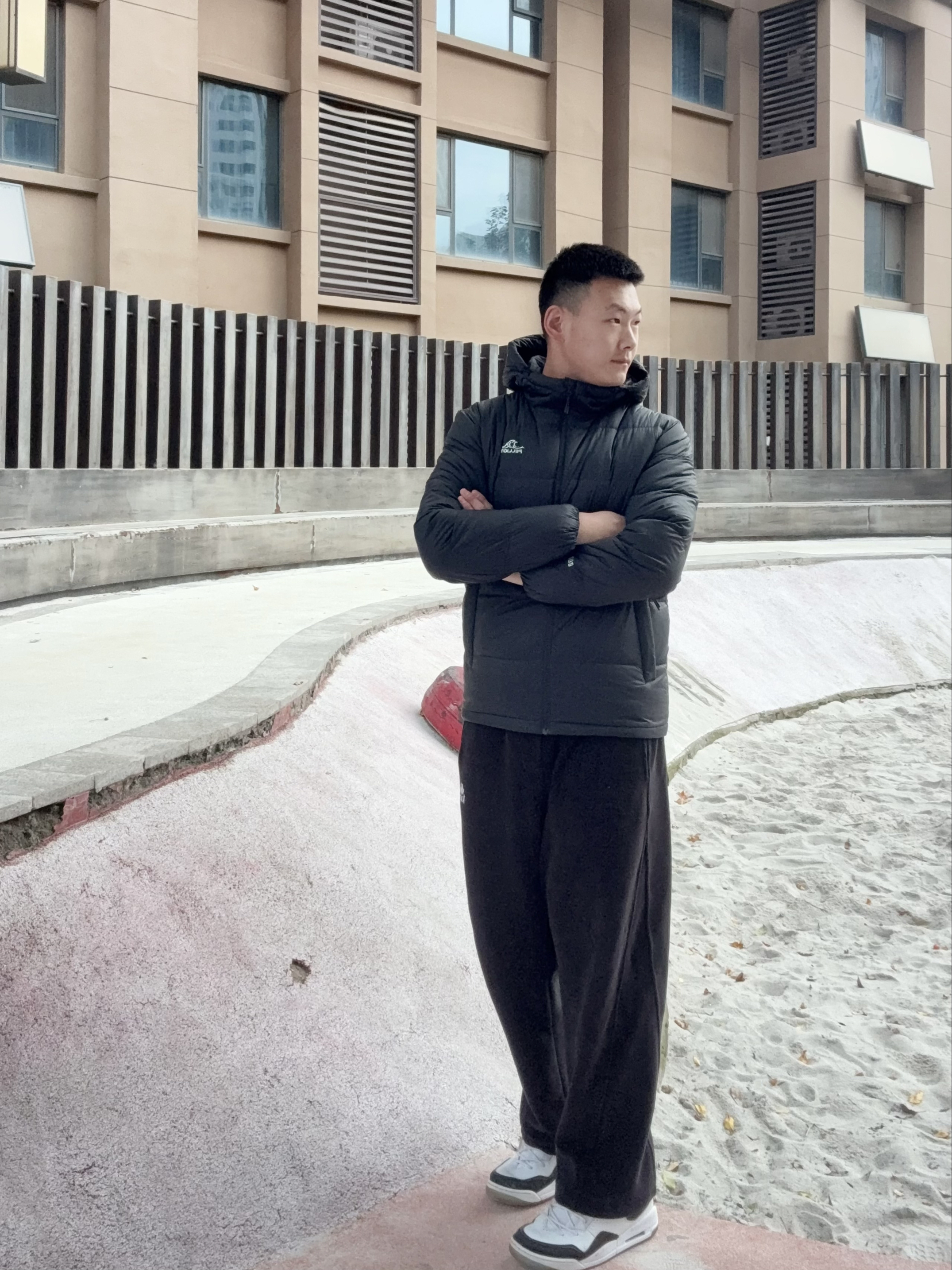这两天风跟小刀似的,裹上这件连帽羽绒服才敢下楼—— 帽子一拉能把半张脸埋进去,防风这块直接拉满,绒是那种软乎乎但很实的,揣兜的时候手能直接暖热乎。 全黑配色搭宽腿裤就很省心,不用想搭配,套上就能去取快递、买热乎的烤红薯。 最戳我的是它不臃肿,抬胳膊弯腰都不卡,揣点钥匙手机也不显鼓,属于冬天里“舒服又能打”的选手。