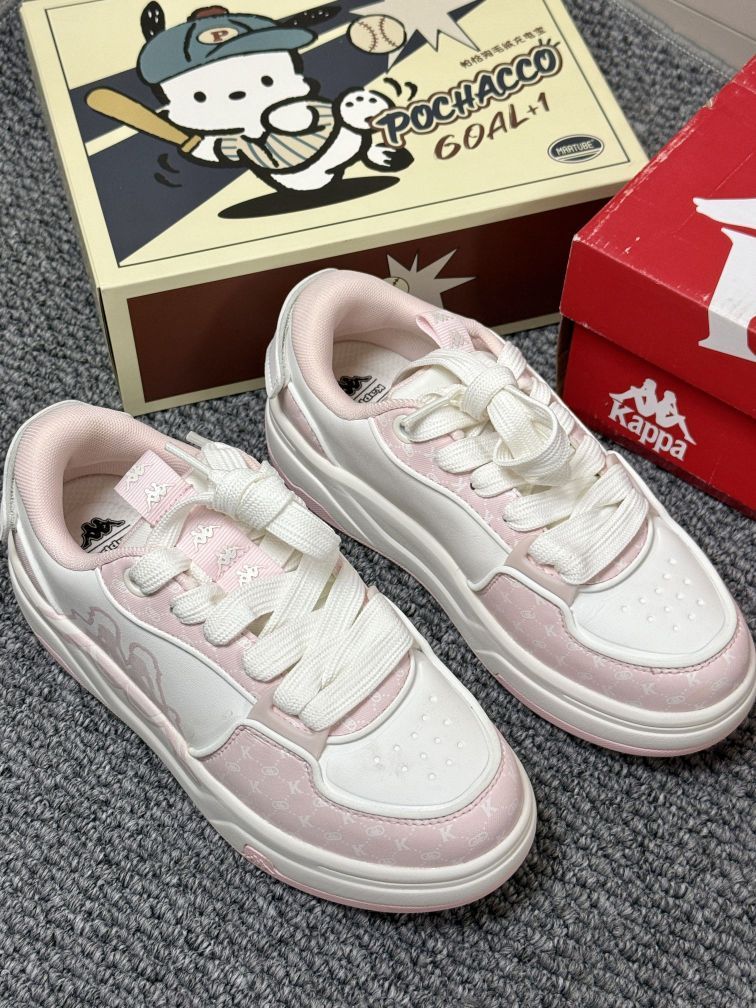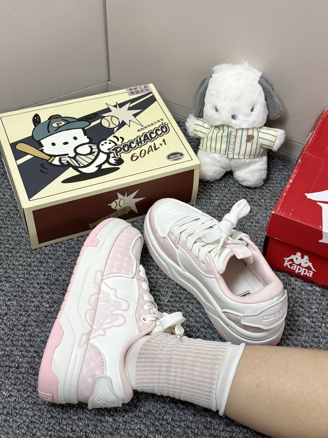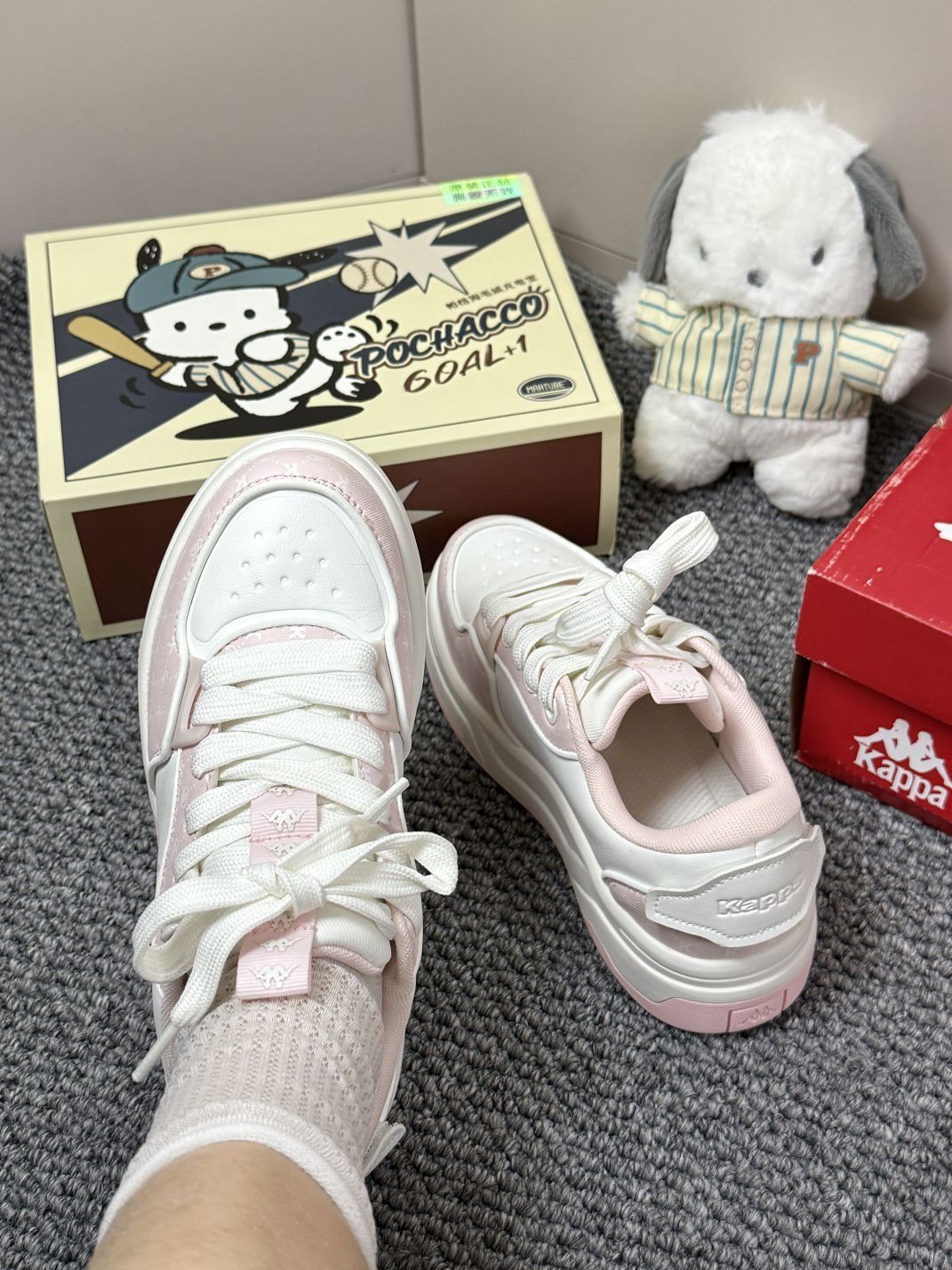 宝子们,谁能扛得住这波可爱暴击! Kappa和帕恰狗联名运动鞋,粉白配色甜度超标 ,满满的少女心都要溢出来啦! 鞋身细节处的印花俏皮又吸睛, 上脚软弹舒适,走路都带风~ 无论是日常出街还是拍照凹造型,都超绝,速速入手,让可爱加倍!