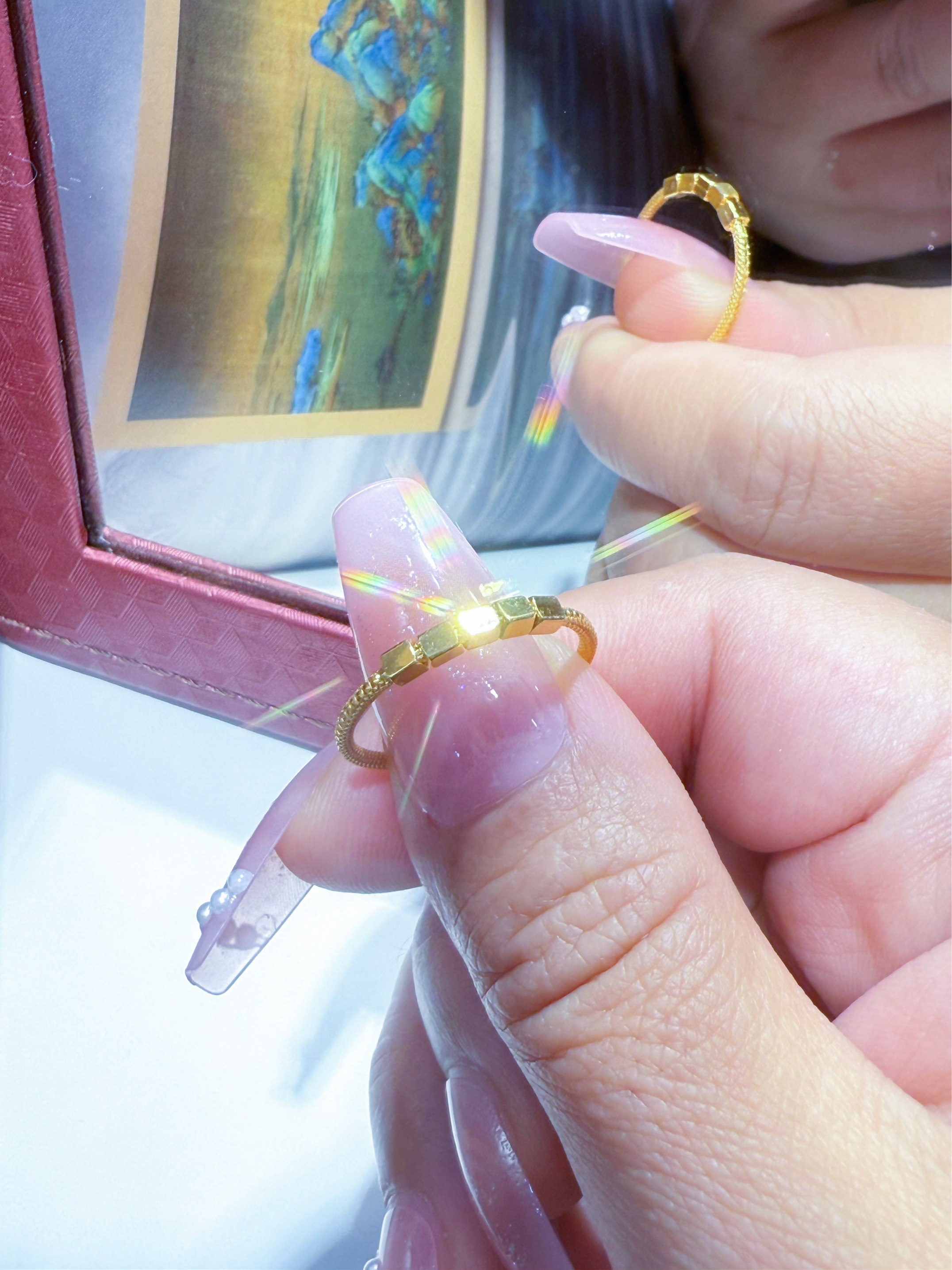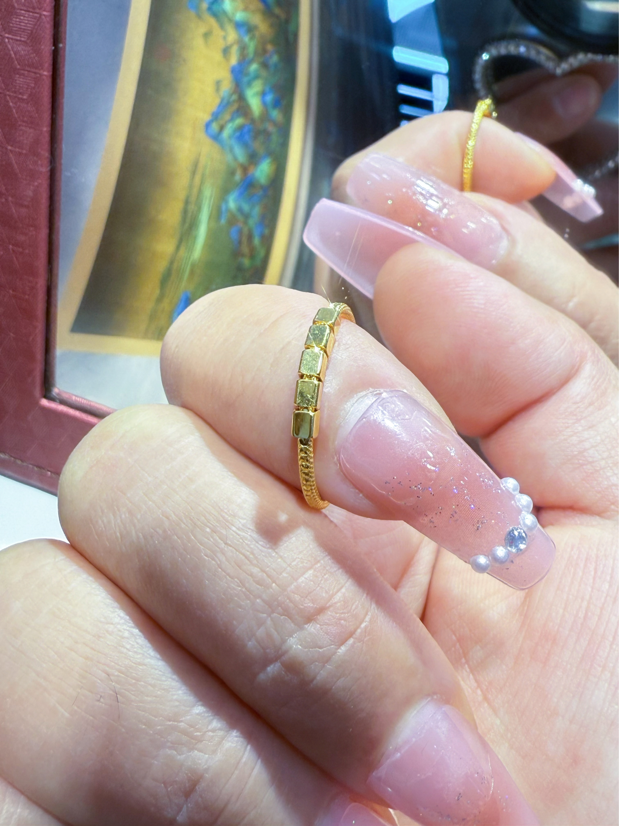还在纠结金戒要选大克重才有面子?这款1.75g的金戒必须让你改观! 戒面细碎钻纹自带温柔心机细闪,一戴上就像把星光缀在指尖,高级感直接拉满✨ 衬得手指又白又细,日常穿个T恤牛仔裤,一抬手就是吸睛亮点,整个人的精致度瞬间up up! 小克重也有大魅力,这款金戒,戴出去真的很有面!