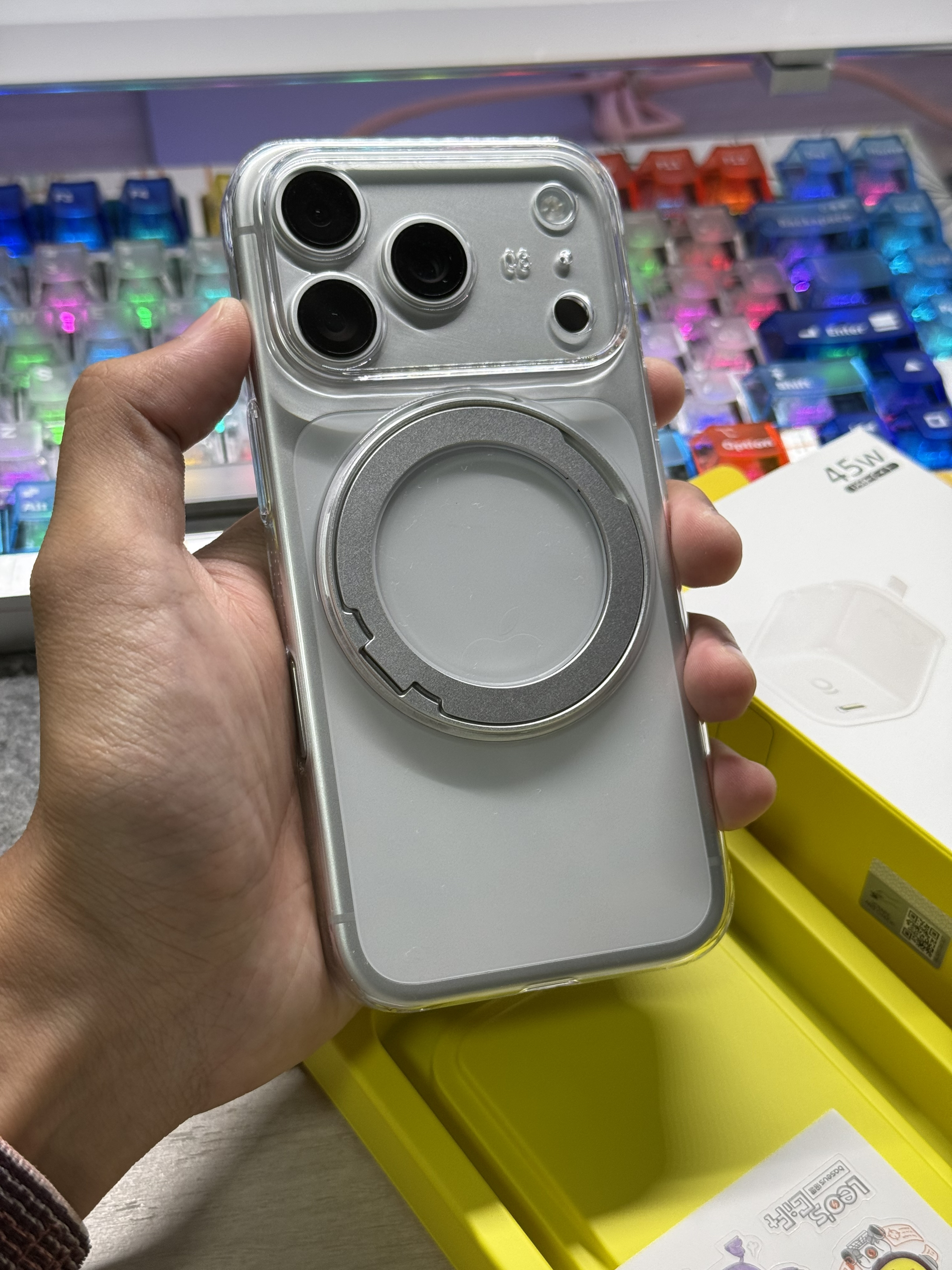 刚拆 iPhone17 Pro超激动,结果第二天就懵了 —— 手举着刷剧 10 分钟就酸,贴完膜边缘漏光还卡壳,出门带充电器又嫌沉… 直到翻到倍思这组 “救星”,才懂什么叫 “手机和配件天生一对”! 先说最戳我的零感支点壳 R1s!本来以为大屏壳都厚重,结果它拿在手里轻得像没套壳,而且背后那个小支点也太懂了吧 —— 吃饭时推出来架在桌上,大屏看剧不用手举,这种瞬间的幸福感是很重要的!同时这个连摄...
