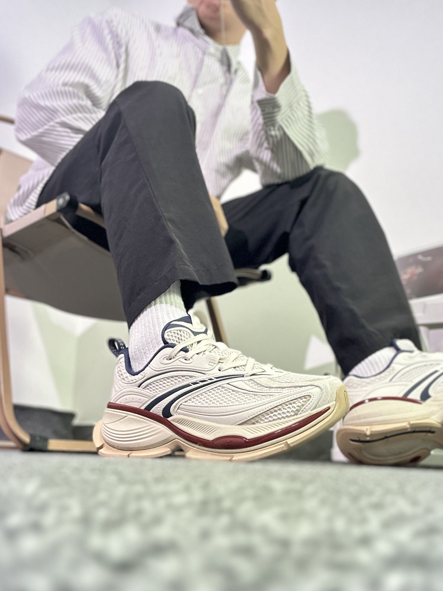 1. 上脚轻盈但支撑感一般:穿着确实没什么负重感,逛半天街脚不沉,但走多了石子路,能明显感觉到鞋底对脚底的支撑不够,足弓会有点发酸。 2. 透气不错但易脏:网眼鞋面夏天不闷脚,汗多的时候也能保持干爽,不过米白色的鞋身特别容易沾灰,稍微踩点泥渍就很明显,得经常擦。 3、显高自然却鞋型偏宽:4.5cm增高不突兀,腿看起来显长,可鞋型有点宽,脚瘦的人穿会有点晃,得把鞋带系很紧才跟脚。 4、百搭好看但易撞...