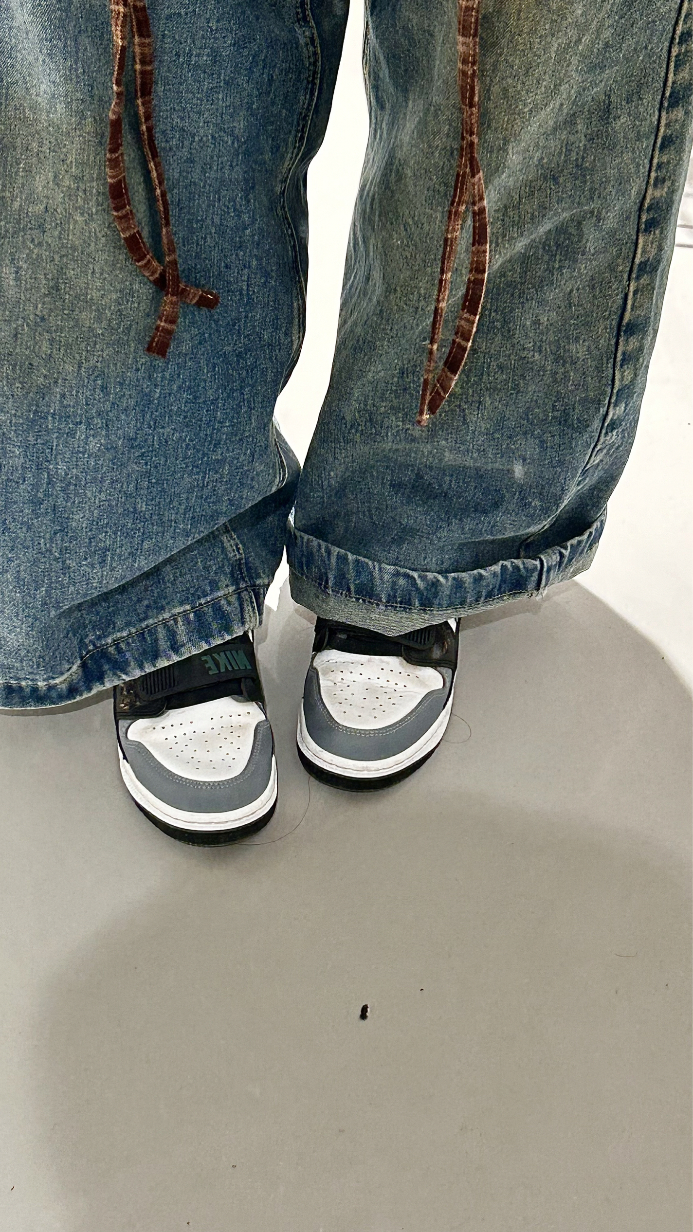 这双312都被我穿爆浆啦,去年新年的时候购入的,搭配阔腿牛仔裤帅酷风,搭配黑色微喇裤也不会出错,很百搭,越穿越舒服,一开始魔术贴那里有点挤脚但是粘的松一点就好啦,学生党必备,穿脱方便,是学校里的风景线
