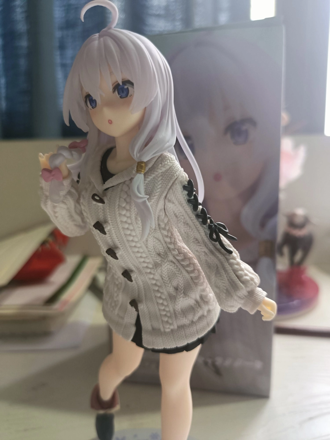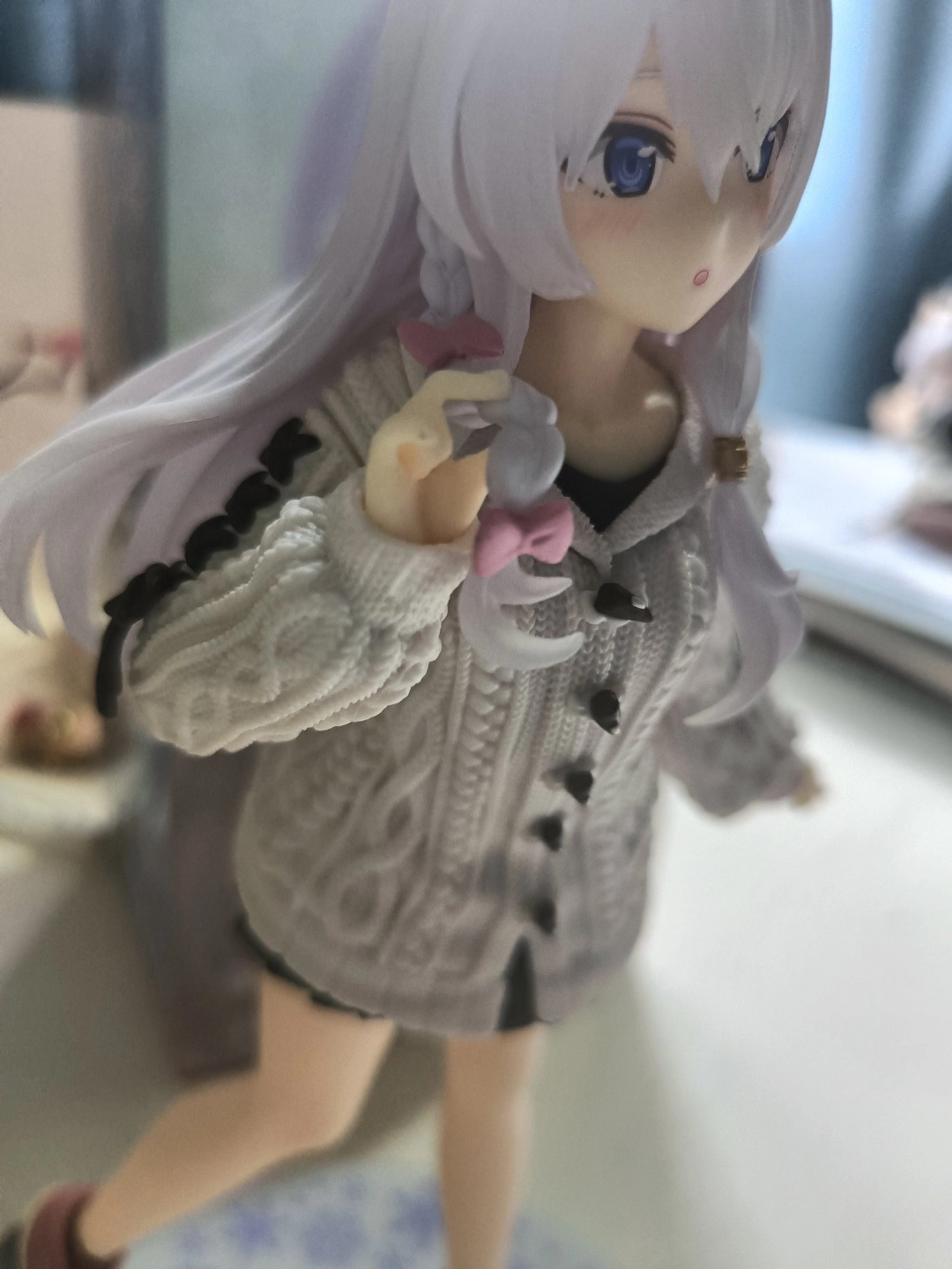 我入了这款魔女之旅伊蕾娜手办,材质不错,衣服纹理细节很用心,放置时前倾姿态好有少女感🥰!但头发部分好粗糙,头部裂缝超显眼,希望后续改进下~