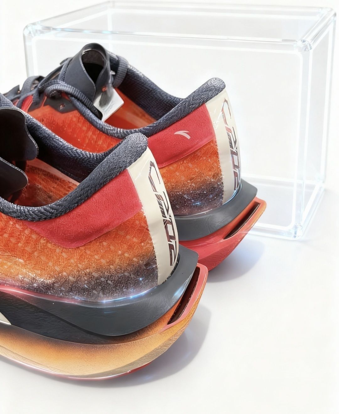 鞋面采用透气编织材料,荧光艳红与荧光正橘的渐变设计不仅吸睛,还能在夜间跑步时提供一定可视性。实际跑起来,鞋面透气性相当能打,哪怕是盛夏跑半马,双脚也不会闷得像捂在塑料袋里,汗气能及时排出,保持脚部干爽。
