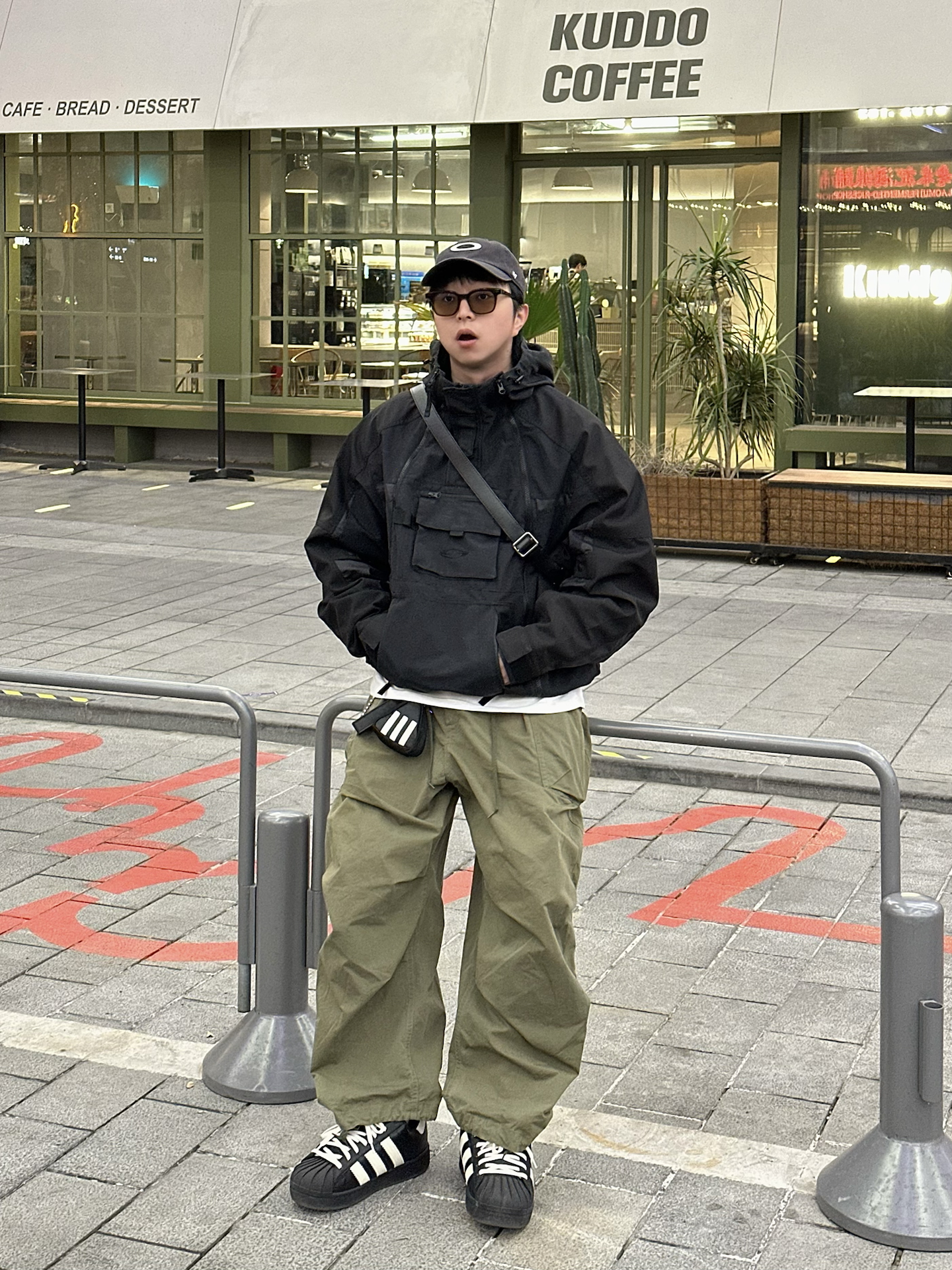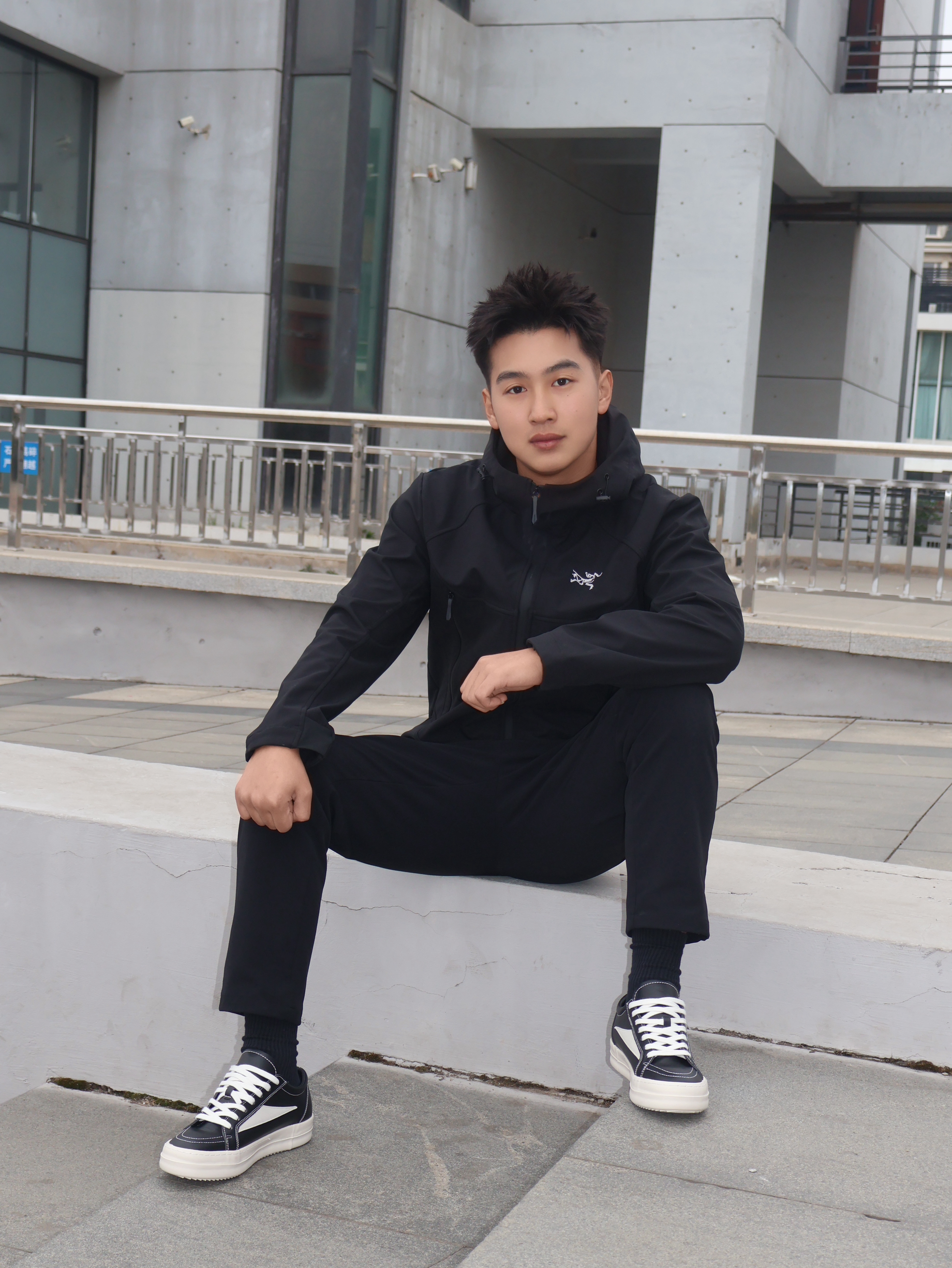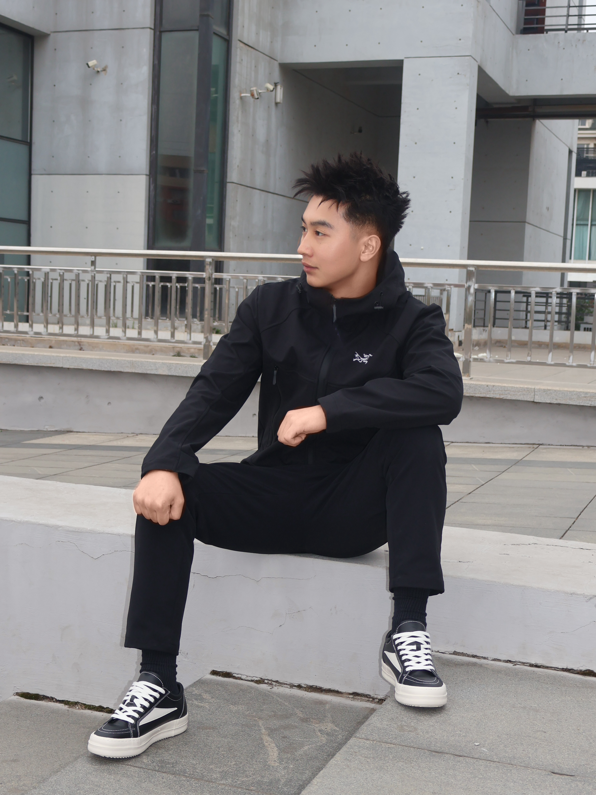 今日穿搭 上身👔:Arc'teryx防风连帽外套 利落剪裁勾勒利落身形,标志性鸟logo暗藏户外基因无搭配同色系垂感束脚裤,廓形版型让行动自由无拘 鞋子👟: Kosrood 美式复古板鞋 简约黑白配色很百搭,厚底设计自带增高 复古鞋型糅合街头质感,白鞋带与黑鞋面的经典对冲,为全黑穿搭注入活力层次。