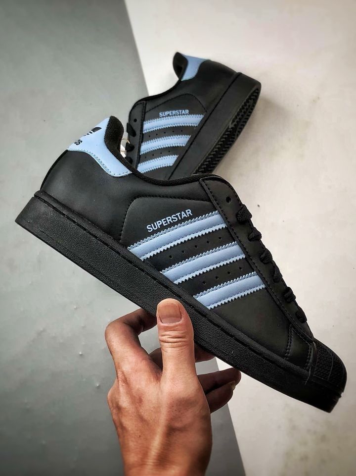 谁的复古潮鞋收藏里能少了阿迪达斯Superstar贝壳头?这双黑蓝撞色款直接把“经典再进阶”玩明白了! - 版型血统:标志性贝壳头设计,50多年的潮流Icon,从街头到秀场从没落过伍,上脚就是自带的复古腔调。 - 撞色质感:全黑鞋身搭配浅蓝三条纹+后跟,暗黑系里掺点清新感,不会沉闷还特显个性,男生女生穿都有“穿搭小心机”那味儿。 - 材质细节:皮质鞋面挺括又有质感,日常打理贼方便;经典...
