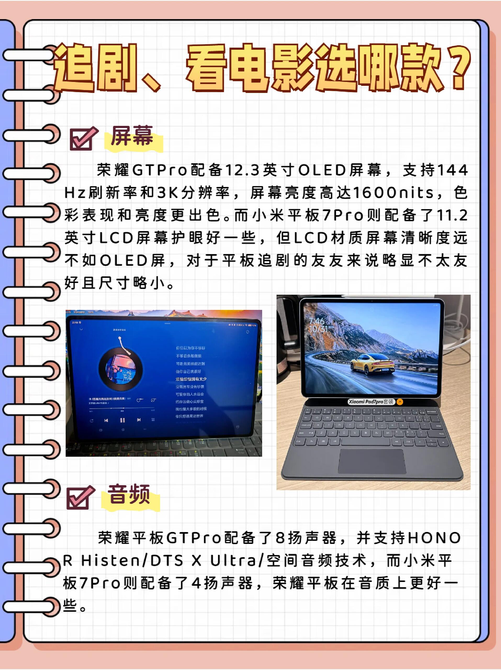 本篇笔记关联了MI/小米 7S Pro 玄戒版 2025款 12.5英寸 平板电脑 澎湃OS2 3.2K超清屏 学习 黑色、HONOR/荣耀 GT2 Pro 2025款 12.5 英寸 平板电脑 3K护眼电竞屏 满血旗舰芯 高刷 学习 快充 超清 超大电池 幻影灰等商品,为用户提供真实的使用体验和购买参考。