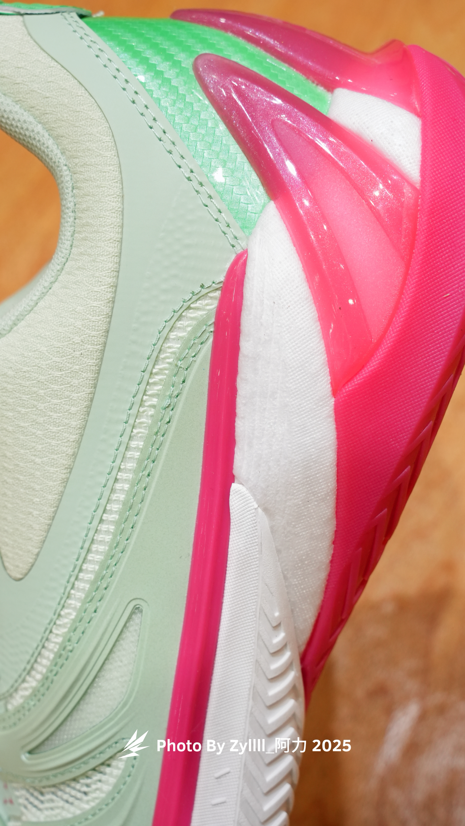 今天是湖人对阵勇士的比赛,希望新赛季小李能够穿上新战靴有好的表现 最新的AR3 浆果配色我觉得上脚很好看 而且这个配色我很喜欢,给人一种浆果的甜感 但细细看,会发现又带有热带雨林中食人花得危险气息 性能方面,相比2代,更加轻质,前掌中底厚度也降低 突破响应更为迅速,后跟三峰的TPU上翻稳定片也让后跟在落地时候更为稳定 侧向的小李飞刀TPU片也是给了我侧向蹬地很大的信心 最要说一说的是搭配的定制鞋垫...
