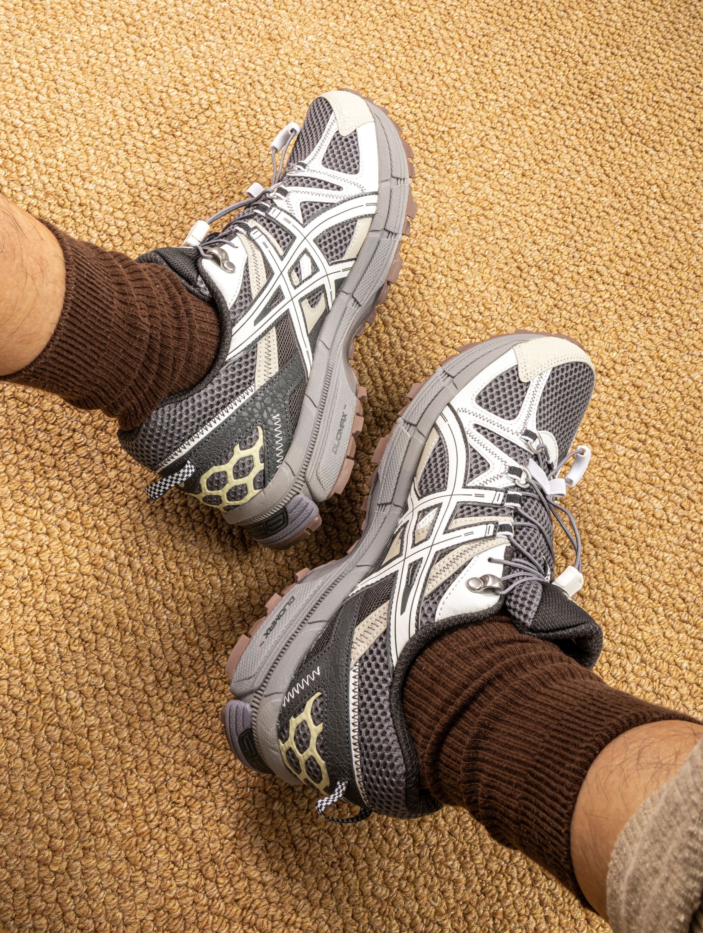 秋天穿这双鞋怎么样?这双Kahana 8的炭灰色实物比图片更有层次感,翻毛皮拼接网面细节满满。上脚第一感受是包裹性特别好,Gel缓震胶走起来带点弹性,通勤赶地铁完全不累脚。 最惊喜的是它的多功能性 - 周末徒步能应对轻度山路,雨天出门也不怕溅水。 搭配工装裤瞬间拉满机能感,配牛仔裤又是另一种街头范儿。已经成了我使用率最高的通勤鞋,兼顾颜值与性能实在太香了!