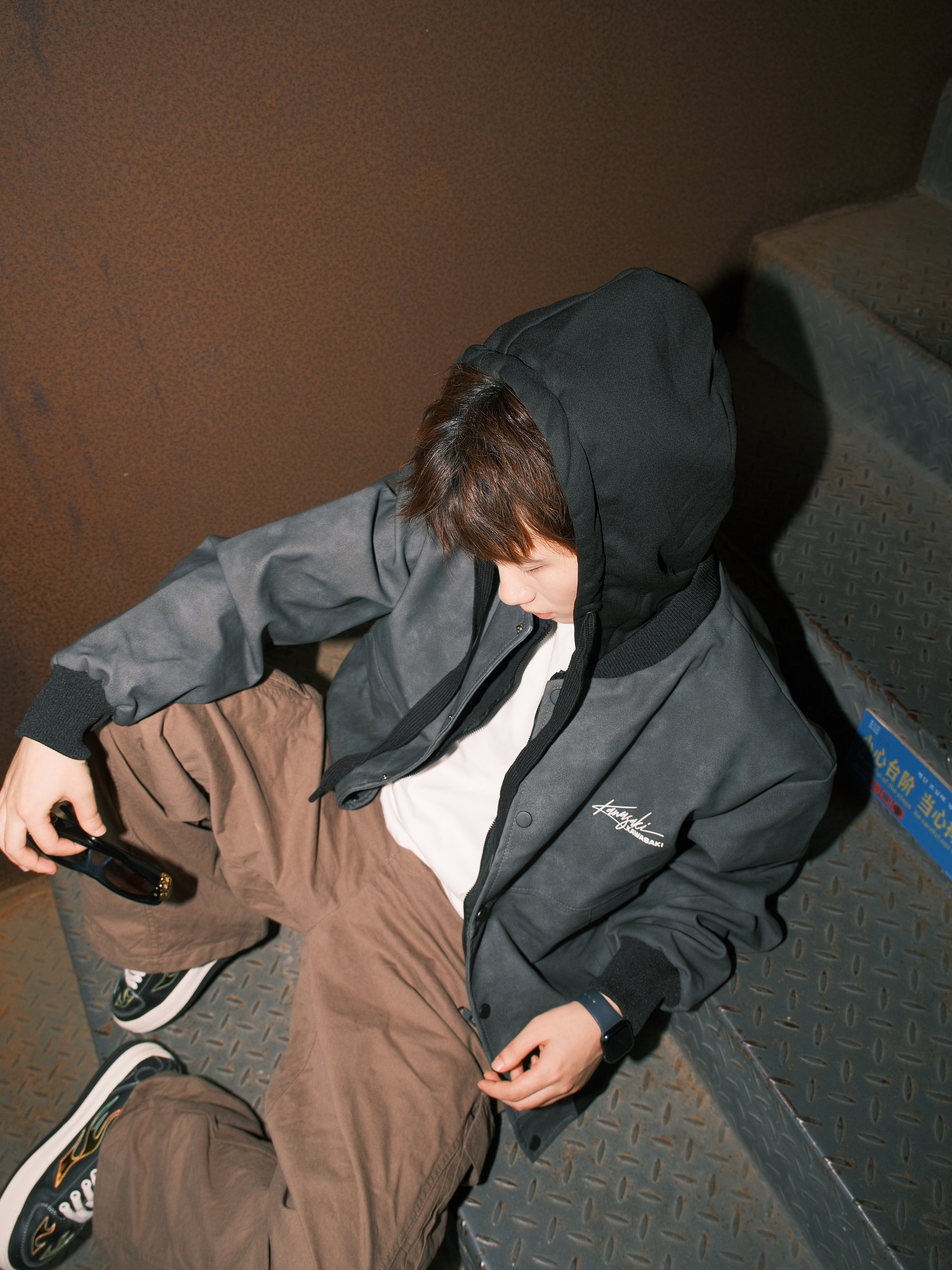 皮衣和工装裤的搭配,怎么都不会出错 今天上身选了假两件皮衣 连帽卫衣的设计,不臃肿还自带层次感 下面搭配绿色工装裤 弯刀的廓形,松弛又随性 最后再搭一双火焰面包鞋 就特别有美式街头感 🧥: Kawasaki川崎 尺码参考:163cm/46kg 上身M码