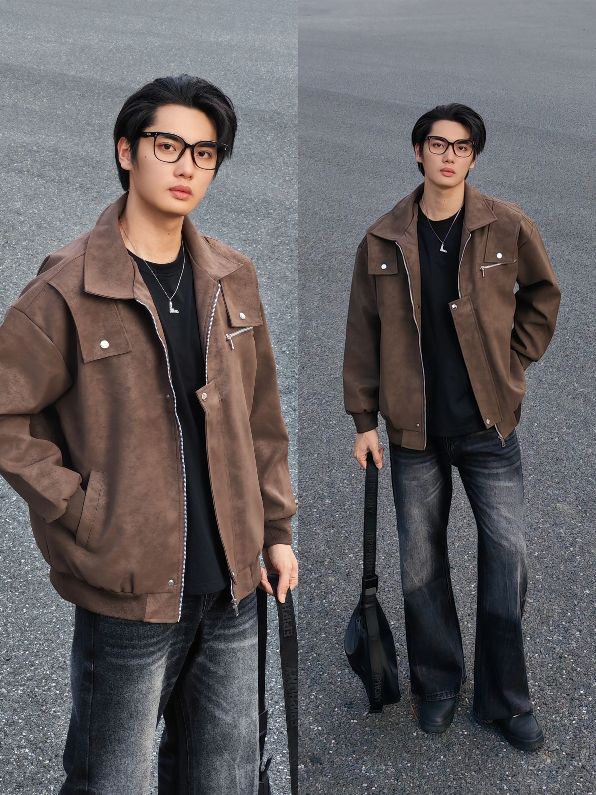 男生秋季8套多元穿搭|从街头潮酷到轻熟通勤,一键解锁秋日型男密码 秋季穿搭想要不重样还能风格百变?这8套穿搭直接给你安排明白,从复古休闲、街头潮酷到轻熟通勤,覆盖日常出街、职场办公等多种场景,让你在秋日轻松拿捏型男质感。 复古休闲风(左上1):麂皮棕夹克自带复古滤镜,搭配浅蓝做旧牛仔裤,复古与随性碰撞出独特韵味。黑色内搭简约打底,再挎上黑色腋下包,脚踩黑武士运动鞋,日常出街随性又有腔调,复...