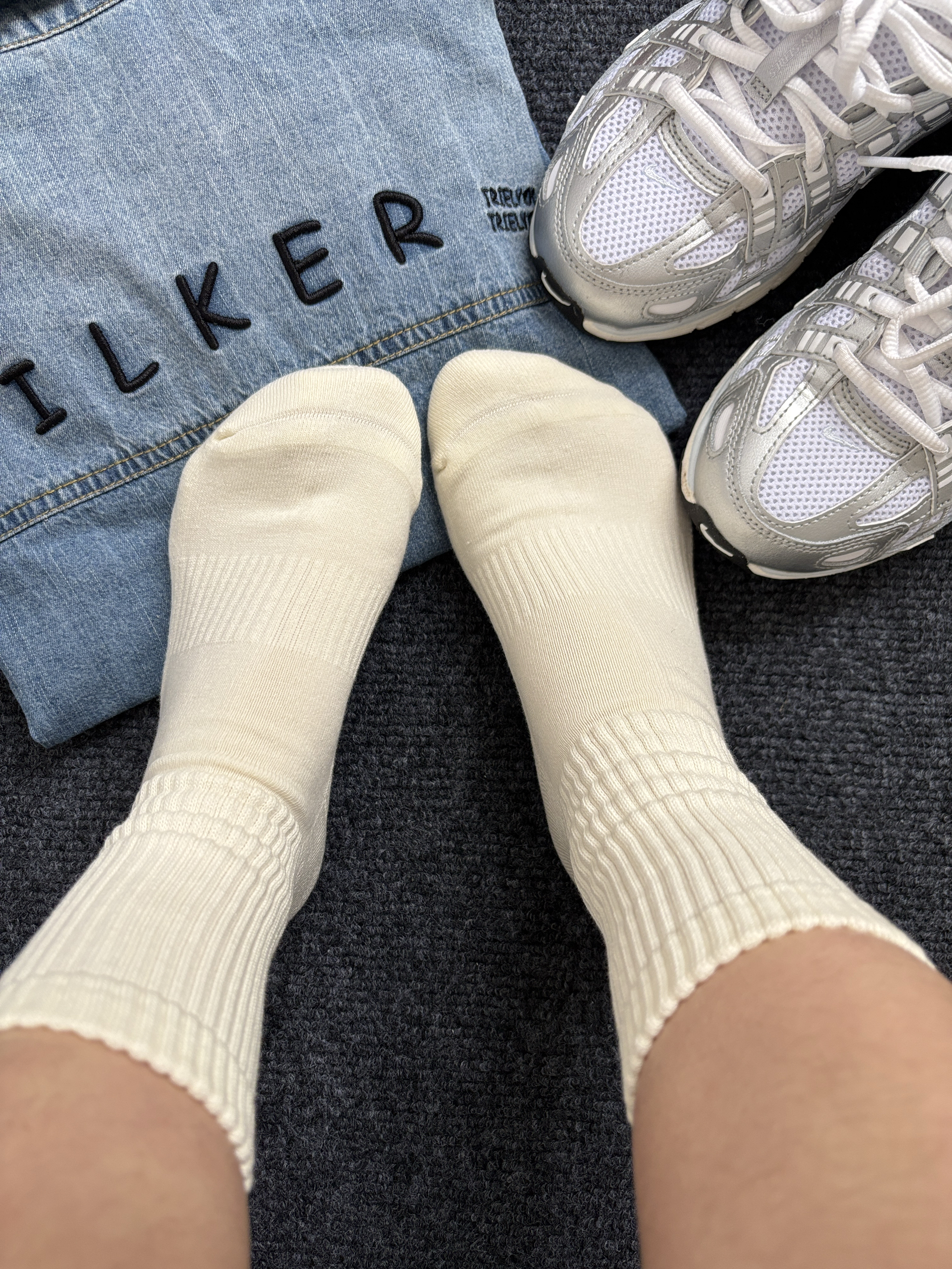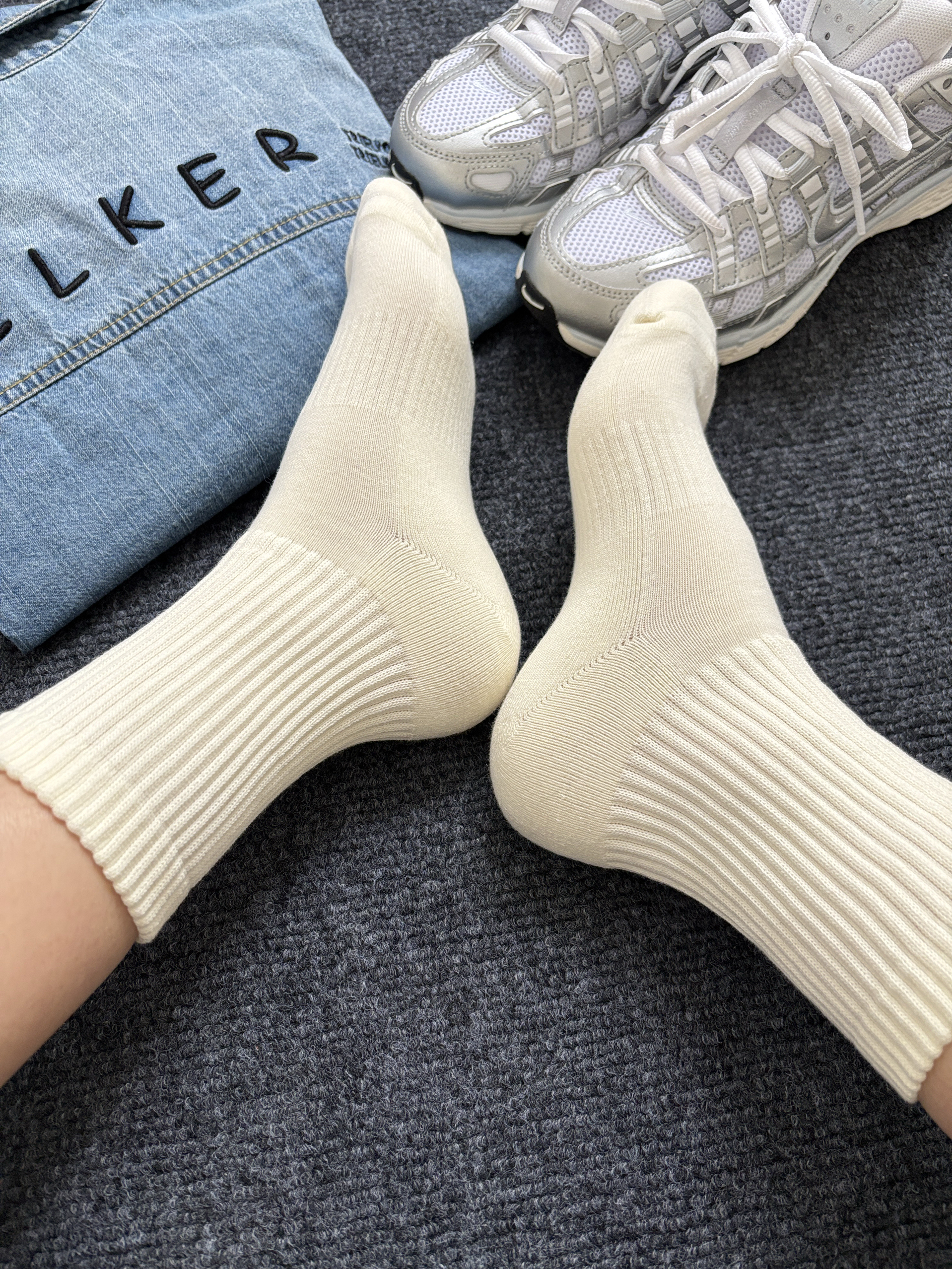 今日份穿搭 ootd 新入手了这个小袜子棉质的(@^◡^)🧦 比较厚实的那种灰常适合秋冬季节 绵绵的脚感舒服包裹性不错也不勒~ 长短也刚好再冷点的话可以把秋裤保暖裤包住 袜子漏出来也好看颜色百搭款式简约时尚😎 我感觉这个还是狠不错滴😌