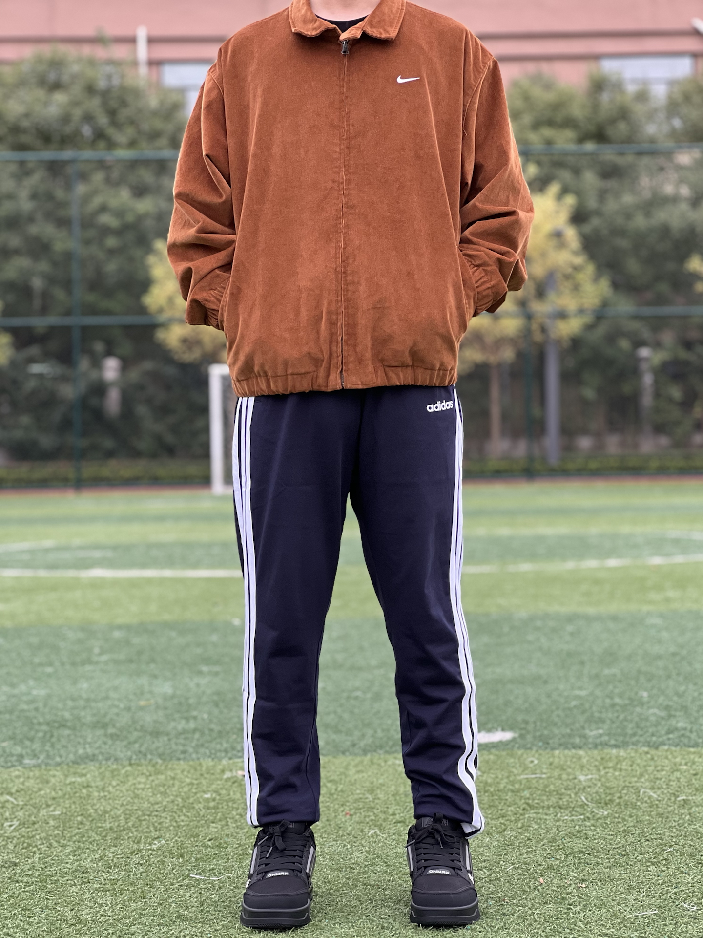 今天和大家分享一套我的秋日松弛感穿搭OOTD 上衣是Nike家的做旧复古夹克,美拉德色系秋日复古感满满🥰 搭配一条阿迪的三条杠休闲卫裤,这条卫裤上身很柔软,穿起来很舒服,藏蓝色看起来非常的松弛 鞋子是 #ON MAX 家的小帆船厚底板鞋,鞋子侧身的真空包很有设计感 鞋面是纯黑的,给人一种黑武士的感觉,上脚也很酷 鞋底是紫色的,比较亮眼,看起来很有韵味~ 满分十分,你会给我这套秋季松弛感穿搭打几分...
