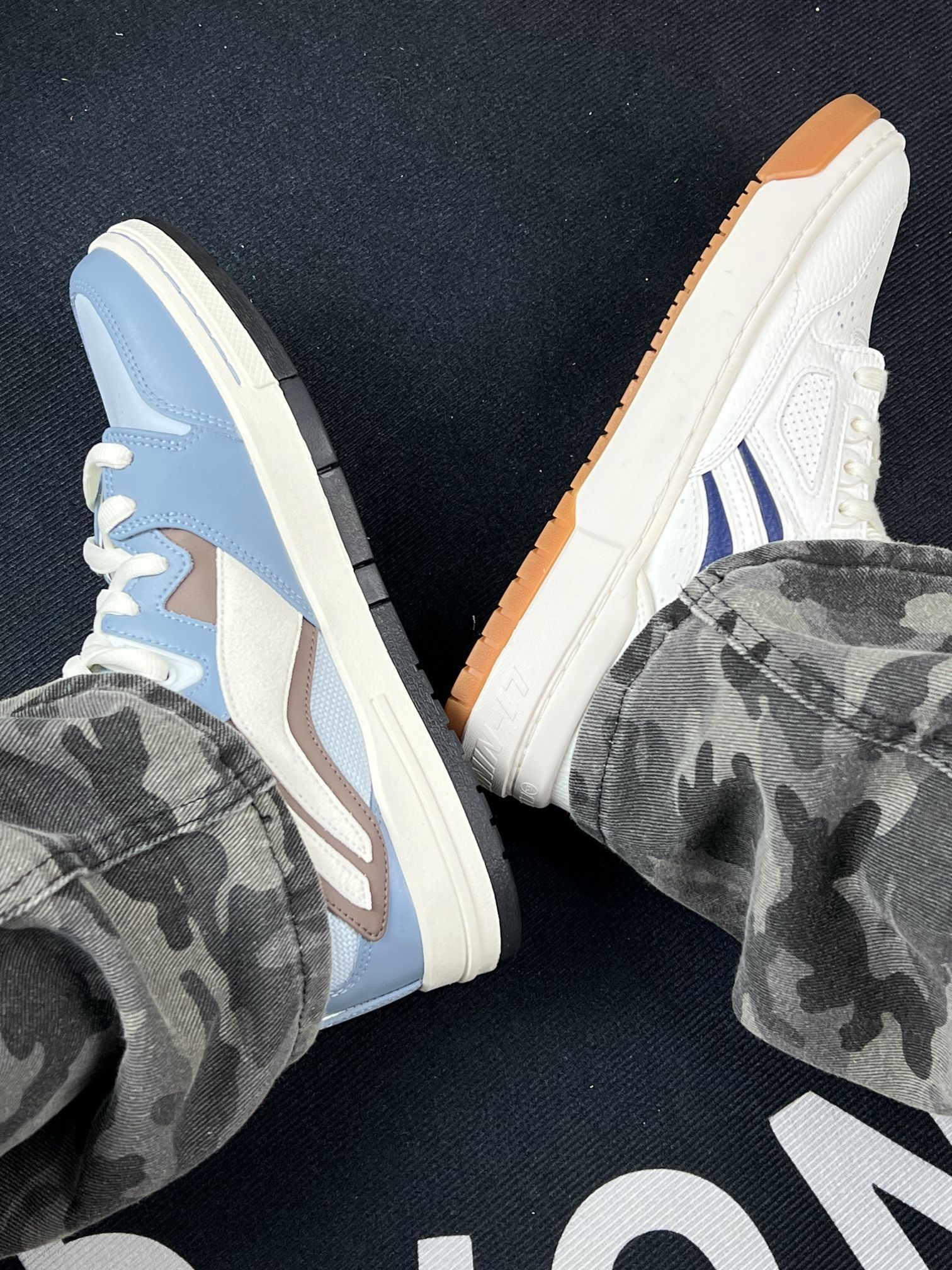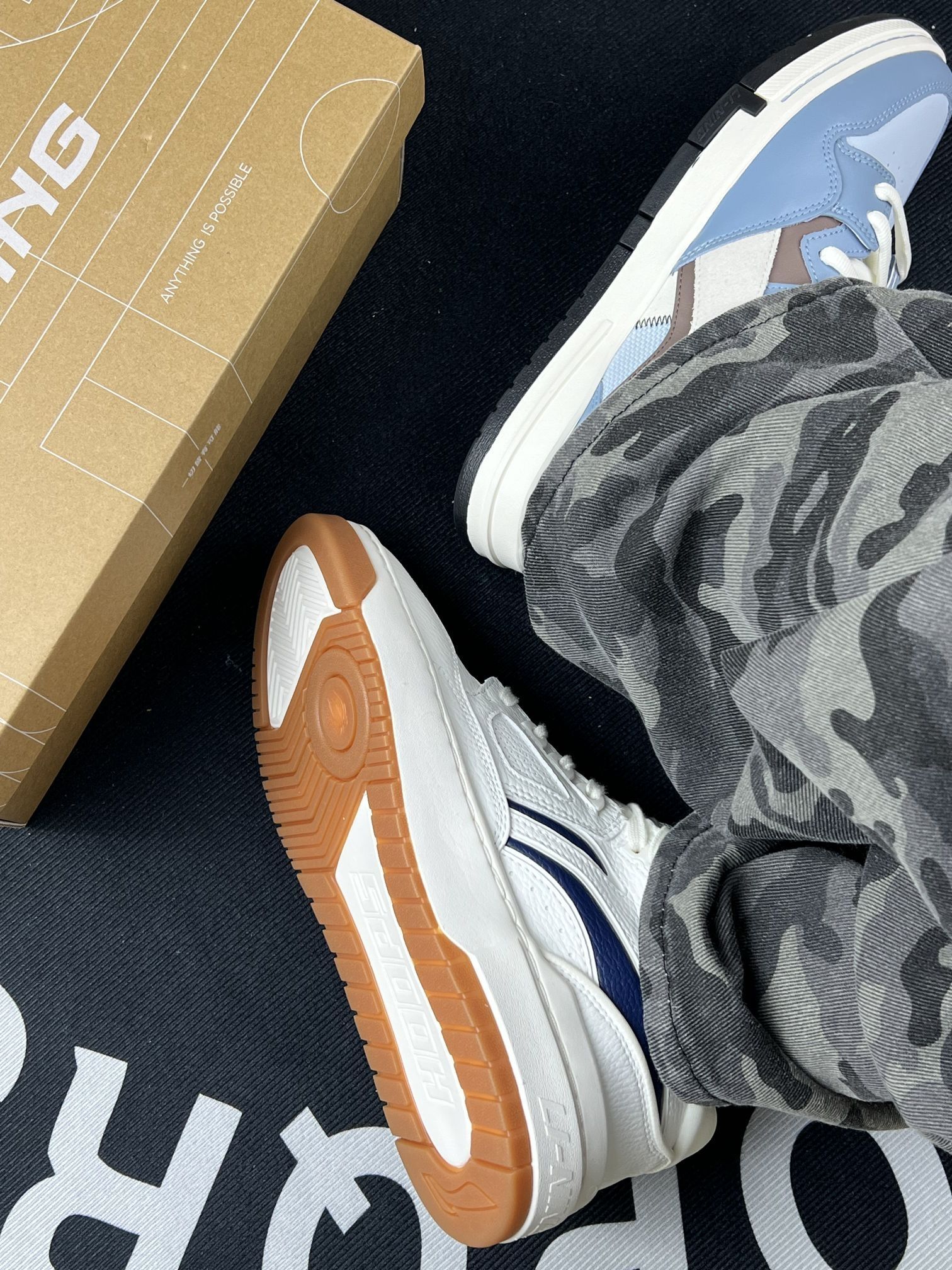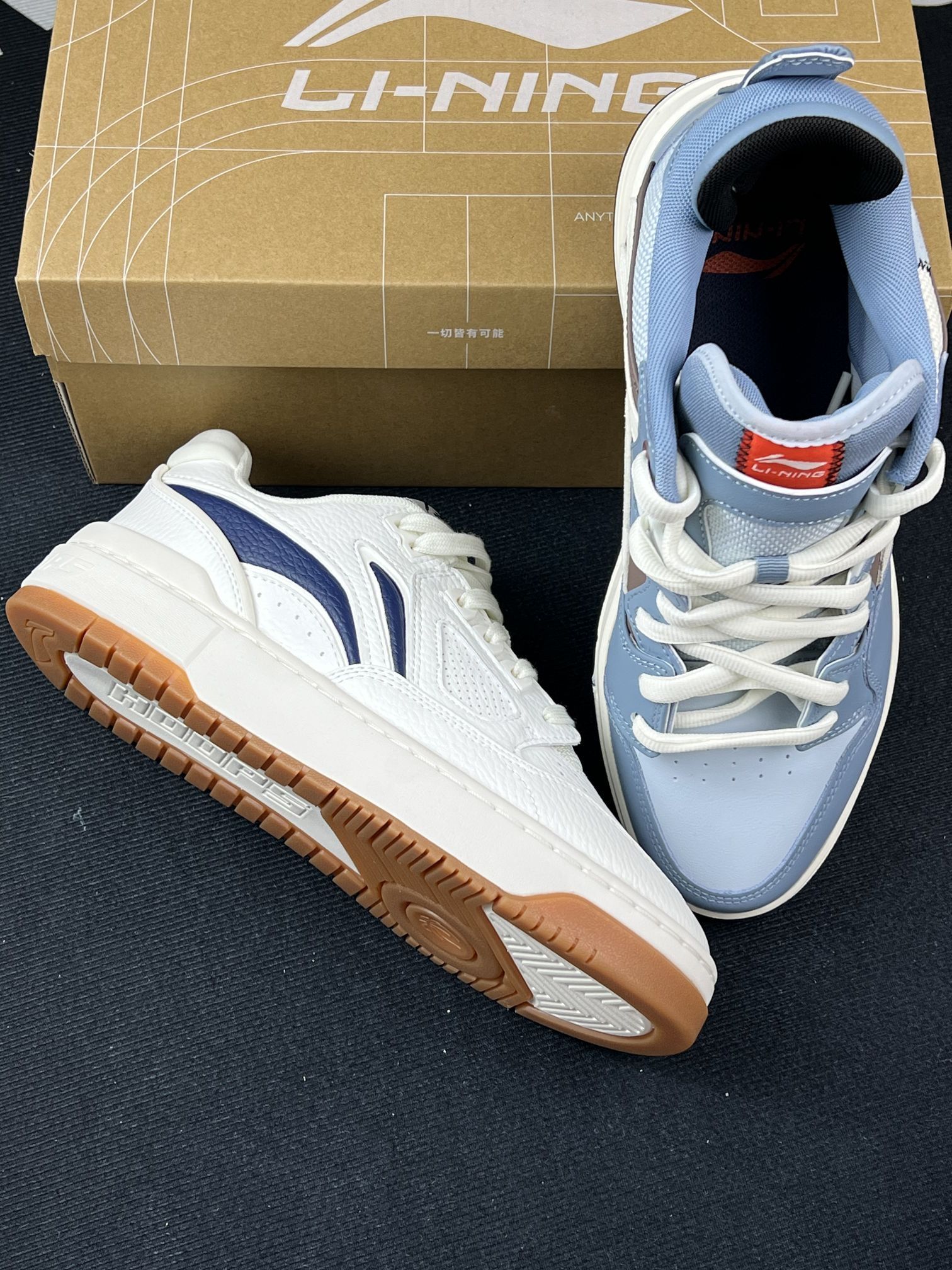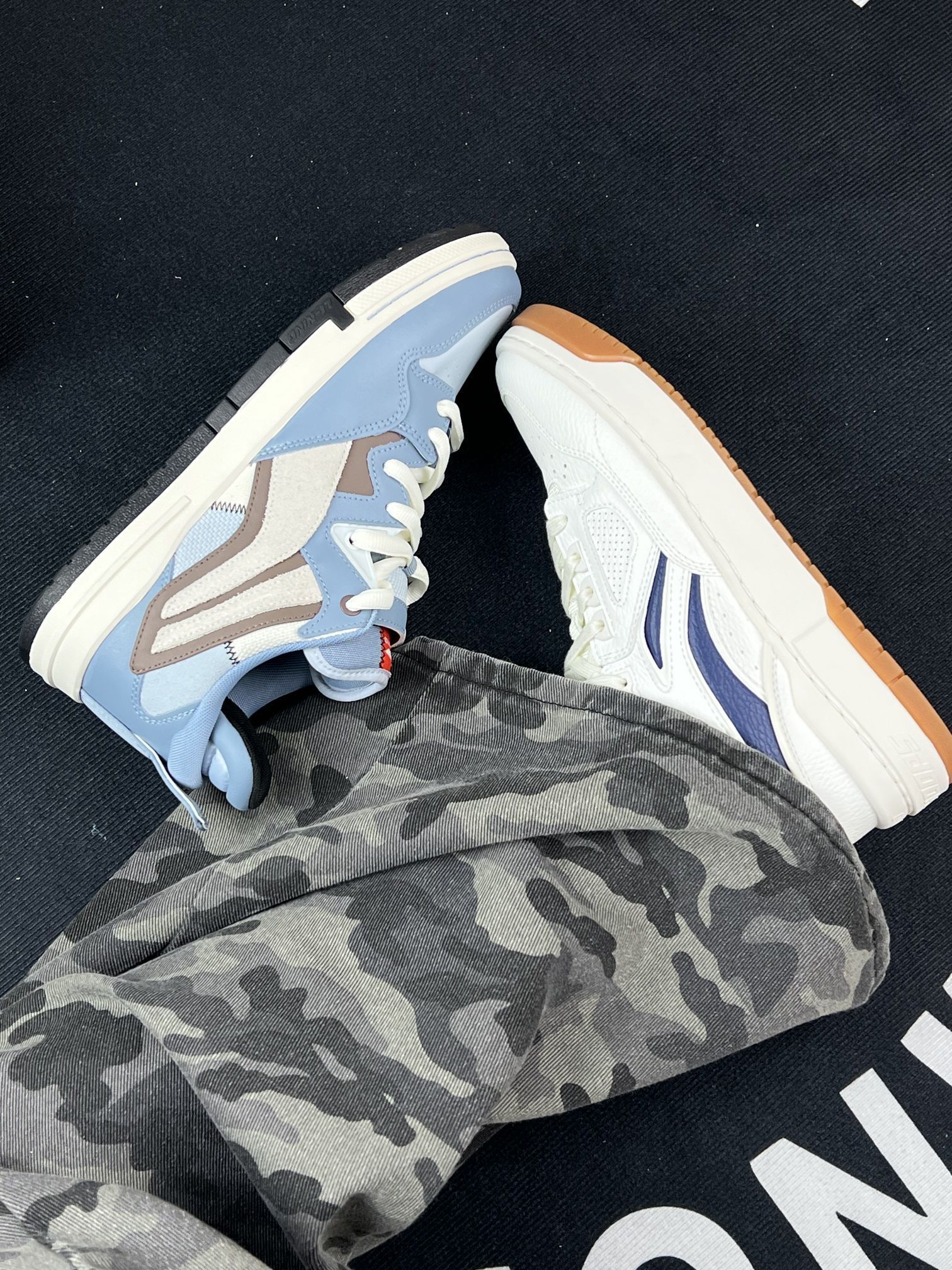 给工装风&街头风爱好者们唠唠这两双李宁鞋的真实上脚体验~😎 先试的白蓝款,搭配迷彩裤出街挺有范儿,日常通勤走路脚感也算舒适。但它鞋面很容易落灰,我这种懒人就得经常打理;而且鞋底在雨天湿滑路面得格外注意,防滑性一般。 另一双蓝灰款,鞋型设计挺有辨识度,上脚挺吸睛。不过鞋舌偏厚,刚穿那几天脚背有点压着的感觉,得磨合几次才舒服。 两双鞋的包裹感都还行,就是其中一双的缝线处线头稍显明显。整体作...