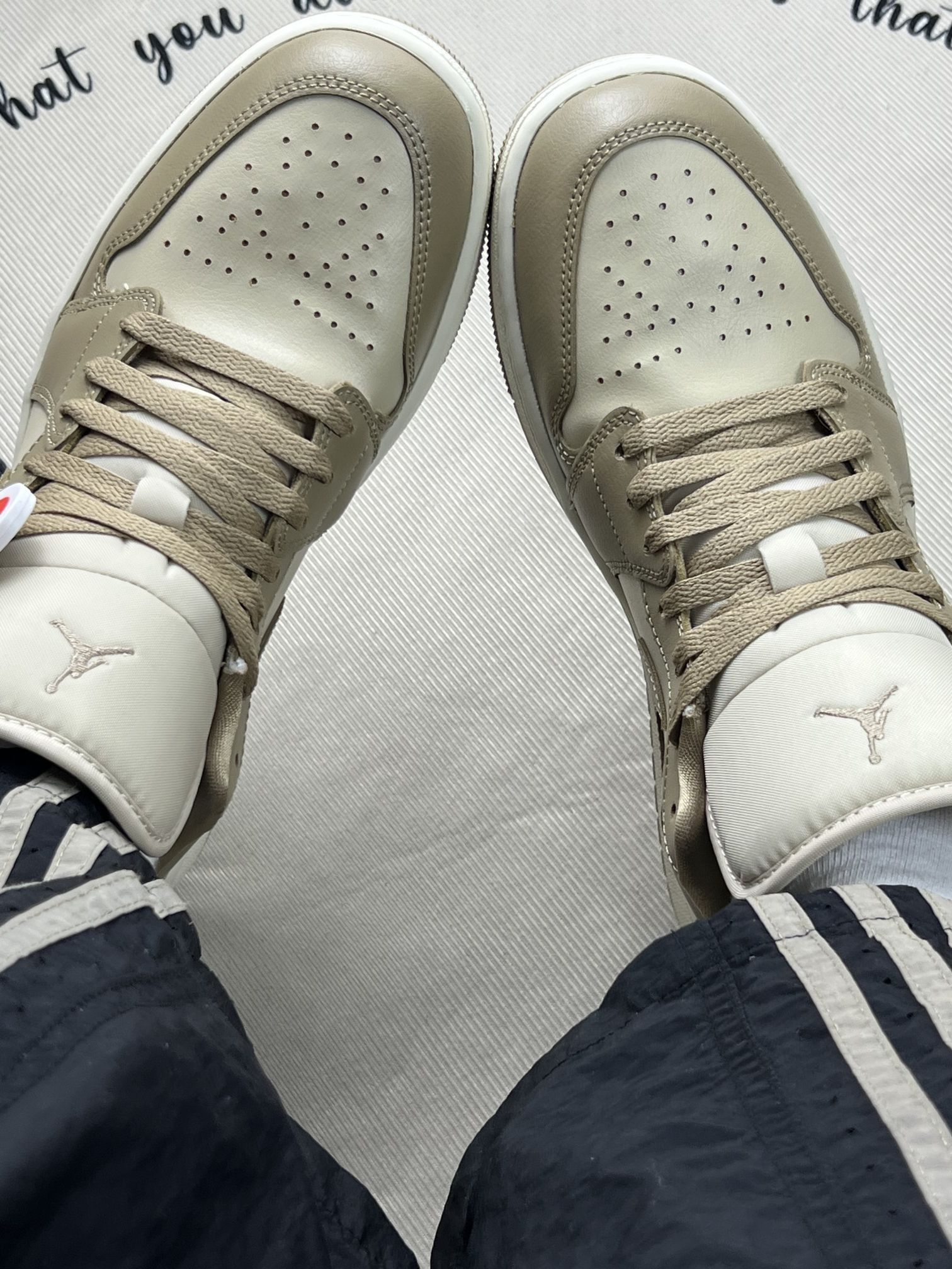 入手这双AJ1低帮,先说穿着体验。它的皮质触感还可以,搭配浅卡其色调,日常搭配休闲装挺和谐的😌。 但缺点也很明显,鞋码有点迷,我按平时码数买,刚开始穿挤脚,得磨合好几天才舒服。而且透气性一般,夏天穿久了脚容易闷汗😓。 另外,鞋底的舒适度只能说中规中矩,长时间走路的话,脚底板会有点累。不过要是日常短时间出行、随便逛逛,它的颜值和质感还是能打一下的,就看你能不能接受这些小不足了。