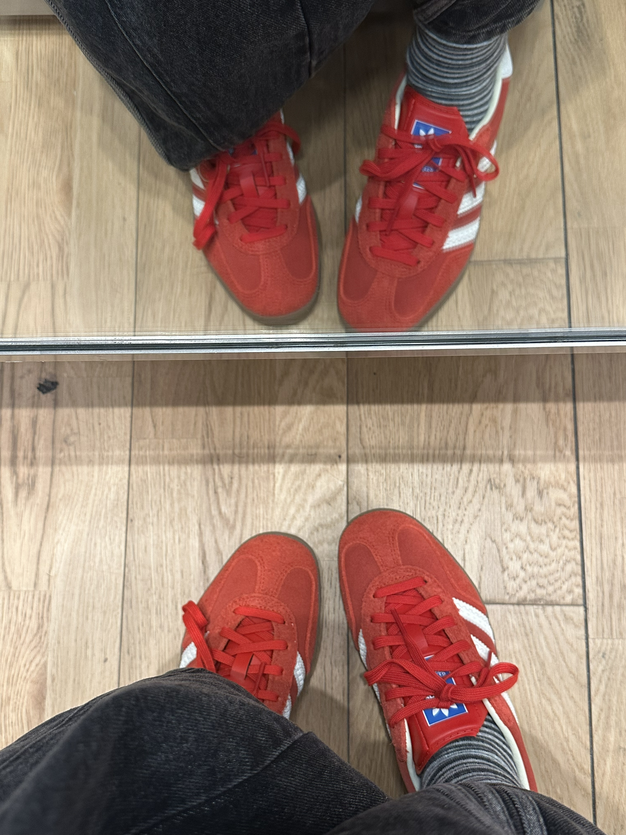 超酷的红色德训鞋啦 上脚脚感很好 百搭时尚且通勤 超爱的一款阿迪鞋子