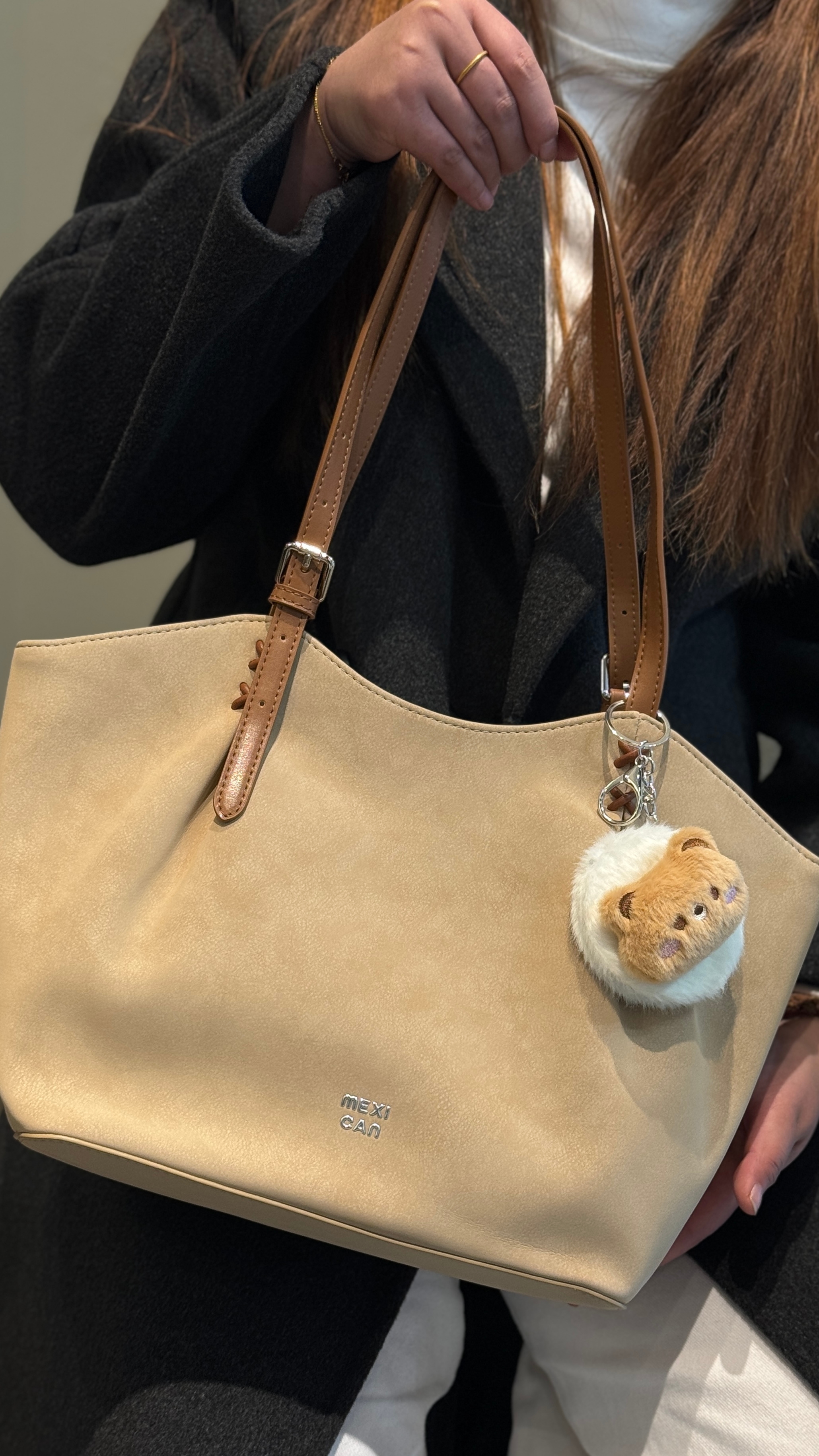 姐妹们 这款稻草人的托特包 被很多朋友都夸好看😝 卡其的配色 和秋冬季真的很搭 包包皮质很软 它的质感 我感觉还蛮不错的 包包上有个小玩偶🧸 打开居然是小镜子🪞 真的好贴心 日常可以补补妆 它的容量很大 平时放个平板 书 充电宝 都没什么问题 #稻草人女包 #双十一低价买大牌 #我的包包是座博物馆 #选包尽头是长期主义 #秋日松弛感背身上