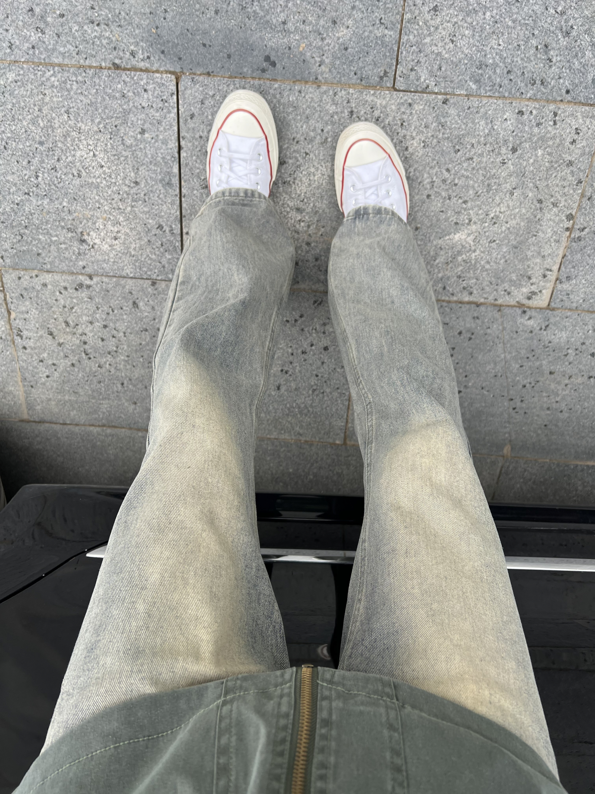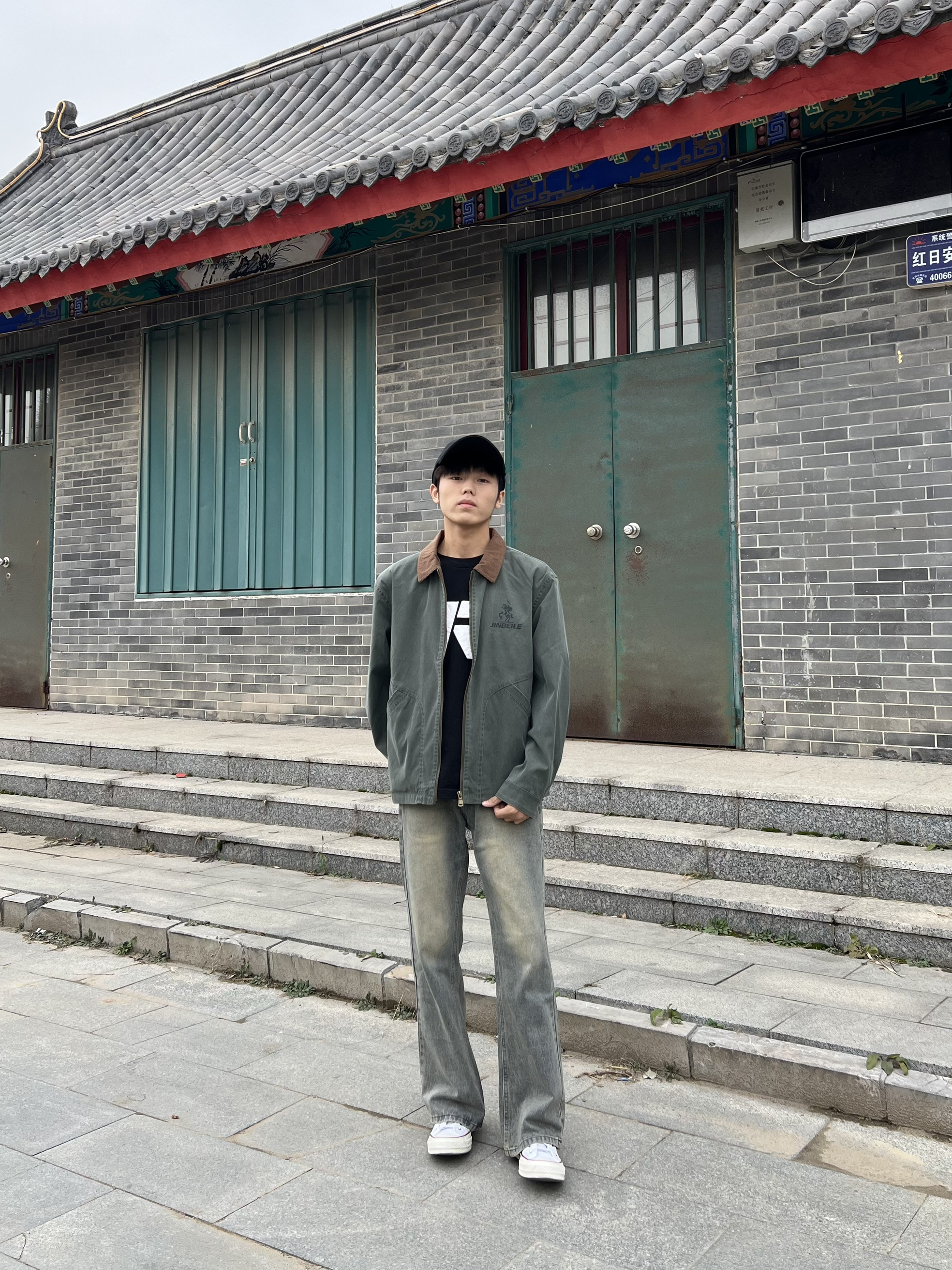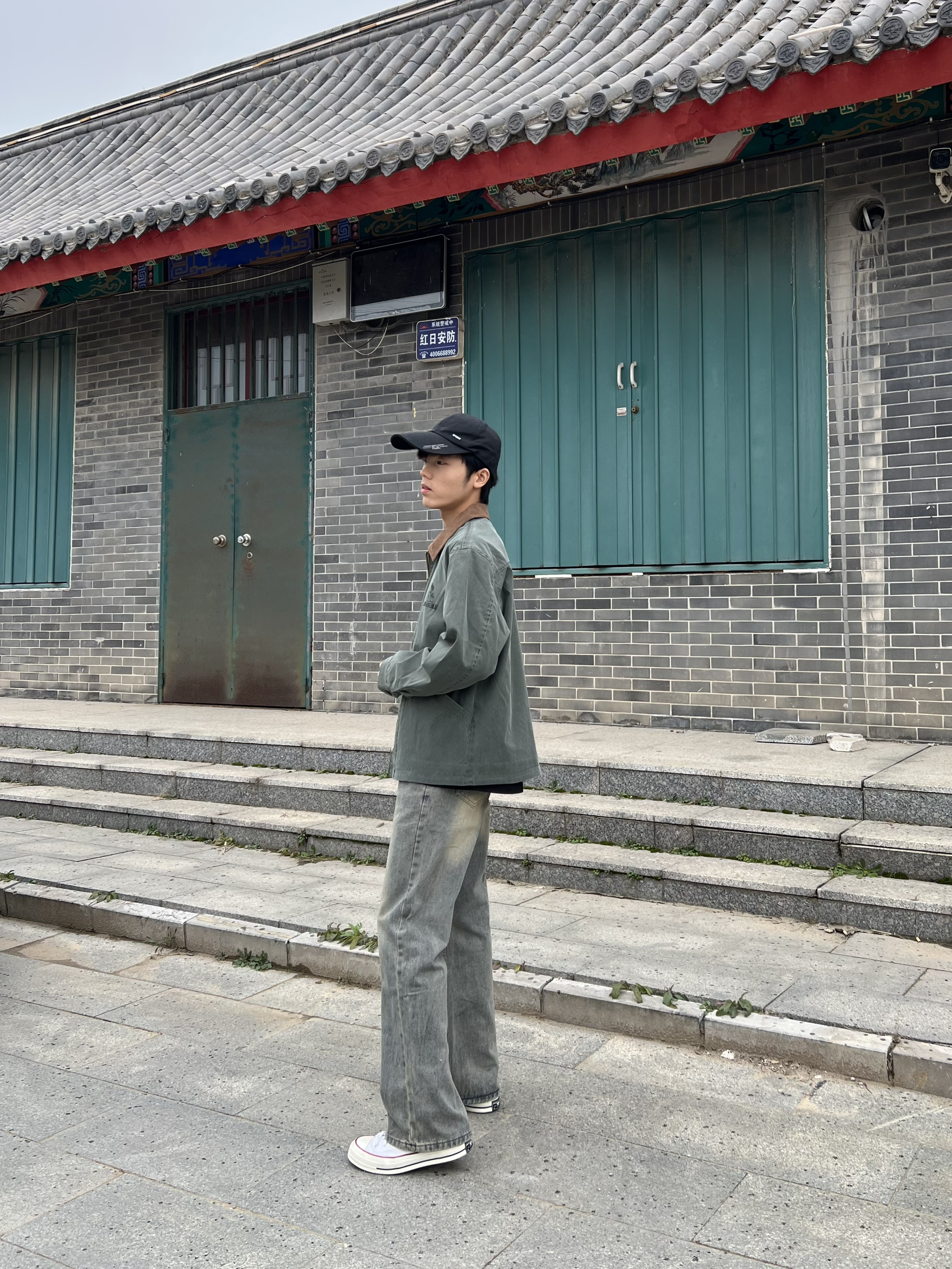 给大家分享一下今天的ootd~ 上衣找到了件很好看的军绿夹克 衣服面料偏轻薄一点 叠穿好看无压力🤩 裤子搭配的西行纪的做旧牛仔裤 复古做旧的配色搭配夹克一整个cleanfit十足! 直筒微喇的版型 日常休闲搭配好帅好喜欢😻 最后简单搭一下白色匡威 一整套简单帅气~ 👔金贝勒 👖西行纪