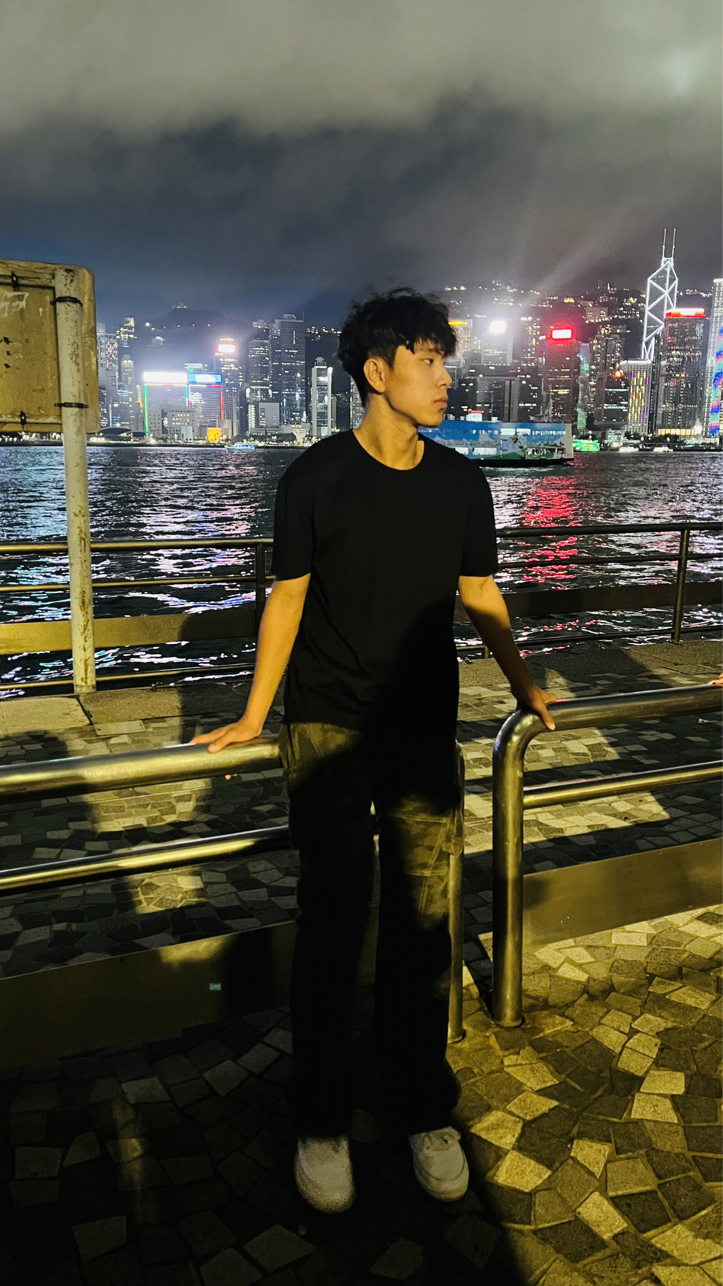 如果可以一起在维港吹吹晚风 •黑色基础款T恤属于极简风单品,没有多余的图案或设计,与香港维多利亚港璀璨繁华却又充满都市质感的背景形成“减法与加法”的平衡——背景的光影、建筑的繁复细节是视觉“加法”,你的穿搭以“减法”姿态融入,既不会抢镜,又能凭借简洁的轮廓凸显个人清爽的形象,让城市景观的焦点属性和穿搭的衬托 这种“简约不简单”的穿搭思路,既尊重了背景的景观优势,又自然地展现了个人风格,是旅游穿...