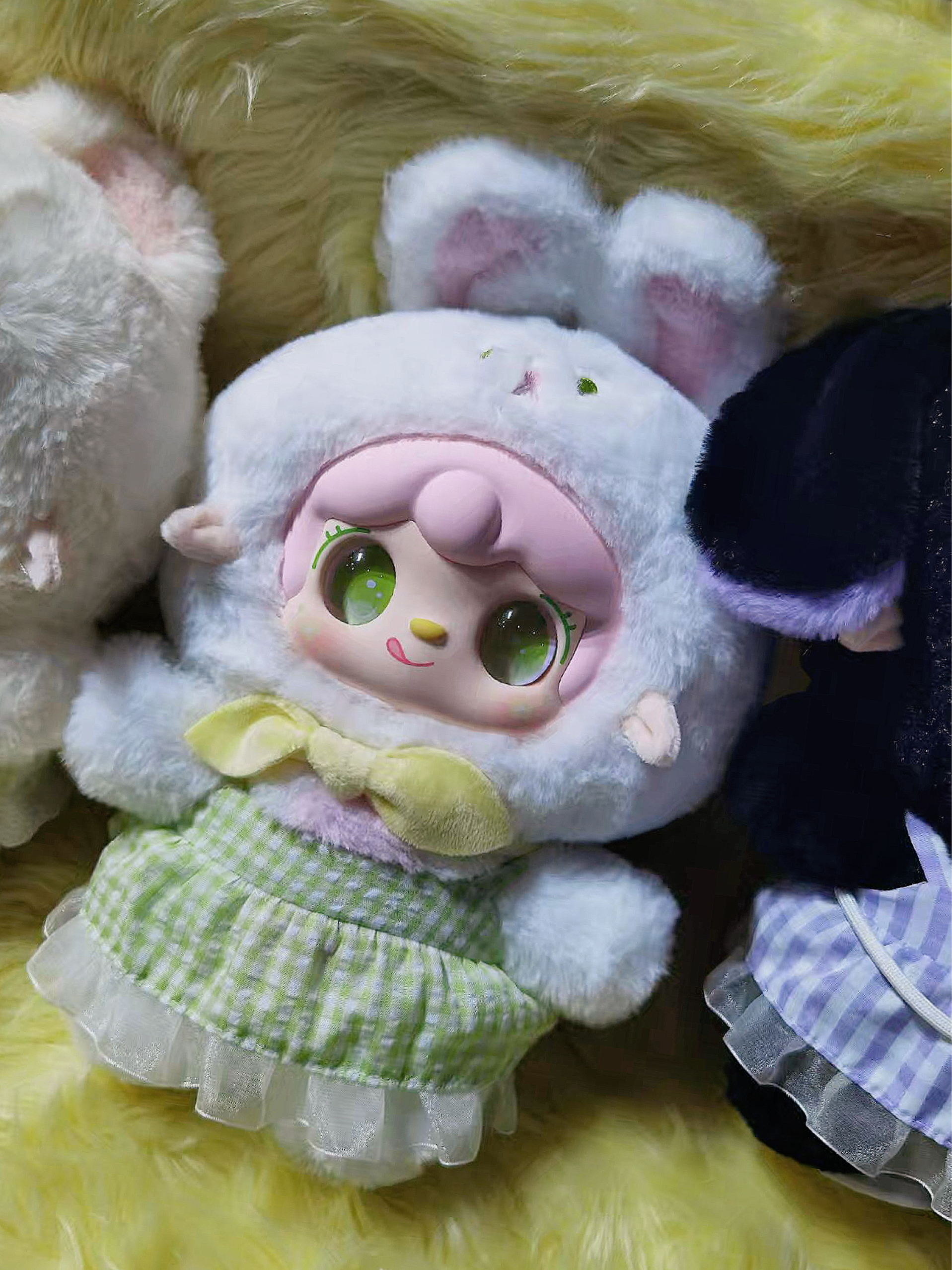 宝子们,今天必须分享下我的快乐源泉——毛绒潮玩!路过潮玩店时,一下子就被它们吸引。棕色“小怪兽”,乱蓬蓬的毛毛像刚睡醒的小熊,超萌。蓝色小狼和穿绿裙的小兔,眼睛如星星般闪亮。 我收藏毛绒潮玩可有小技巧,选毛质柔软的,触感超棒。每次摸到它们软乎乎的毛,工作烦躁全消。把它们摆桌上,就像有小伙伴陪伴,平凡日子也满是乐趣啦!