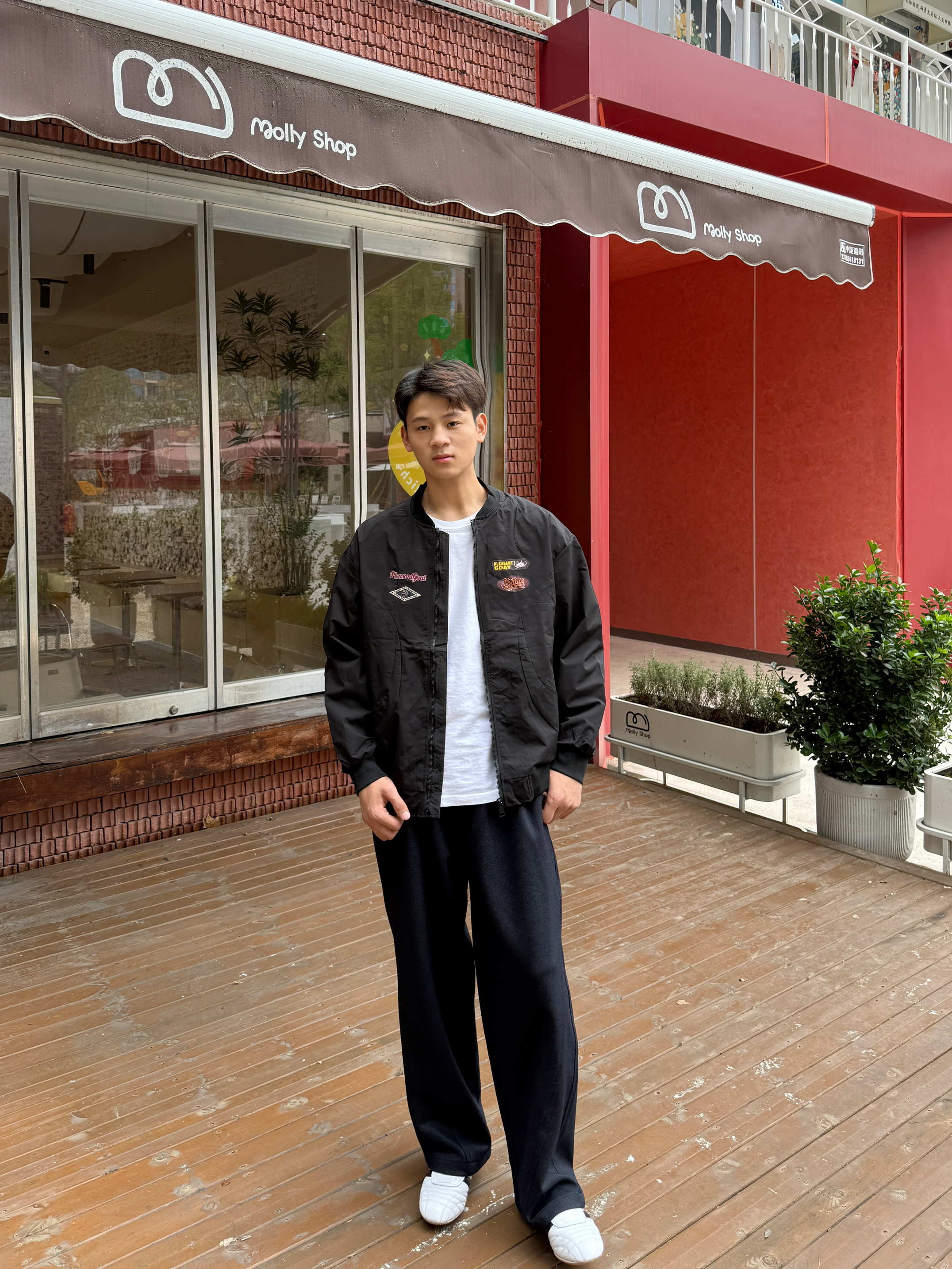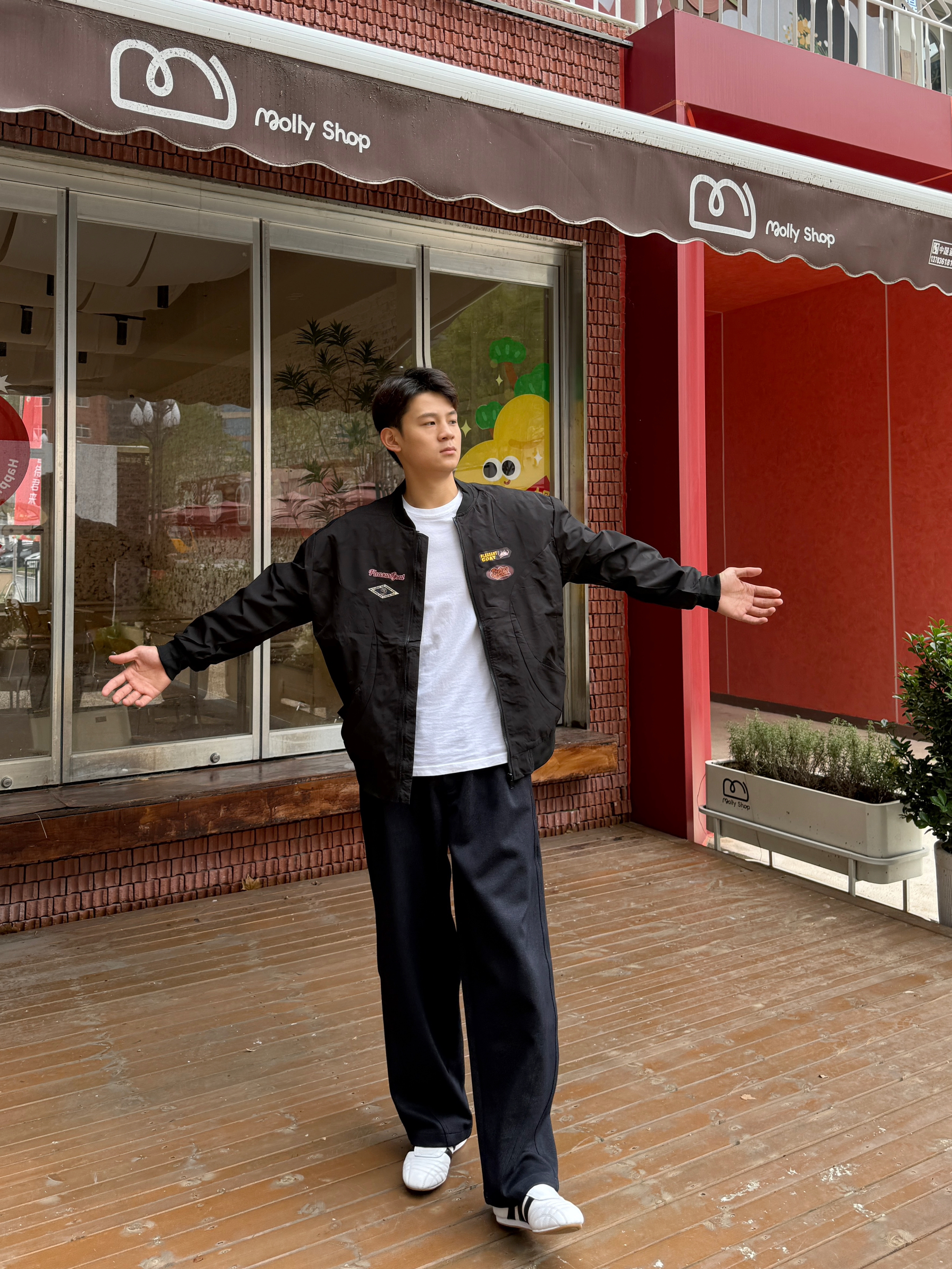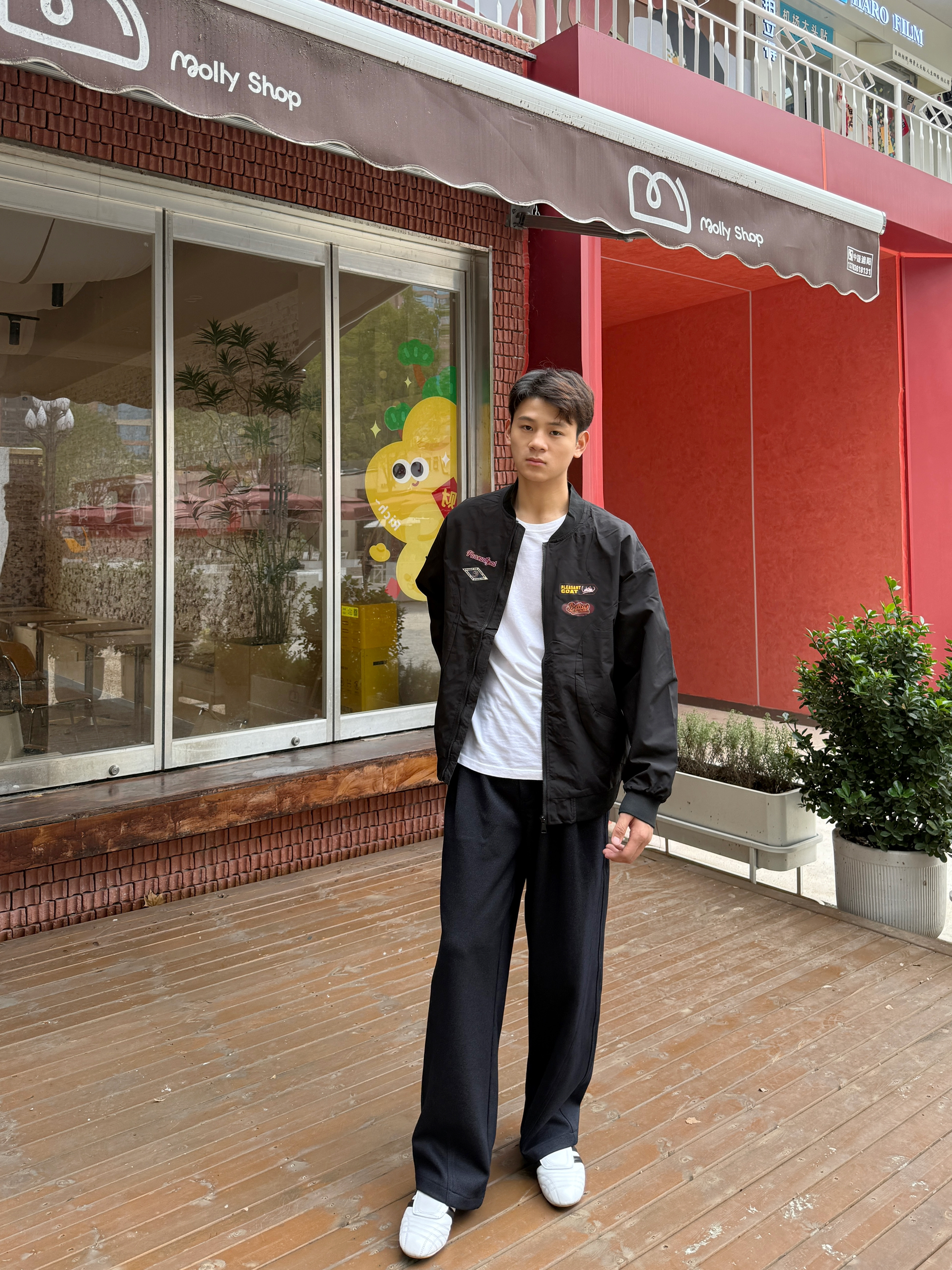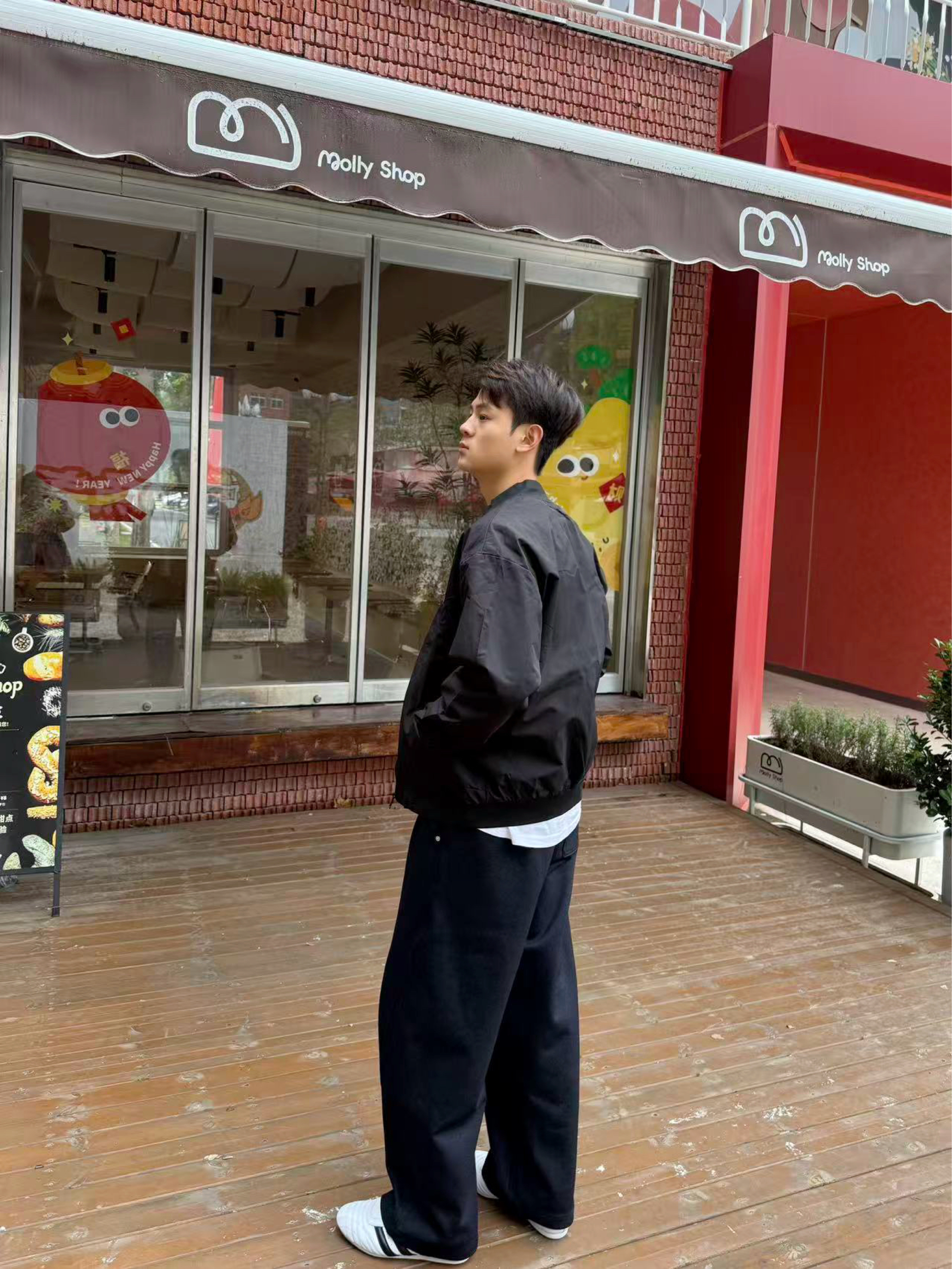 夹克外套才是秋天的主场 今天上身这款美式飞行员夹克外套 微宽松的版型穿起来没有束缚感 白色的内搭有层次感🤩 面料是那种机能衣面料,厚度刚刚好适合早秋 胸前有图案印花,简约有调性 我搭配上一条卫裤,休闲又不失街头感