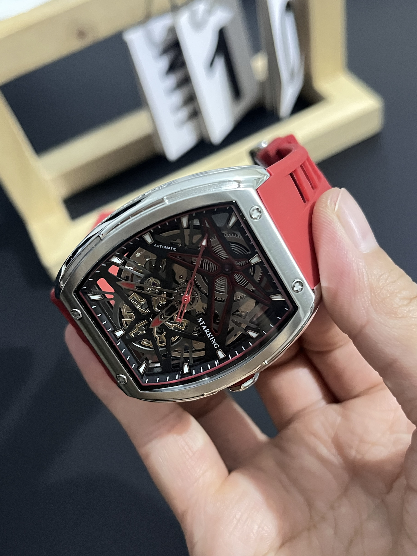 家人们谁懂啊!我入的这块表,镂空设计+黑盘红硅胶带,潮到飞起!机械机芯还能背透看运作,戴去商务场合或炸街都超拉风~就是表径大,细手腕兄弟慎冲😉!