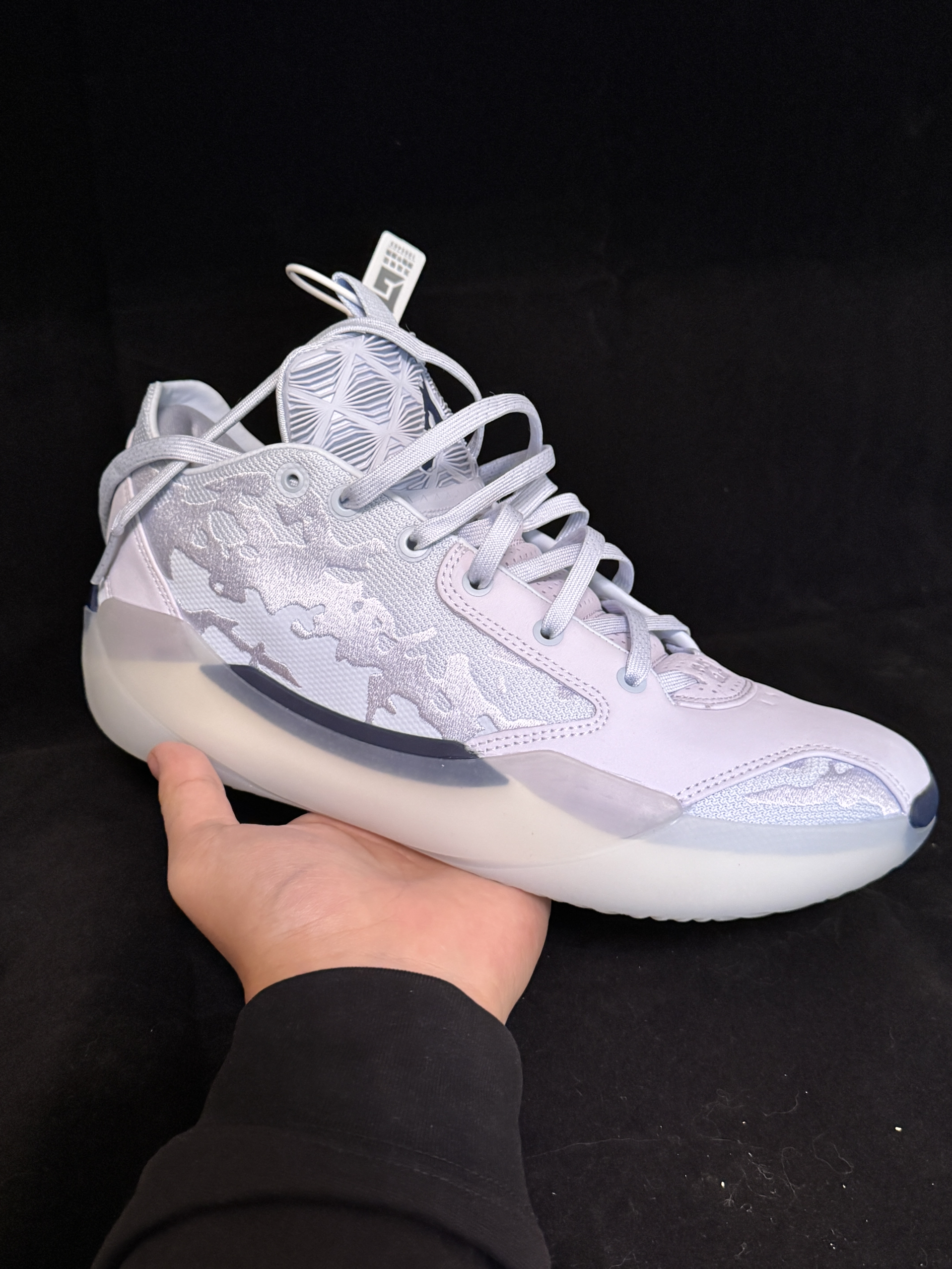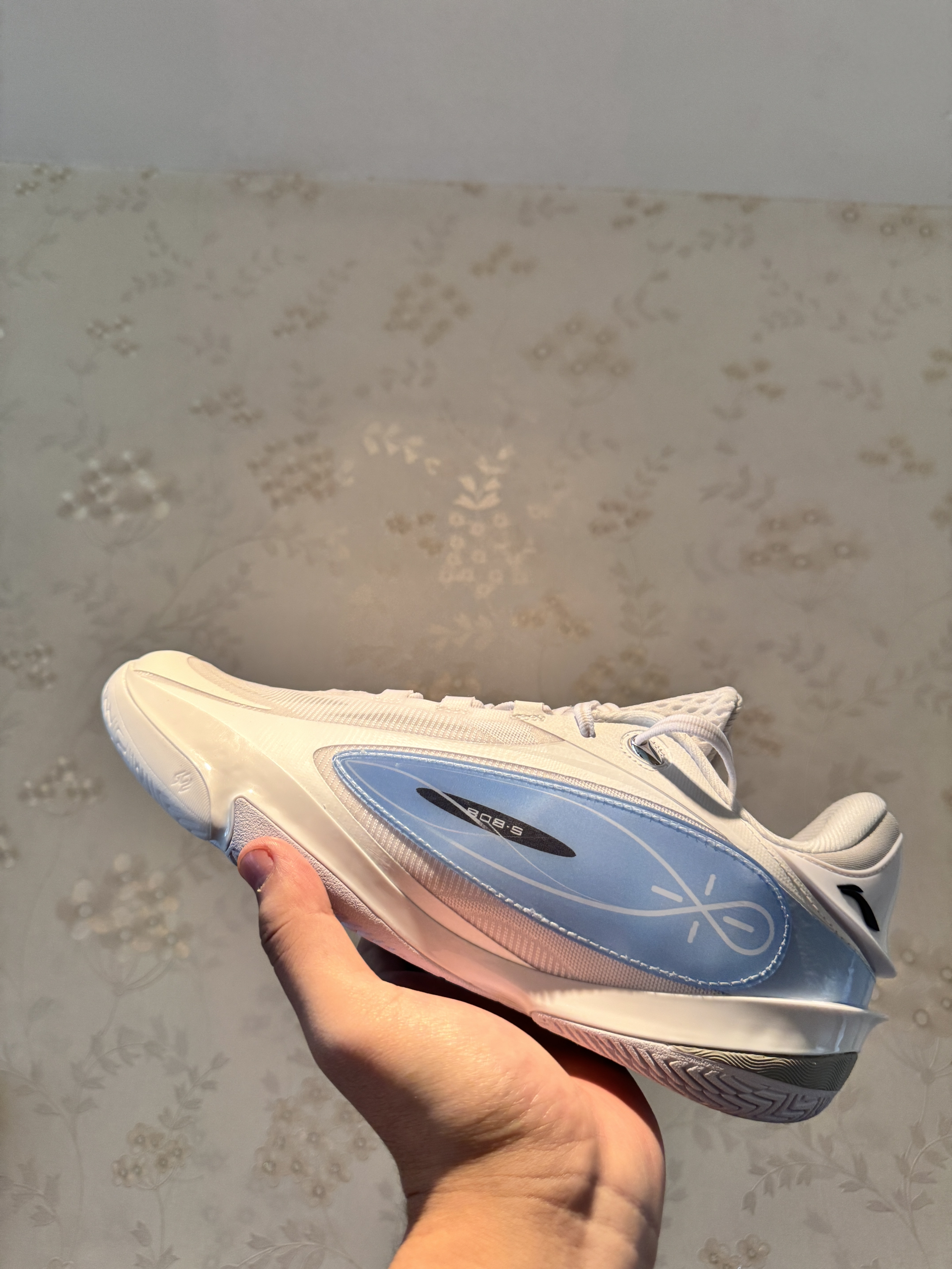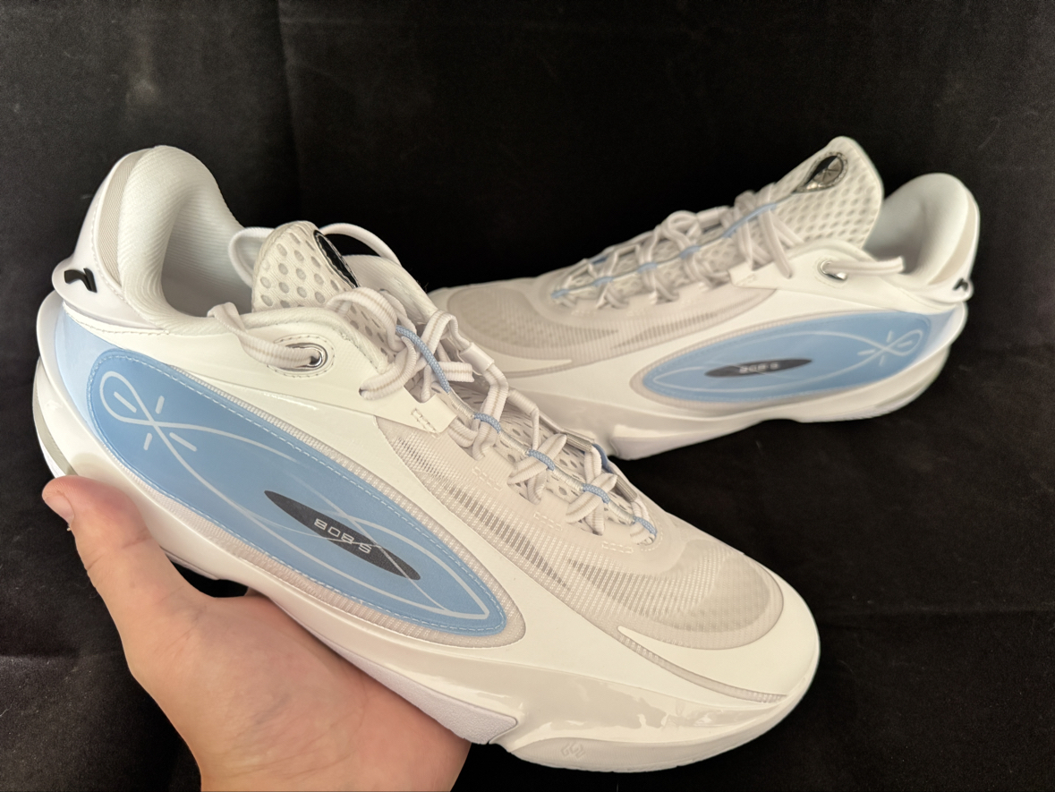 韦德808 5ULTRA:白蓝清透质感,线条灵动带“∞”标识,轻量实战风,颜值性能双在线。