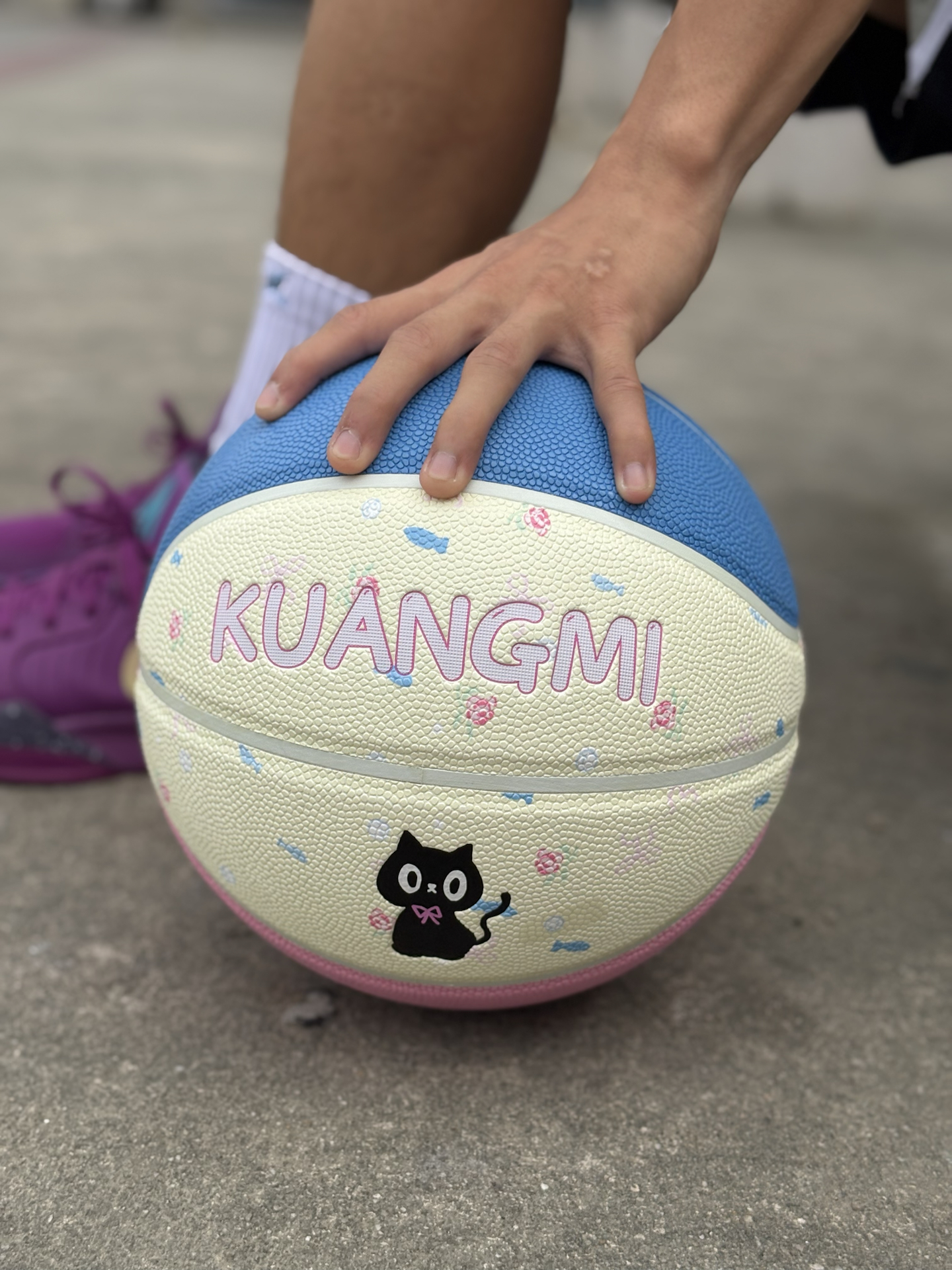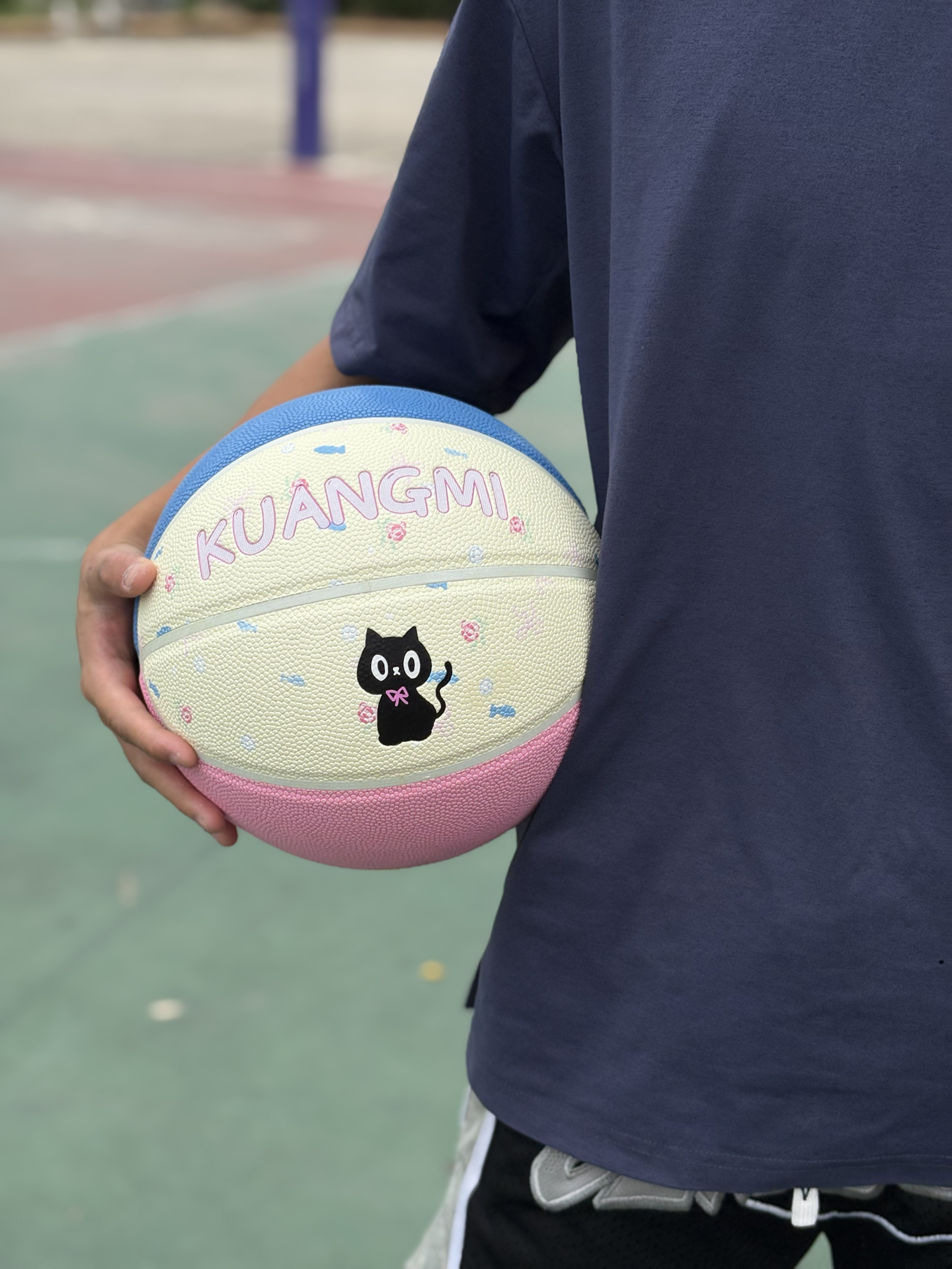 今天给大家分享这款 #kuangmi 小黑猫篮球🏀,这款篮球一拿到手的颜值真的非常高,粉蓝白的颜色设计,加上小黑猫的logo,颜值真的太让我惊喜了! 这款篮球是PU材质的,打起来的手感我觉得还是蛮不错的,室外场地也可以适应,而且弹性不会因为球上的花纹而导致不足,整体的性价比也是非常高的! #狂迷小黑猫篮球 #高颜值篮球 #又发现宝藏篮球 #特别强推的一款篮球 #学生党平价实战篮球