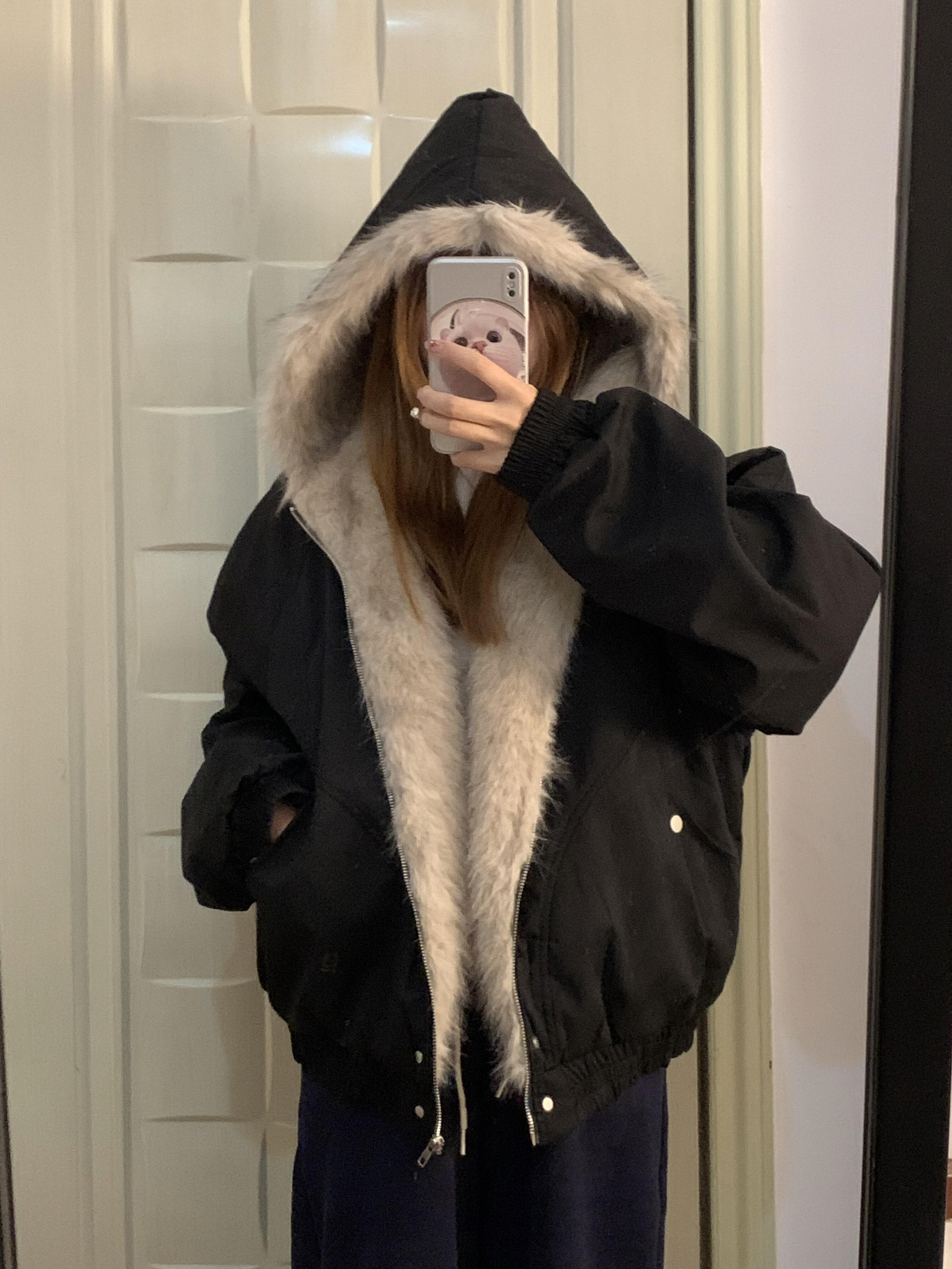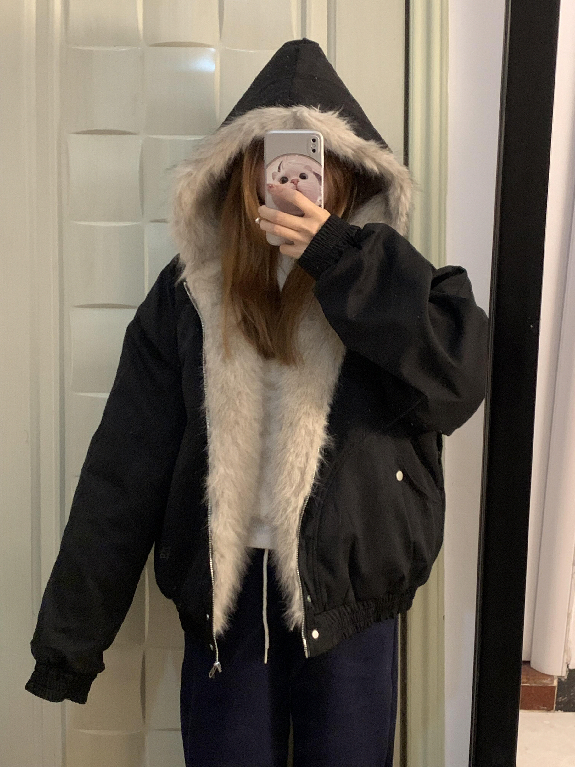 谁还没被SMILEISLAND这件s037m棉服戳中!美式复古版型超显利落,短款设计巨显腿长~ 重点是座山雕毛领!蓬松又显贵,风大时拉起来还超暖,随便搭牛仔裤就有韩系女主那味儿,冬日通勤/约会穿都超可!