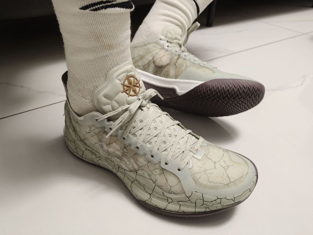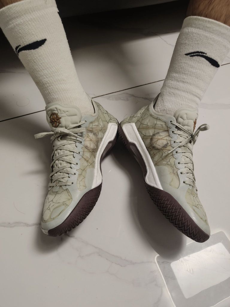 关于这双鞋的感受可以翻看我前面纯白配色的感受,纯白色是水晶底,在拼接地特别滑,挑场地,所以我选择入手了这双橡胶底,颜色上脚巨好看,不突兀,端详起来细节满满,内层织物是瓷器窑变后的效果,外层有一层透明的塑料薄片,很好地保护了里面的花纹,对于这双鞋不论是实战性能还是配色我都可以给满分💯