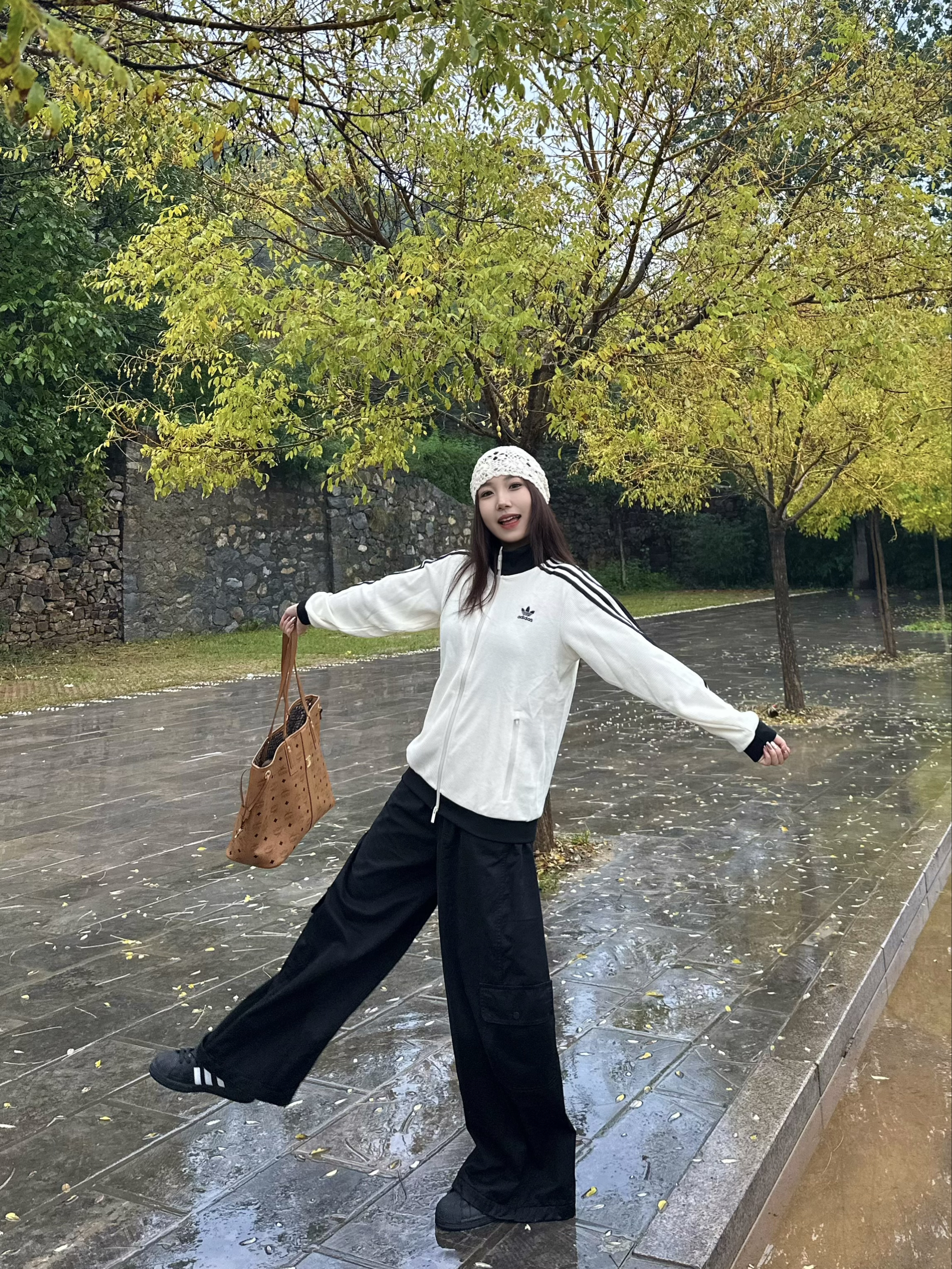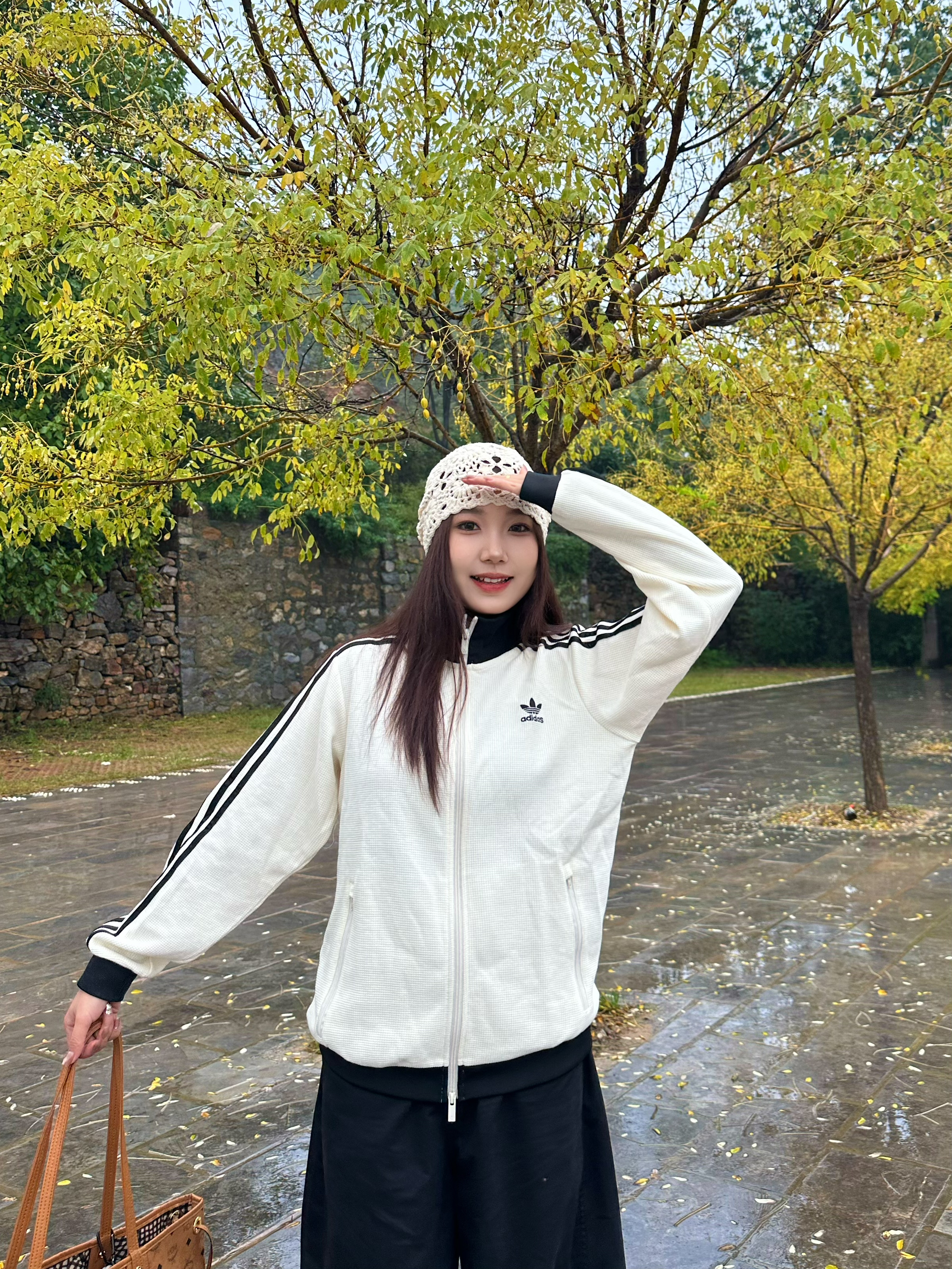 被这件阿迪三杠外套拿捏了! 米白+经典黑条纹自带复古滤镜,软乎乎的面料裹在身上像被云朵裹住,宽松版型对各种身材都超友好,随手一穿就是慵懒随性的秋日氛围~配阔腿裤是街头松弛感,搭裙子又能甜酷切换,早秋叠穿、深秋内搭都能打,妥妥的“衣柜万金油”款!