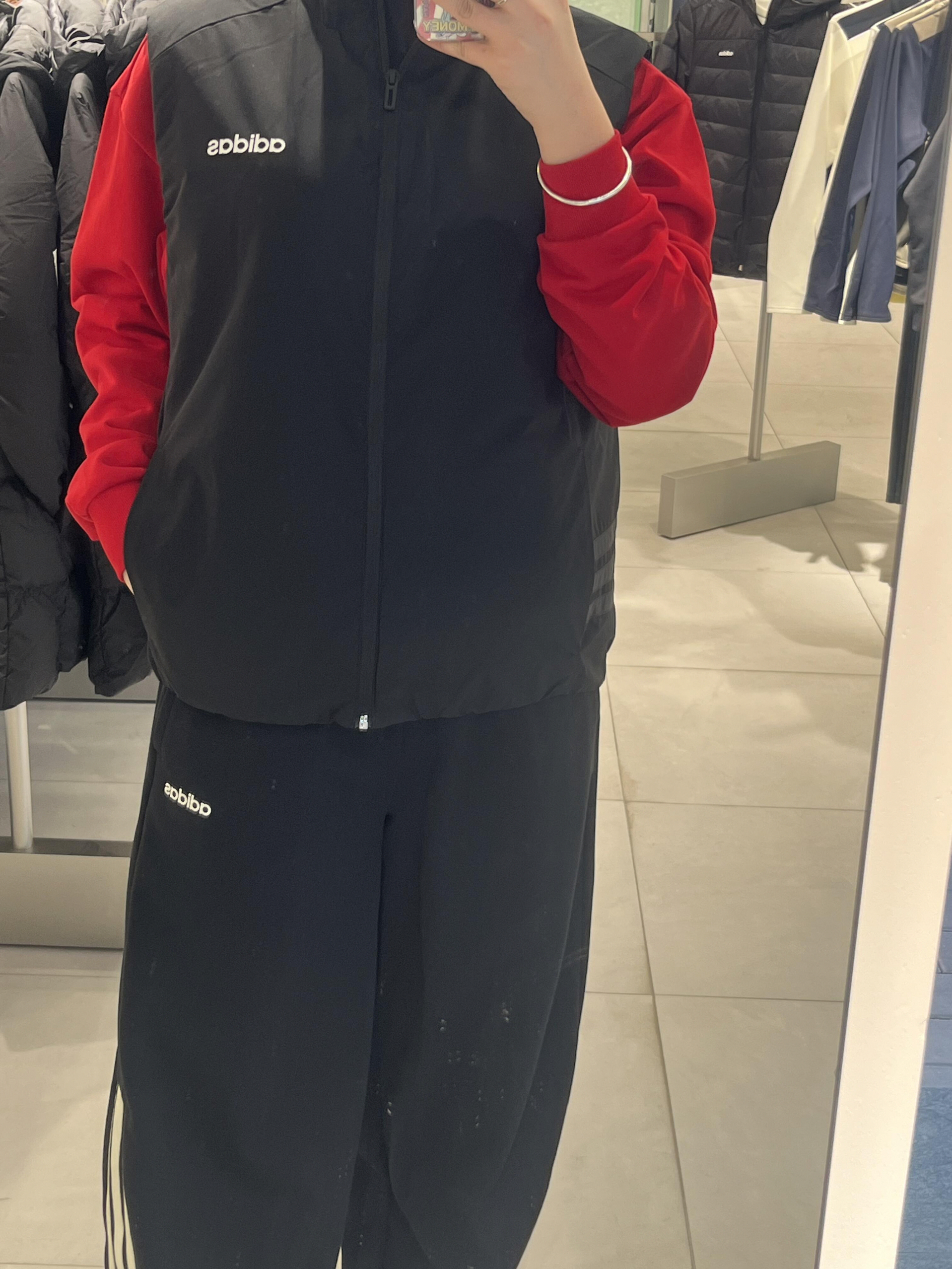 宝子们,adidas这件黑色羽绒马甲太香啦~简约的设计,经典黑超百搭,胸前的白色logo很亮眼,瞬间提升时尚感。 保暖又轻便,填充很饱满,穿上像被温暖的云朵包裹,冷风根本钻不进来。无袖设计超适合叠穿,里面搭卫衣、毛衣,外面再套大衣或外套,层次感一下就出来了。日常上学、上班,或者周末出去逛,套上它就又暖又有型,秋冬穿搭有它真的省心不少,闭眼入不亏~