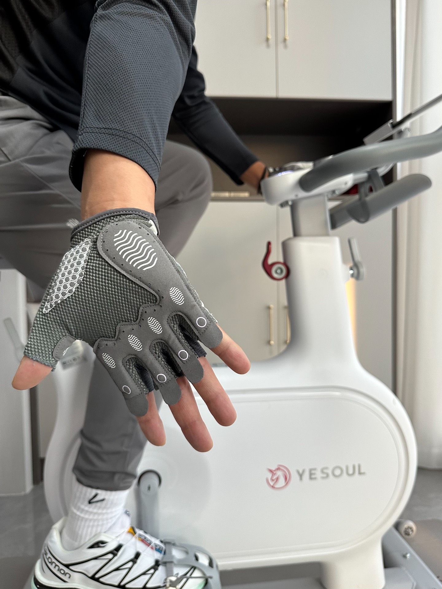 KELME这双运动手套太适合秋冬户外了!黑色主调搭配荧光绿线条,酷帅又吸睛,手掌的纹路设计,抓握东西稳稳的,像手机、水杯都能牢牢拿住。 保暖性也在线,面料柔软又挡风,早上骑车上班,手再也不会冻得僵硬。关键是触屏设计超贴心,不用脱手套就能划手机,回消息、查导航都贼方便。不管是跑步、骑行还是日常出门,戴上它,温暖和便利直接拉满,秋冬户外有它真的省心不少~