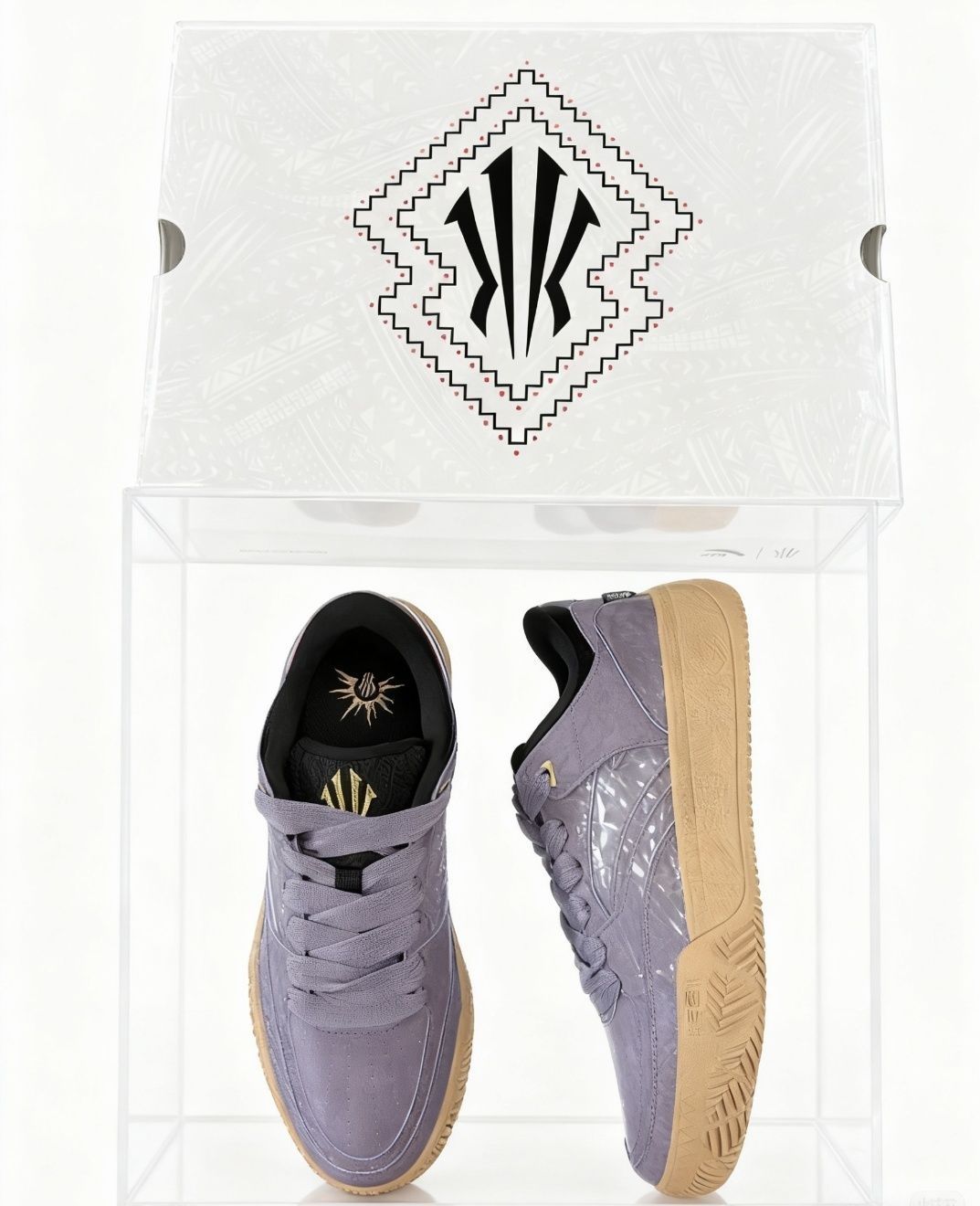 安踏欧文系列推出的Hélà CODE板鞋,以“暮紫灰”为主色调,鞋身融合雾面皮革与网布拼接,鞋侧欧文标志性的“KYRIE”刺绣logo低调又醒目,搭配白色中底与灰色外底,整体风格简约却满是街头质感,刚上架就成了潮男日常穿搭的热门选择。它不像专业篮球鞋那样强调极致性能,而是在“舒适通勤”与“潮流属性”间找得很准,细节里藏着实打实的日常穿着体验。