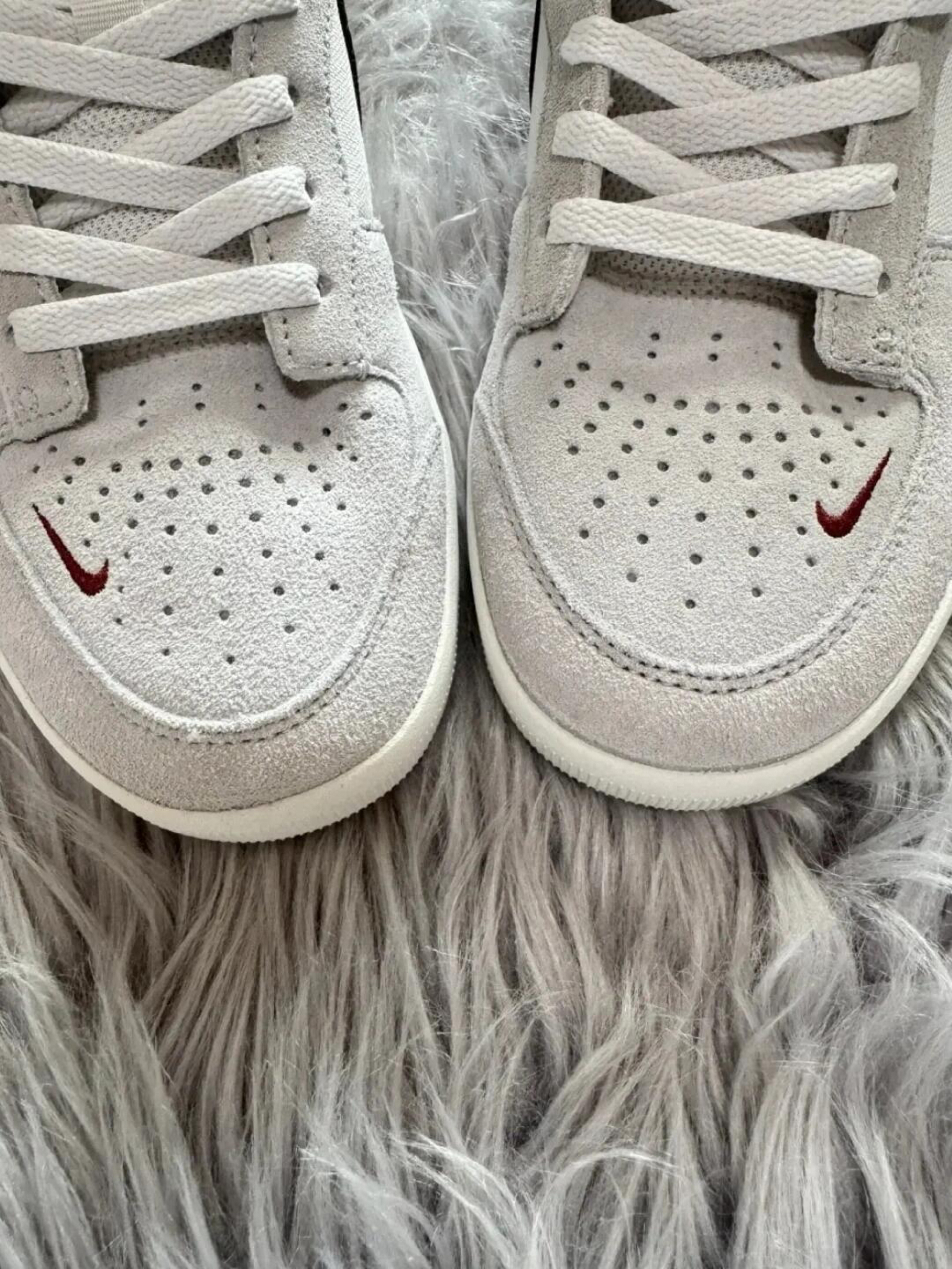 鞋面以大面积灰色翻毛皮为主调,细腻触感彰显高级质感,搭配棕色荔枝纹皮革Swoosh,复古韵味直接拉满。 厚实填充的鞋舌与内衬紧密贴合双脚,包裹感十足,日常行走稳稳托住每一步。 2-3公分中底悄悄修饰腿型,搭配几何纹路橡胶大底,耐磨度与抓地力双在线,滑板刷街或通勤代步都适配。