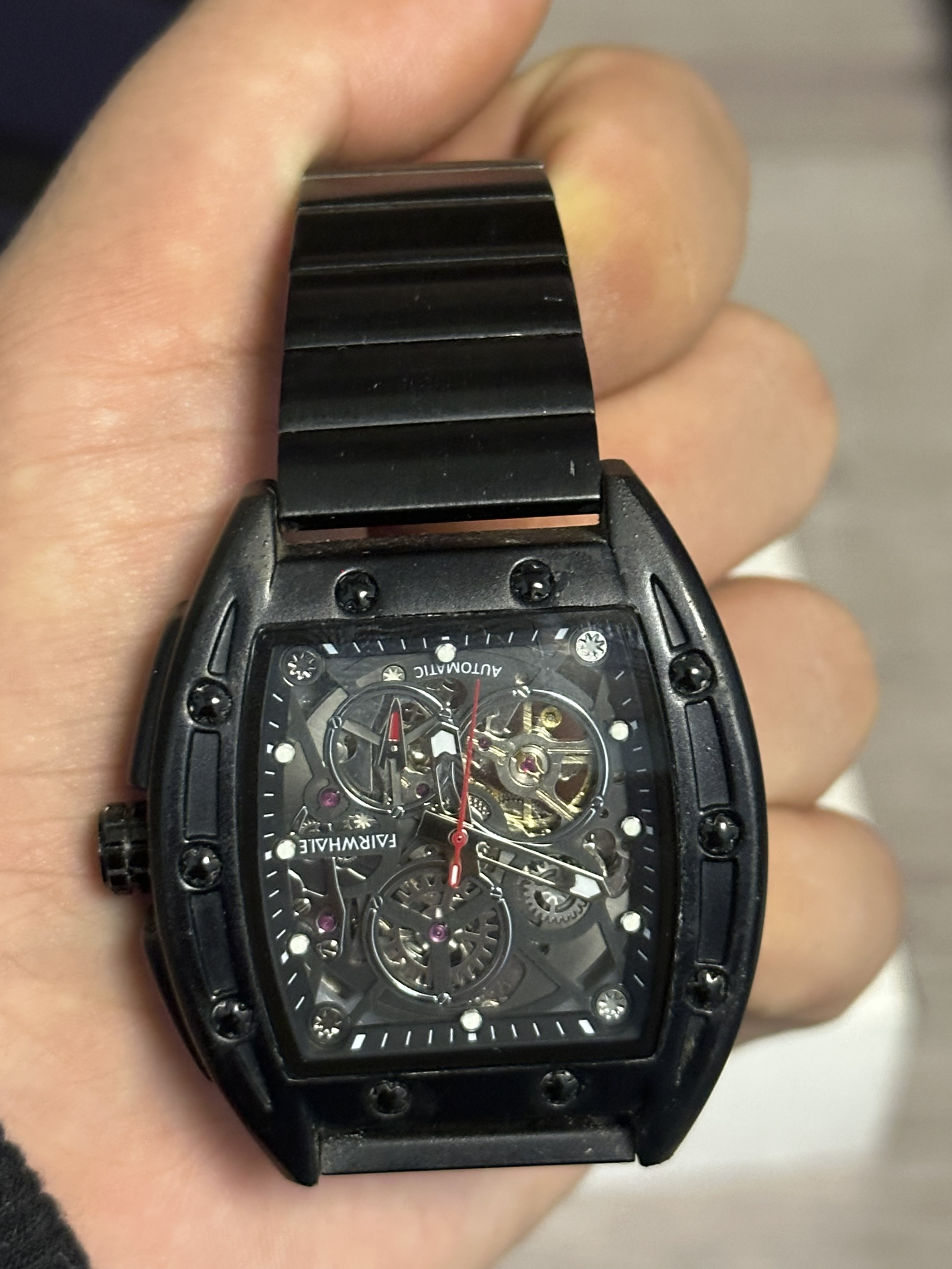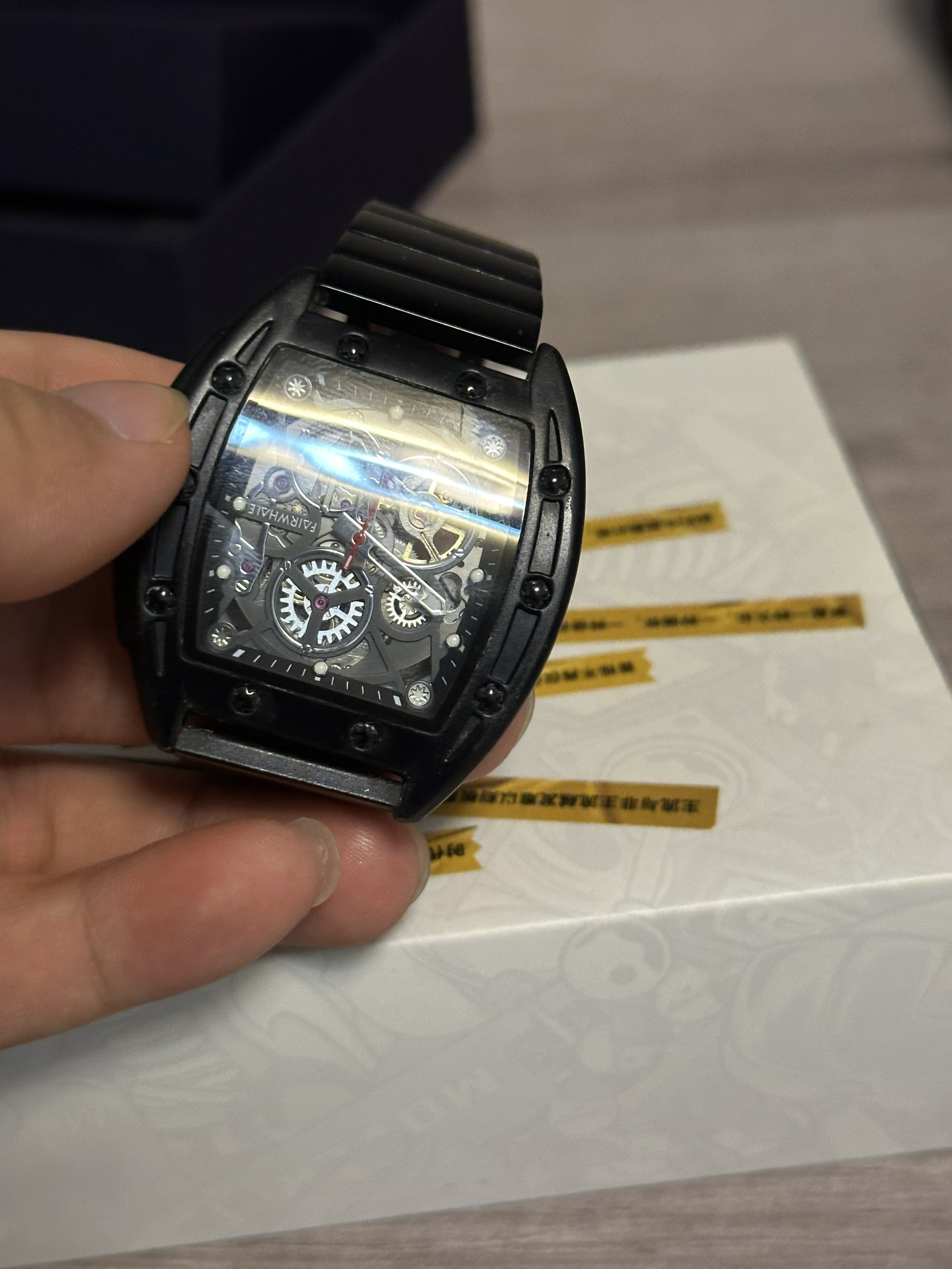 本篇笔记关联了【二百&嘉之派同款】Mark Fairwhale/马克华菲 酒桶型高端潮酷酒桶形双面镂空夜光飞轮氚气硅胶防水自动机械男士手表 黑壳黑面黑钢带 等商品,为用户提供真实的使用体验和购买参考。