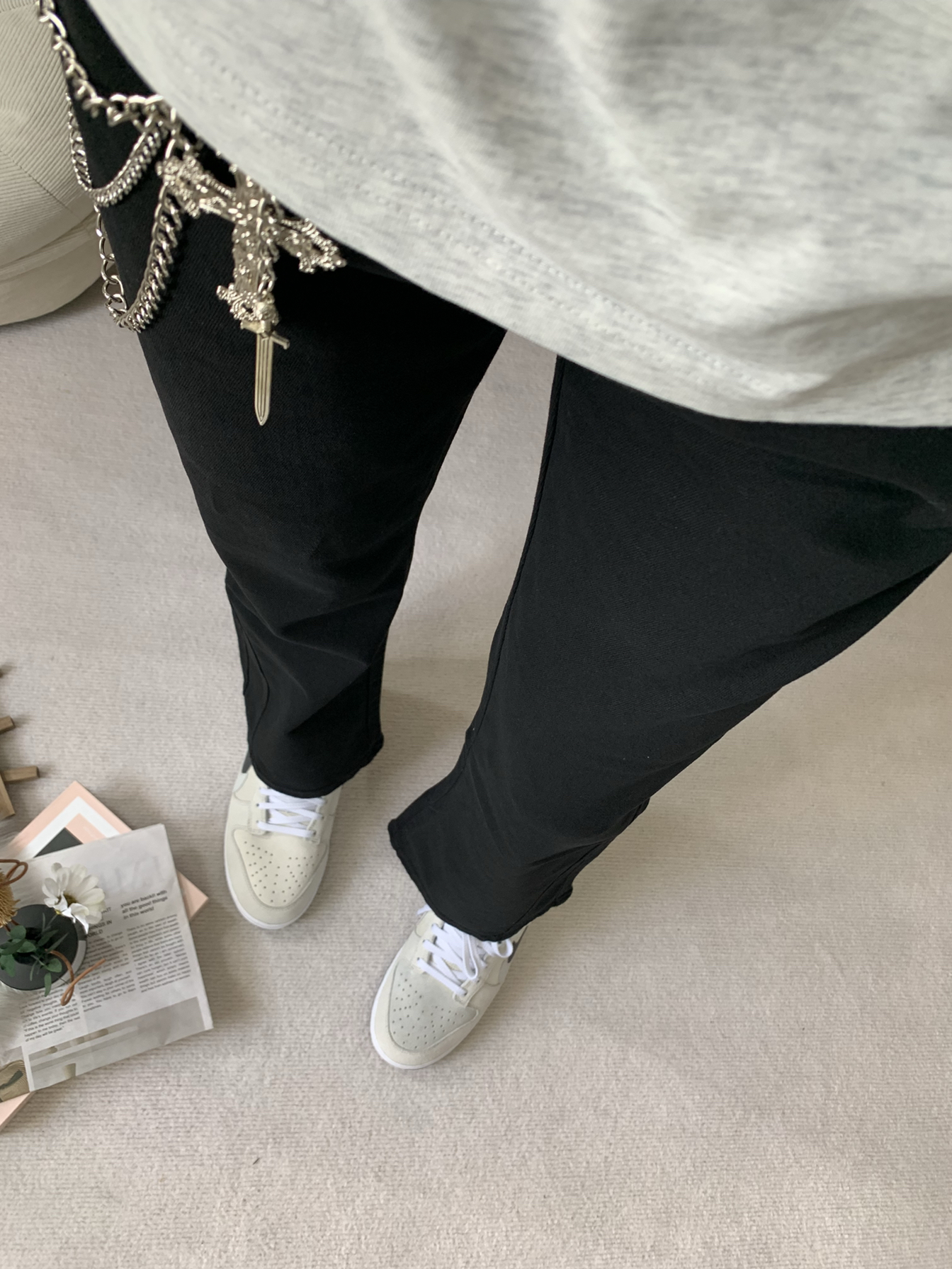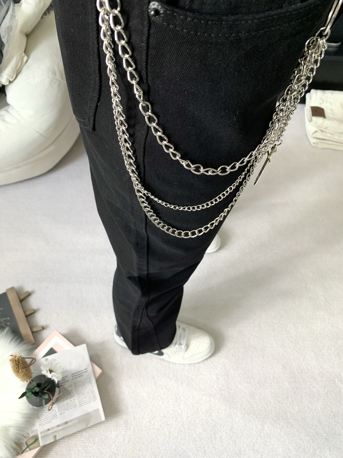 不知道穿什么的话,黑色牛仔裤就是我唯一的选择,不用思考也不用纠结,百搭只有黑色哈哈,黑色显瘦那都是公认的了,穿上它我依旧靓仔!!
